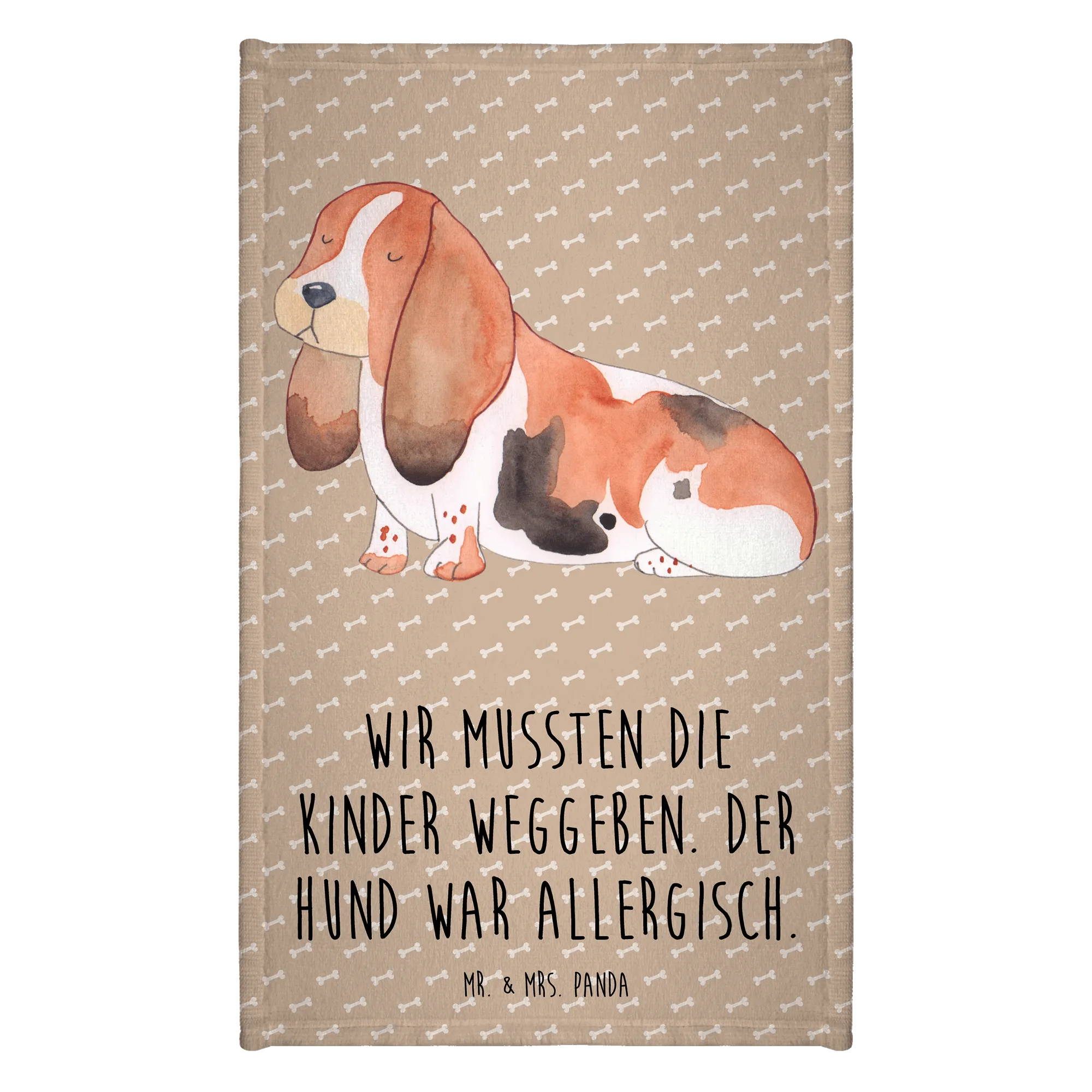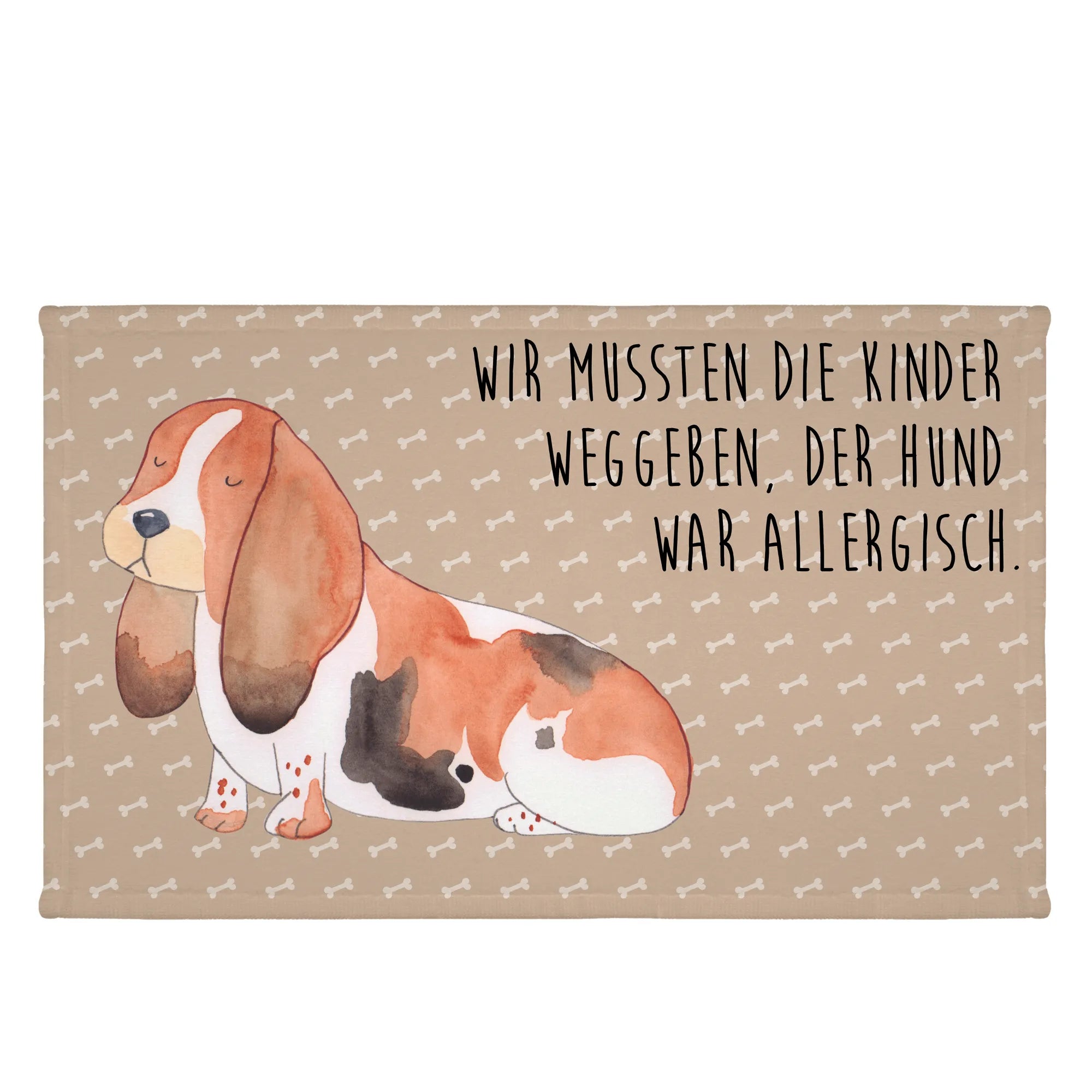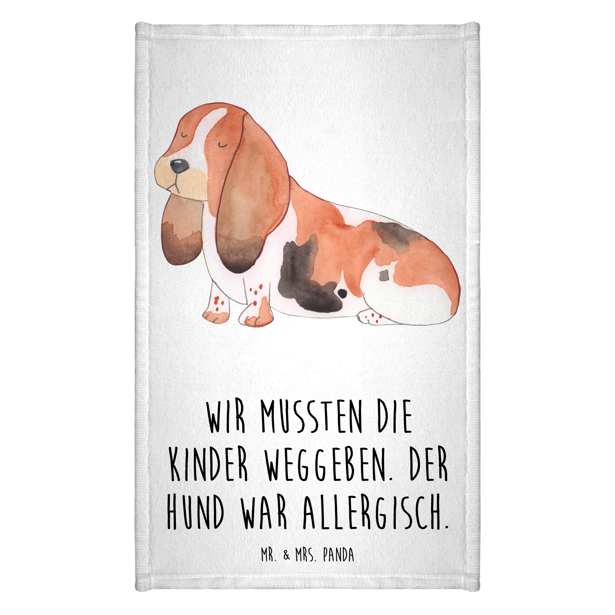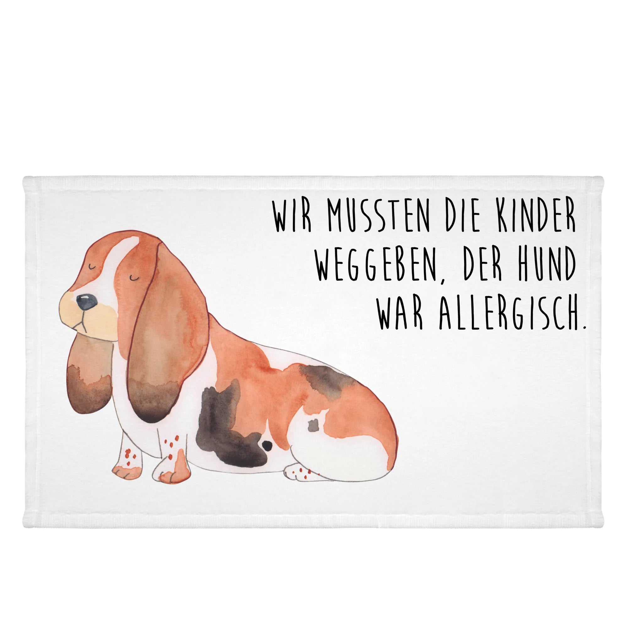 Das Gästetuch mit dem süßen Basset Hound-Motiv aus der Hunde Kollektion von Mr. & Mrs. Panda ist das perfekte Geschenk für alle Hundeliebhaber! Mit einem liebevollen Slogan, "Wir mussten die Kinder weggeben. Der Hund war allergisch.", bringt dieses Handtuch nicht nur ein Lächeln ins Gesicht, sondern auch ein Stück Hundeherz in jedes Badezimmer.
