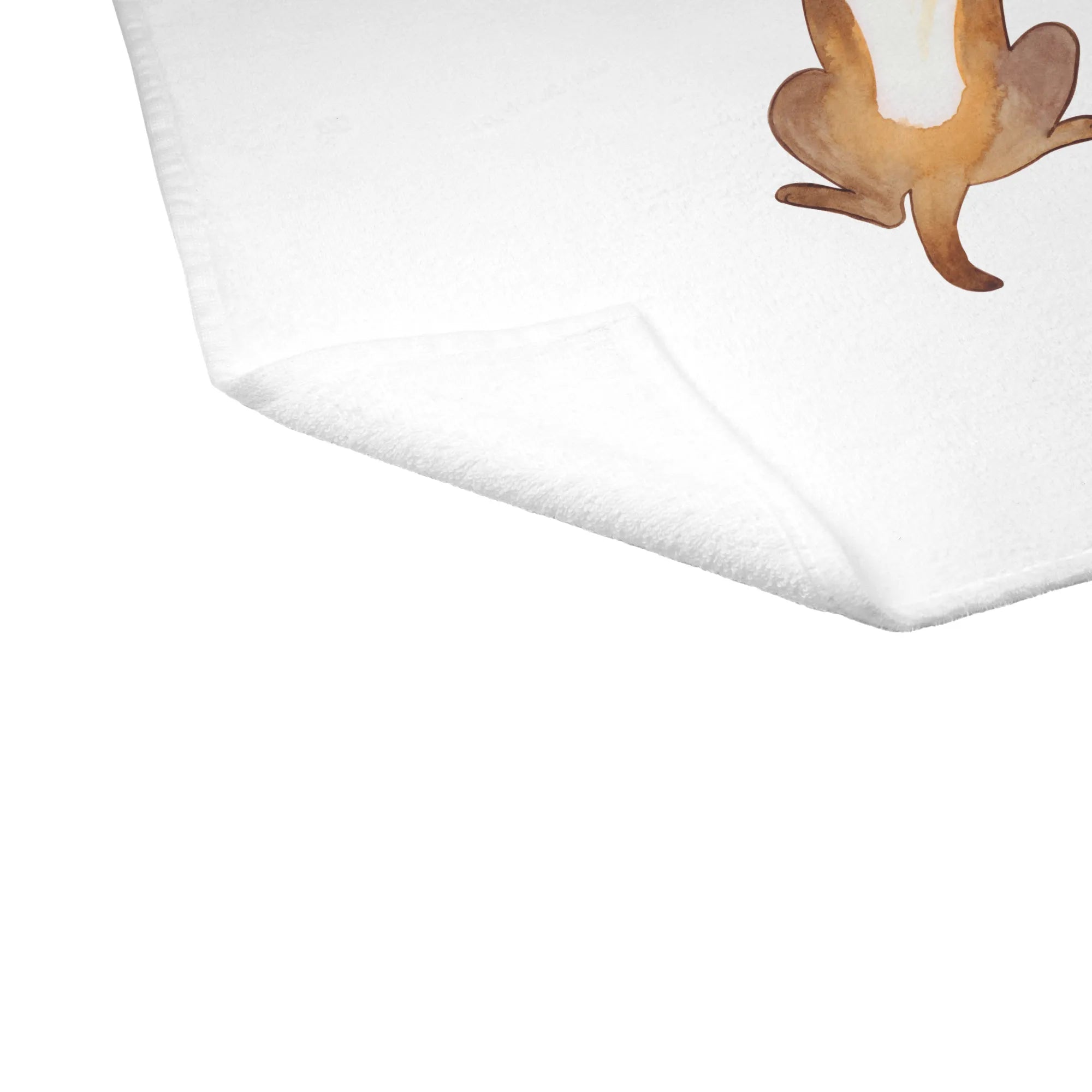 Dieses Frotteehandtuch ist ein wahres Kuschelwunder. Die Vorderseite ist mit einem liebevollen Aquarell-Motiv von Mrs. Panda bedruckt, das einen Hund zeigt, der genüsslich auf dem Rücken liegt und auf seine Streicheleinheiten wartet. Es ist das perfekte Gesichtshandtuch oder ein stilvolles Gästehandtuch, das dein Bad sofort freundlicher und einladender macht. ✨