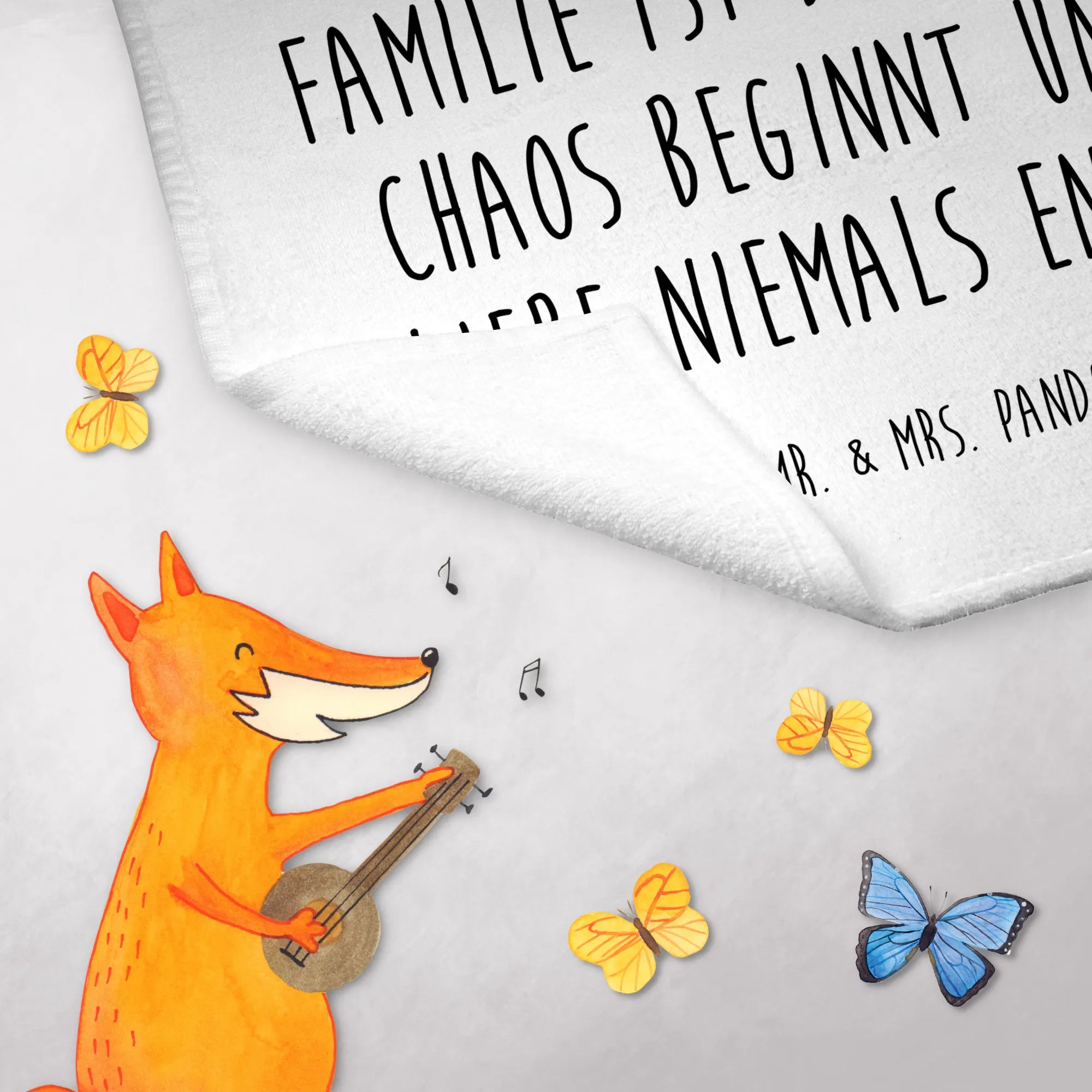 Es ist ein tolles Geschenk zu Anlässen wie Vatertag oder Muttertag, für Geschwister, Omas, Opas und alle, die dir am Herzen liegen. "Familie ist dort, wo das Chaos beginnt und die Liebe niemals endet..." – dieser Spruch macht das Handtuch zu einem ganz besonderen Hingucker und einer liebevollen Botschaft für die Lieben.