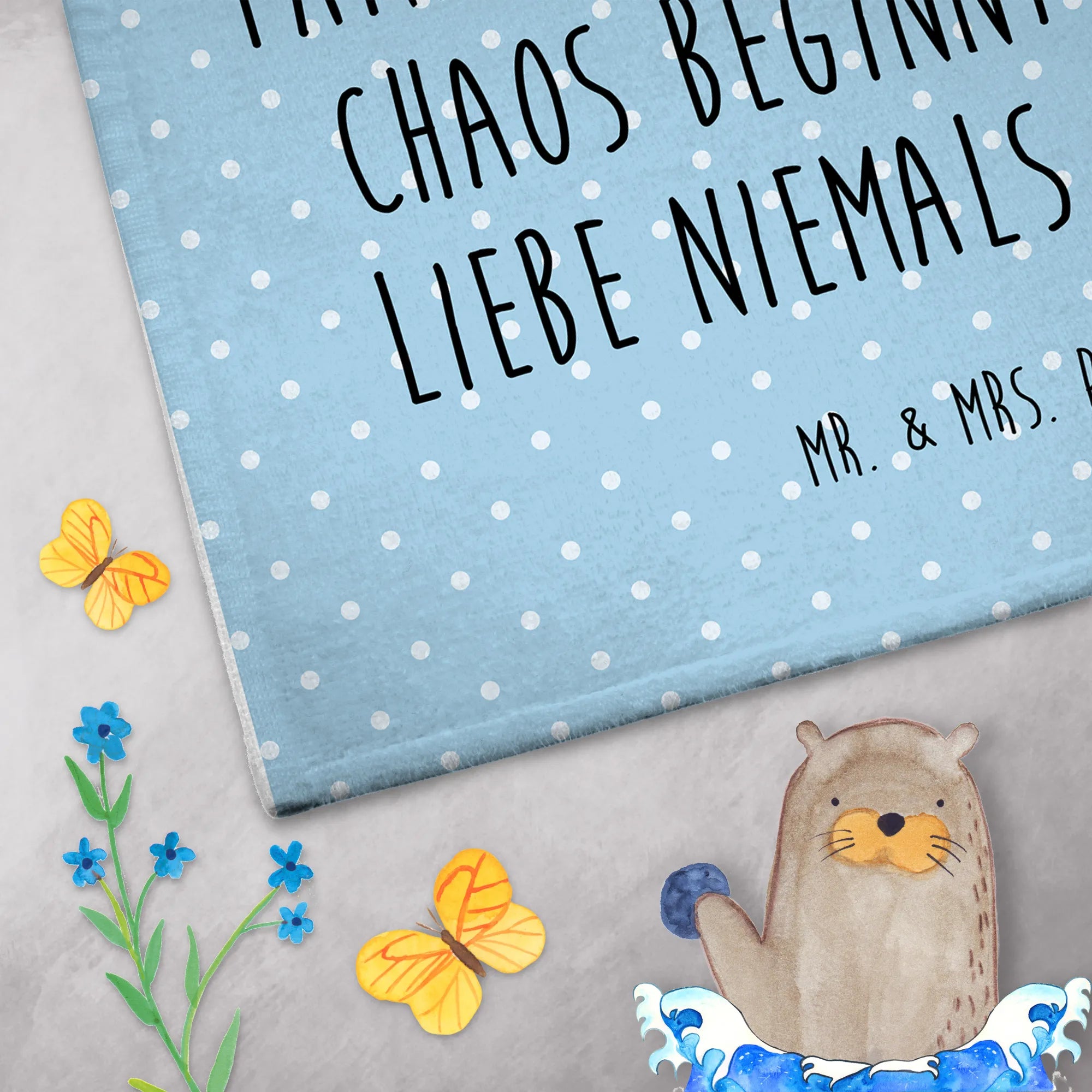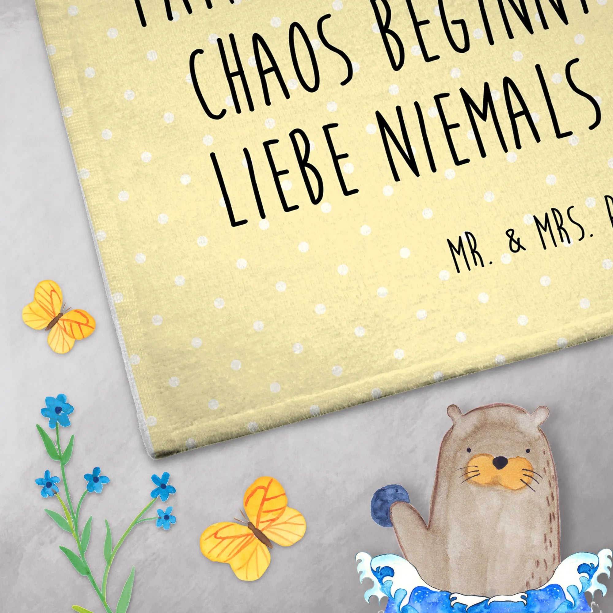 Zeige mit diesem tollen Produkt, dass die Liebe niemals endet, selbst wenn das Chaos beginnt. Ein Handtuch, das für viele Momente im Leben steht und dazu einlädt, gemeinsam schöne Stunden zu verbringen. Lass dich von der wunderbaren Botschaft inspirieren und bringe Freude in die Alltagssituationen deiner Liebsten. Bei Mr. & Mrs. Panda findest du nicht nur Produkte, sondern kleine Glücksmomente für die Familie, die alle verbindet und an die schönen Augenblicke erinnert. 🦔❤️