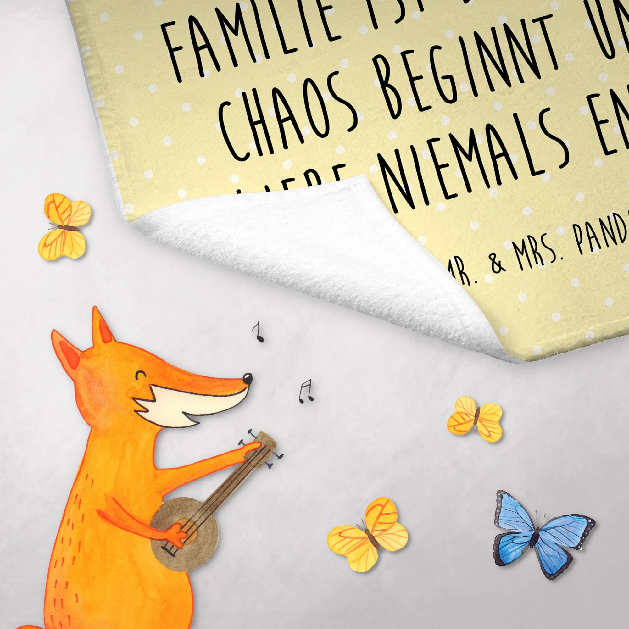 Der verspielte Slogan "Familie ist dort, wo das Chaos beginnt und die Liebe niemals endet..." verleiht diesem Handtuch eine besondere Note und spiegelt die vielen liebevollen Momente wider, die Familiensituationen begleiten.
