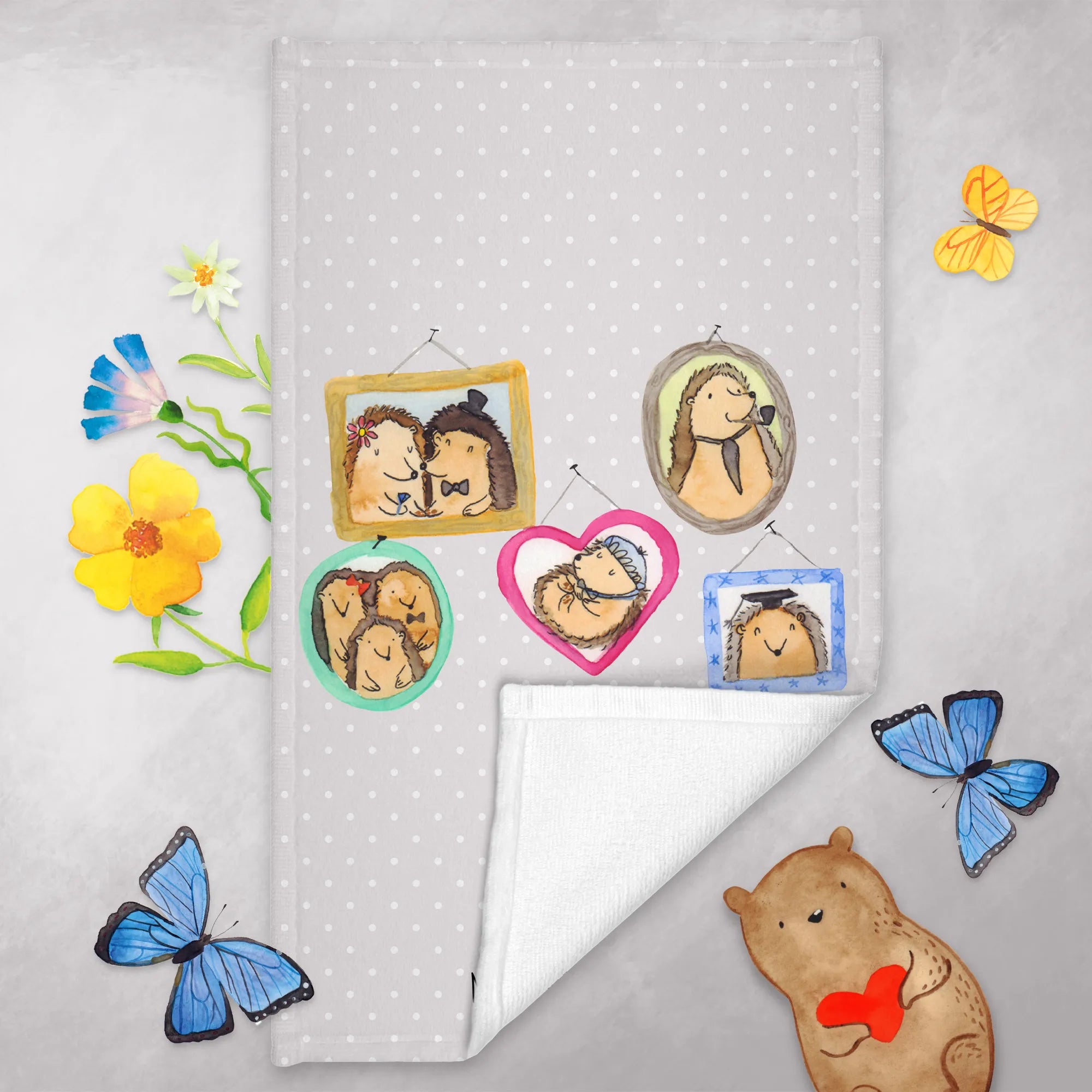 Gästehandtuch Igel Familie - Gäste Handtuch - mit Spruch - Grau Pastell