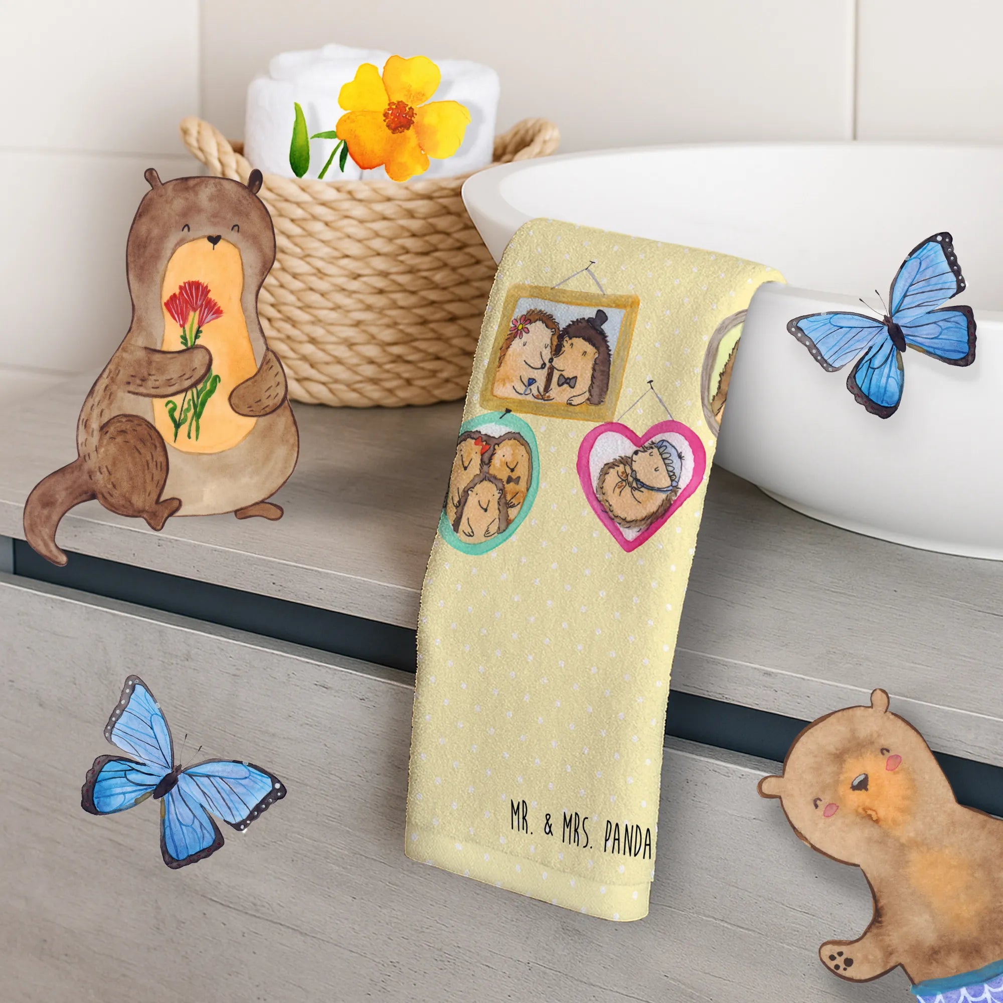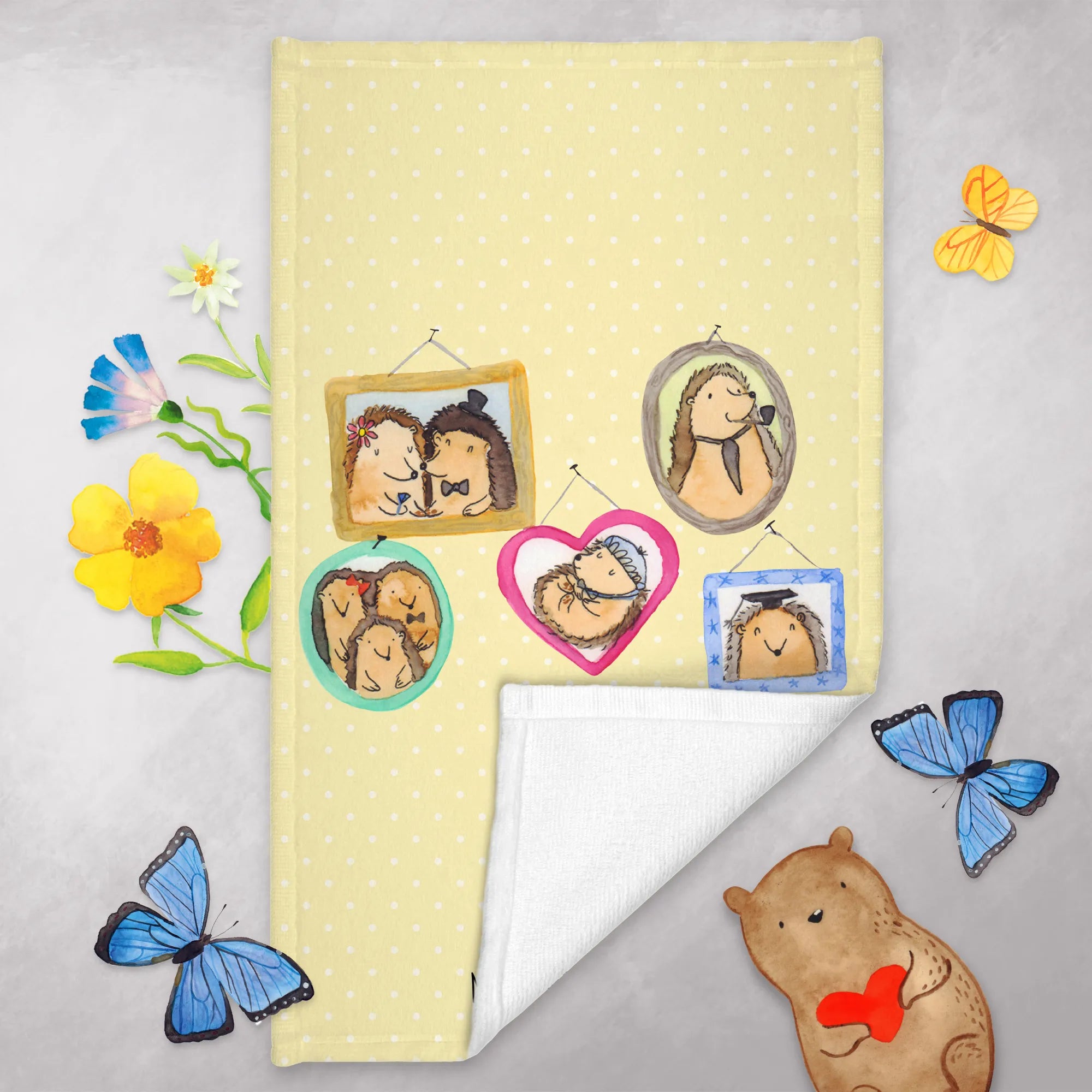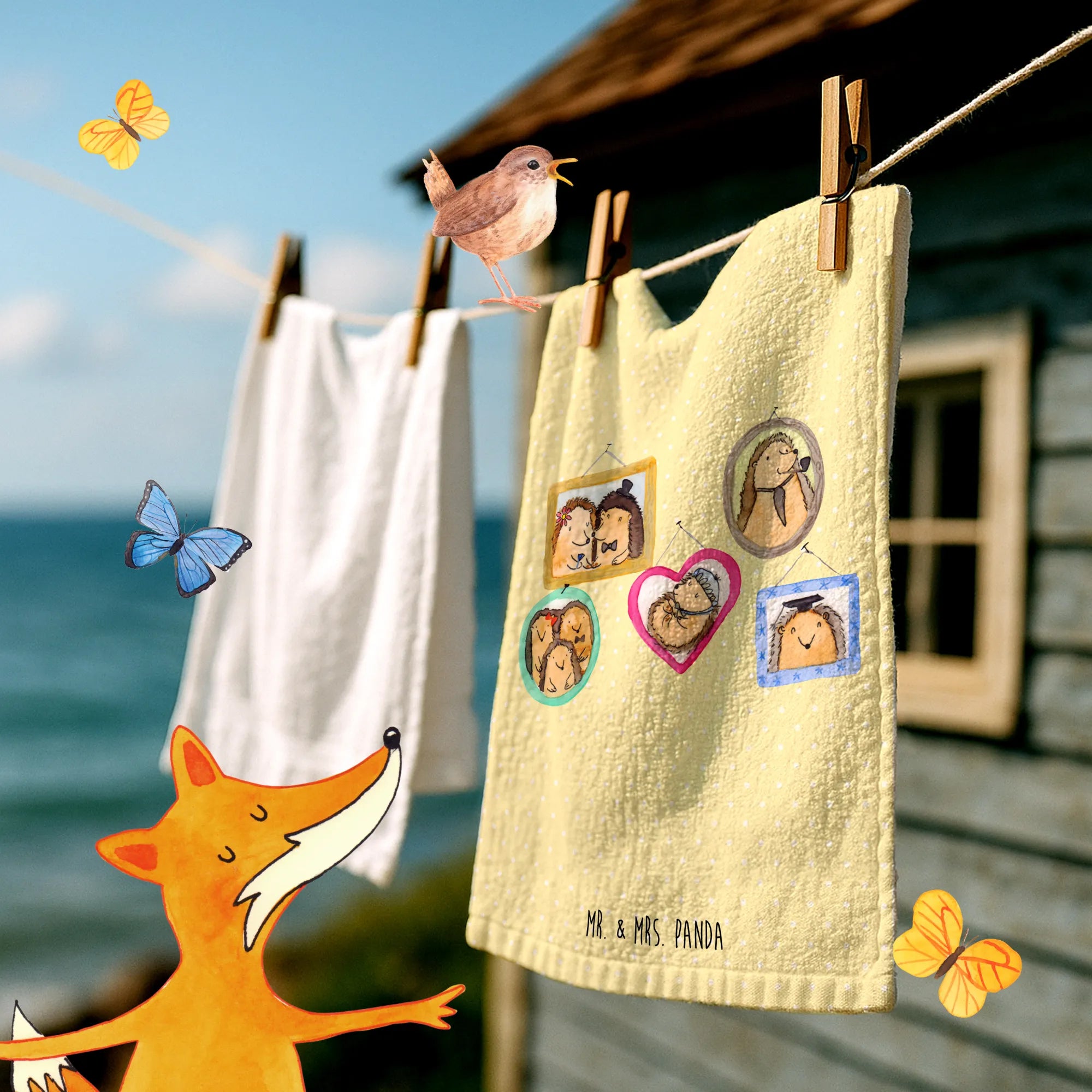 Das Gästehandtuch mit dem Motiven der Igel Familie aus der Kollektion Familie von Mr. & Mrs. Panda ist das perfekte Geschenk für alle, die die Strahlkraft der Familie schätzen. Jedes Handtuch ist hochwertig bedruckt mit süßen und liebevollen Motiven, die Herz und Wärme ausstrahlen.
