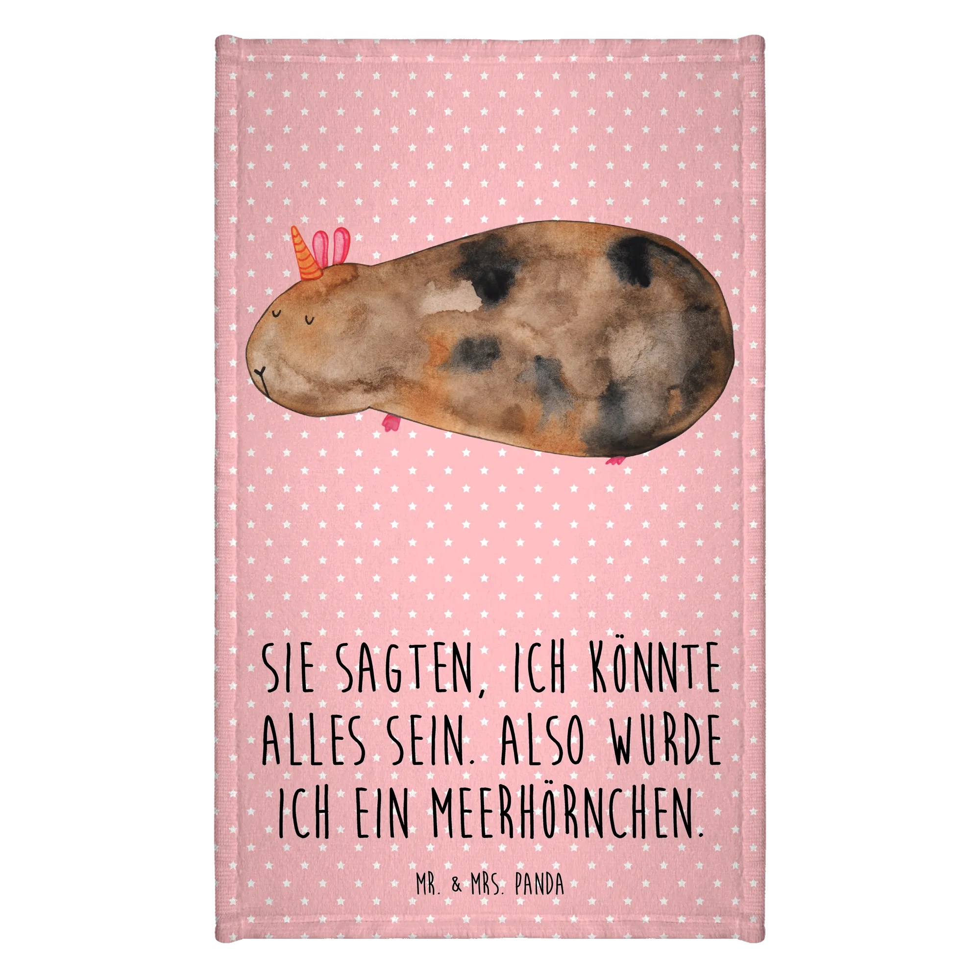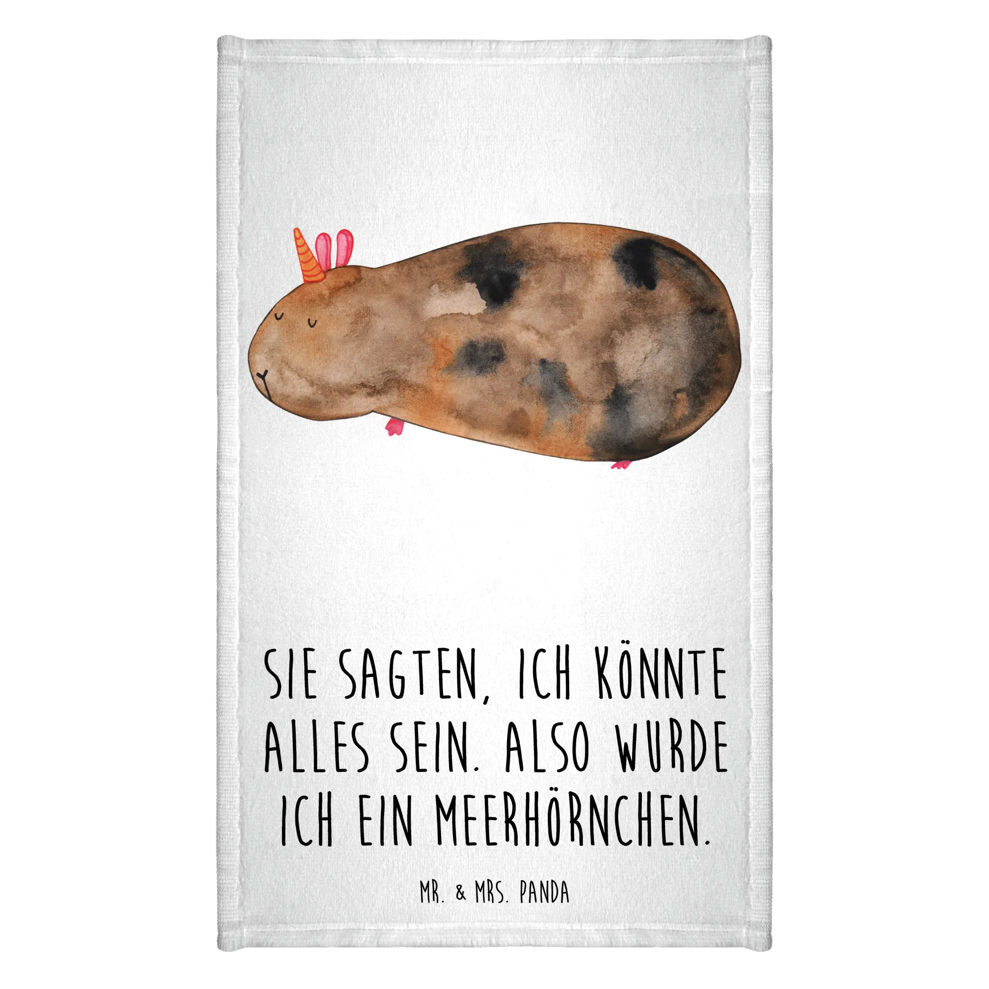 Das 50 x 100 Handtuch mit dem niedlichen Meerhörnchen aus der Einhorn-Kollektion von Mr. & Mrs. Panda ist das perfekte Geschenk für kleine Einhornfans und ihre Eltern! Mit einem einzigartigen und fröhlichen Design, das ein süßes Meerschweinchen mit einem Horn zeigt, zaubert es jedem ein Lächeln ins Gesicht.