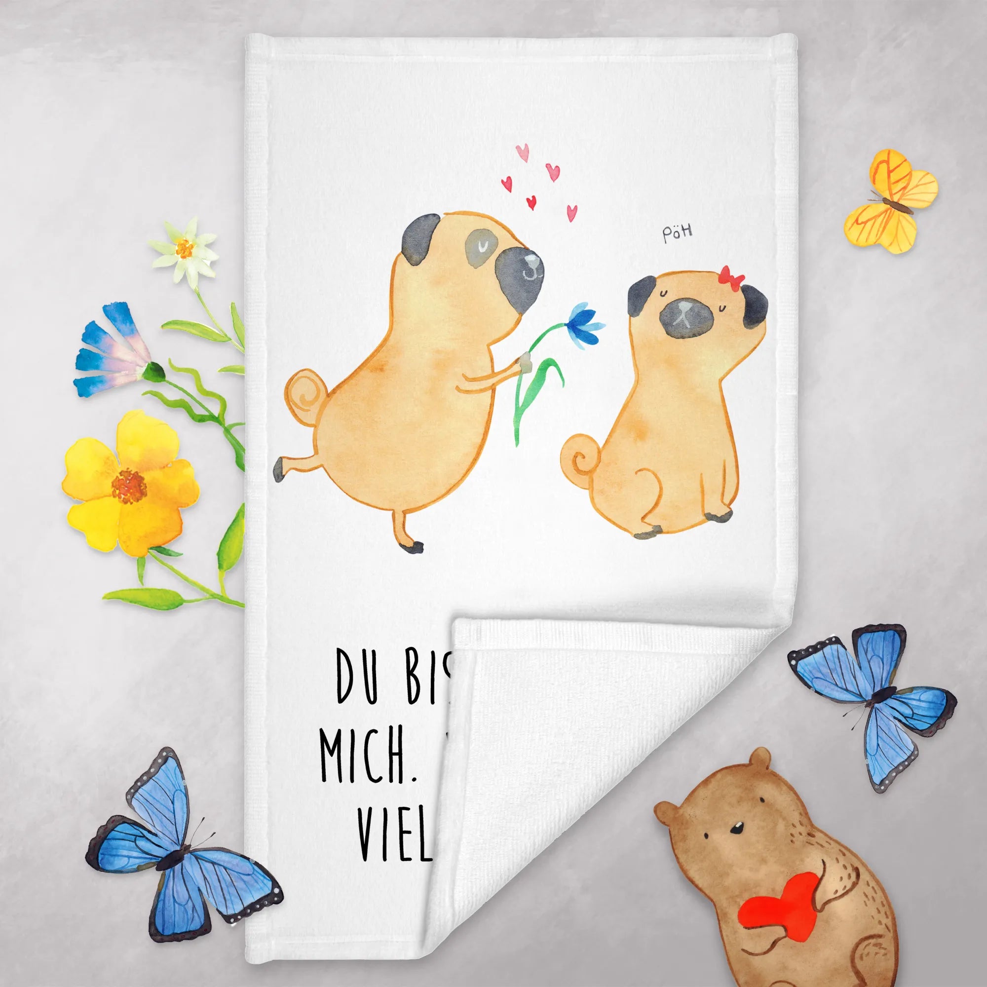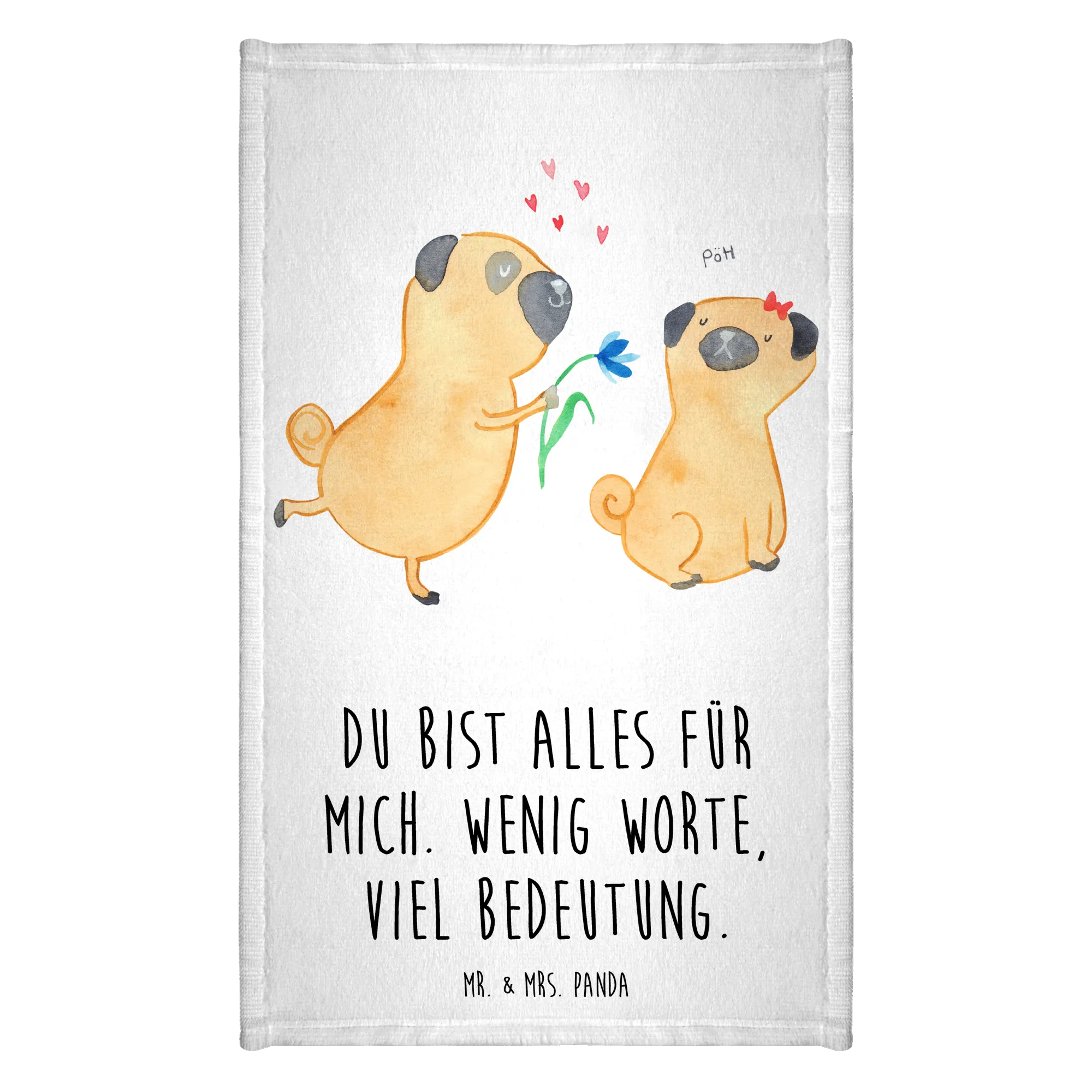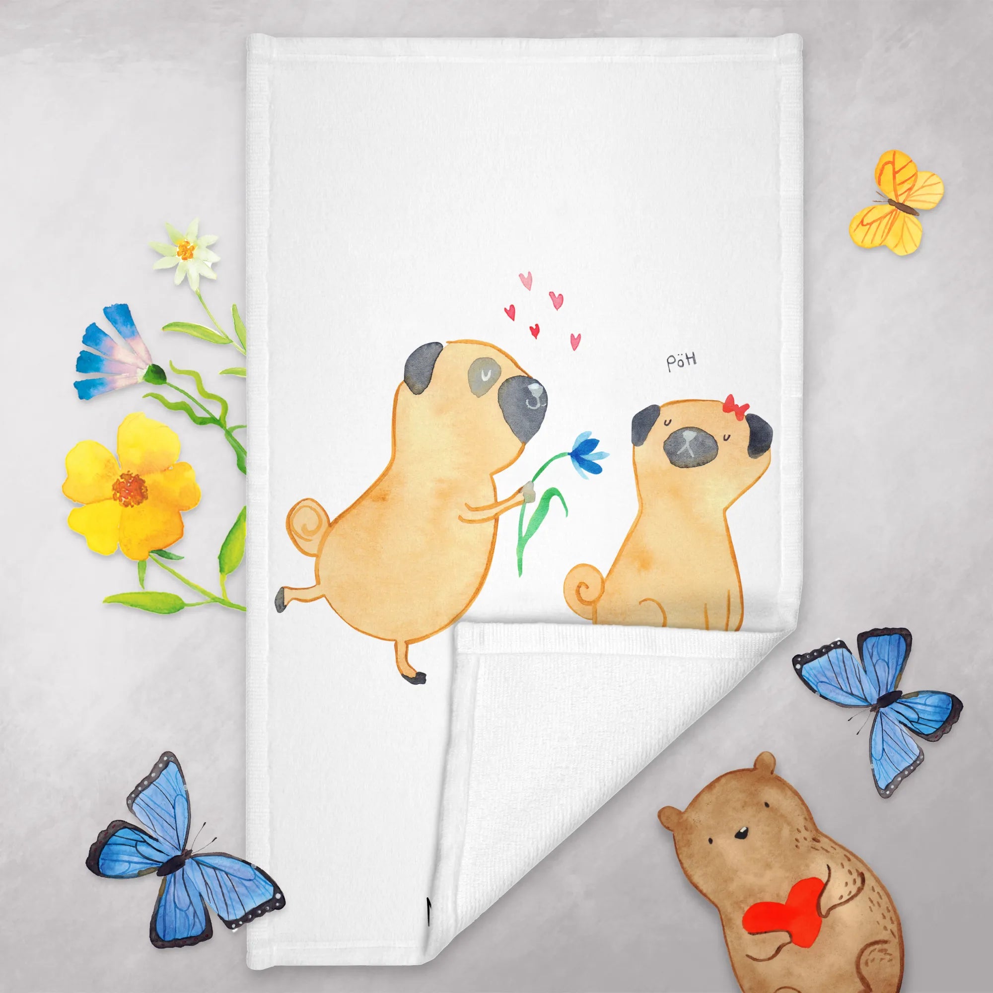 Gästehandtuch Mops Verliebt - 50 x 100 Handtuch - mit Spruch - Weiß