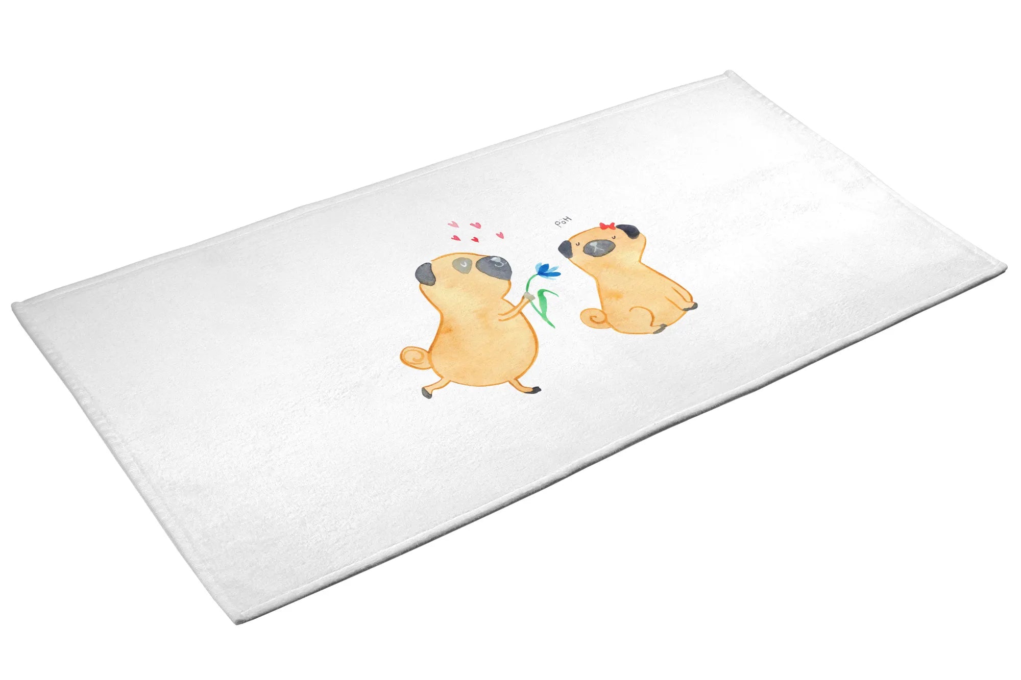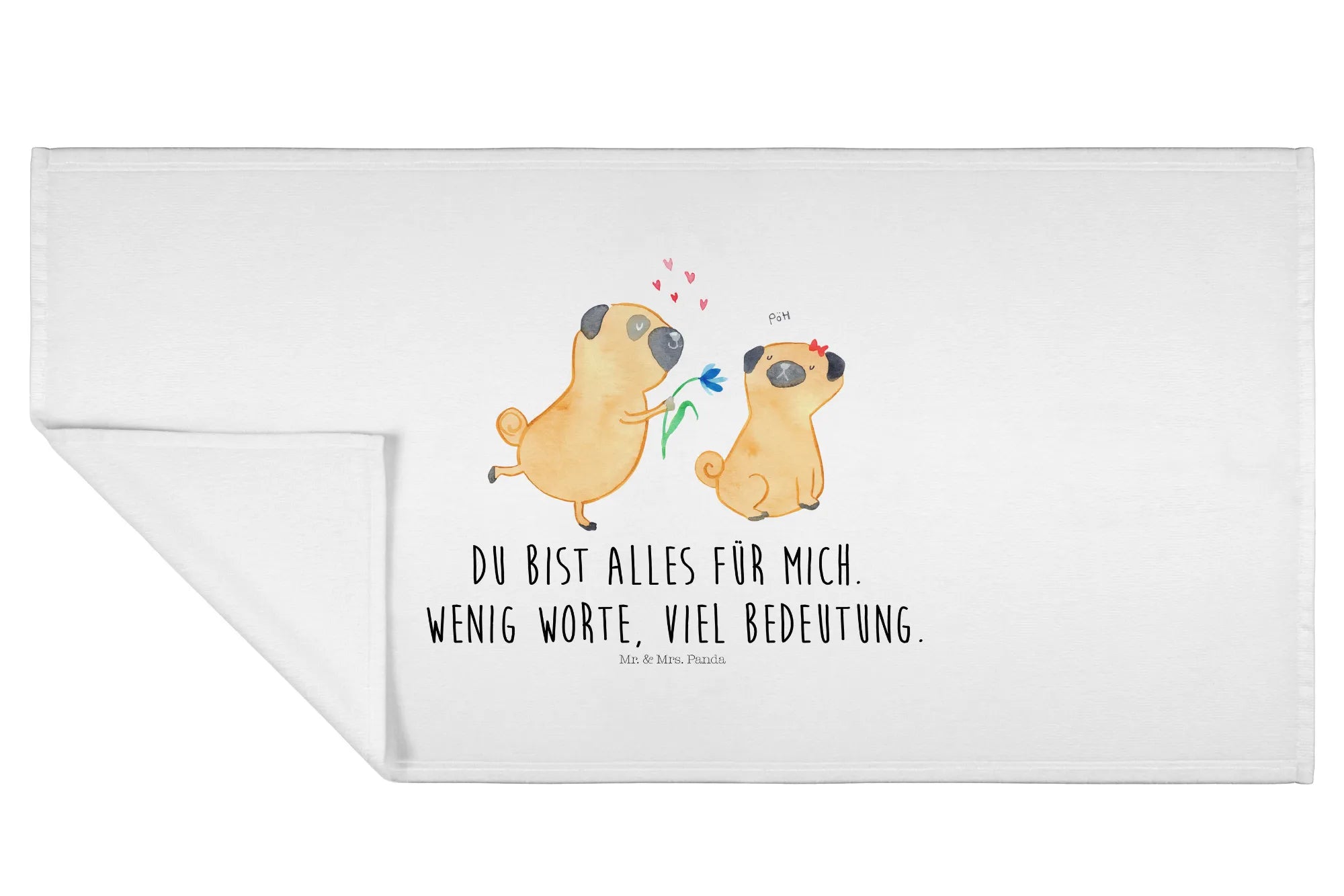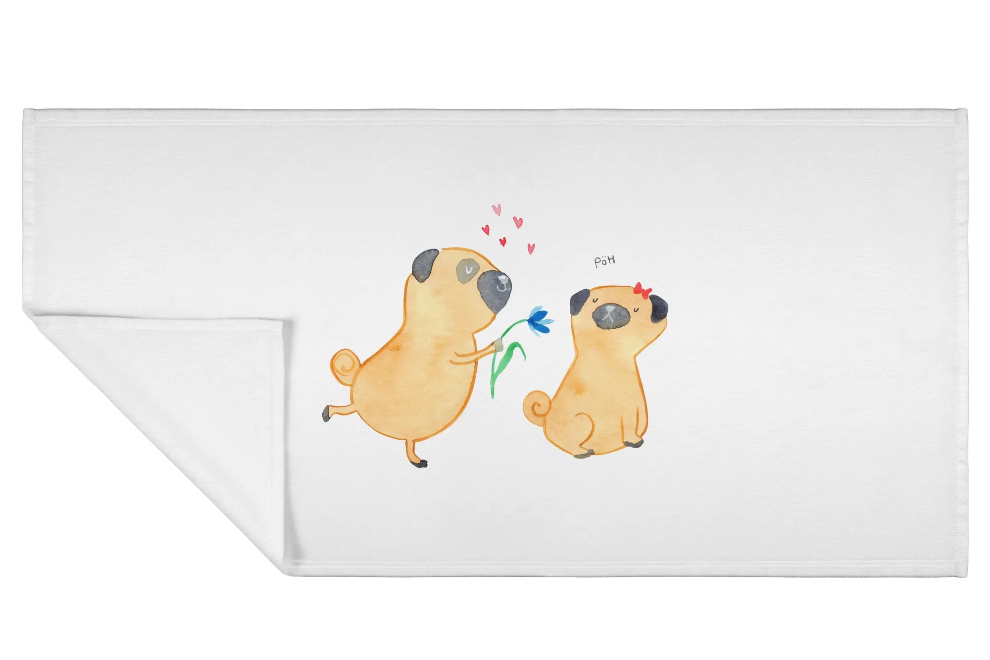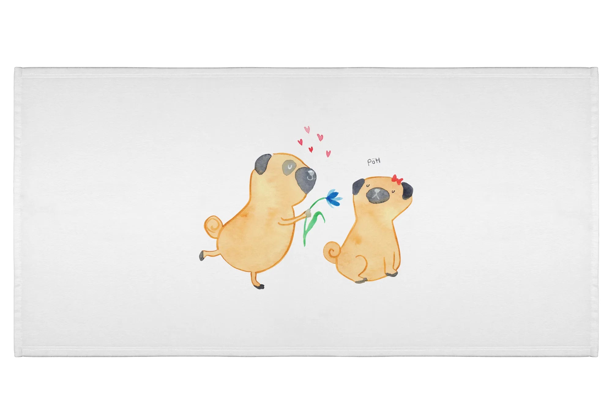 Gästehandtuch Mops Verliebt - 50 x 100 Handtuch - mit Spruch - Weiß