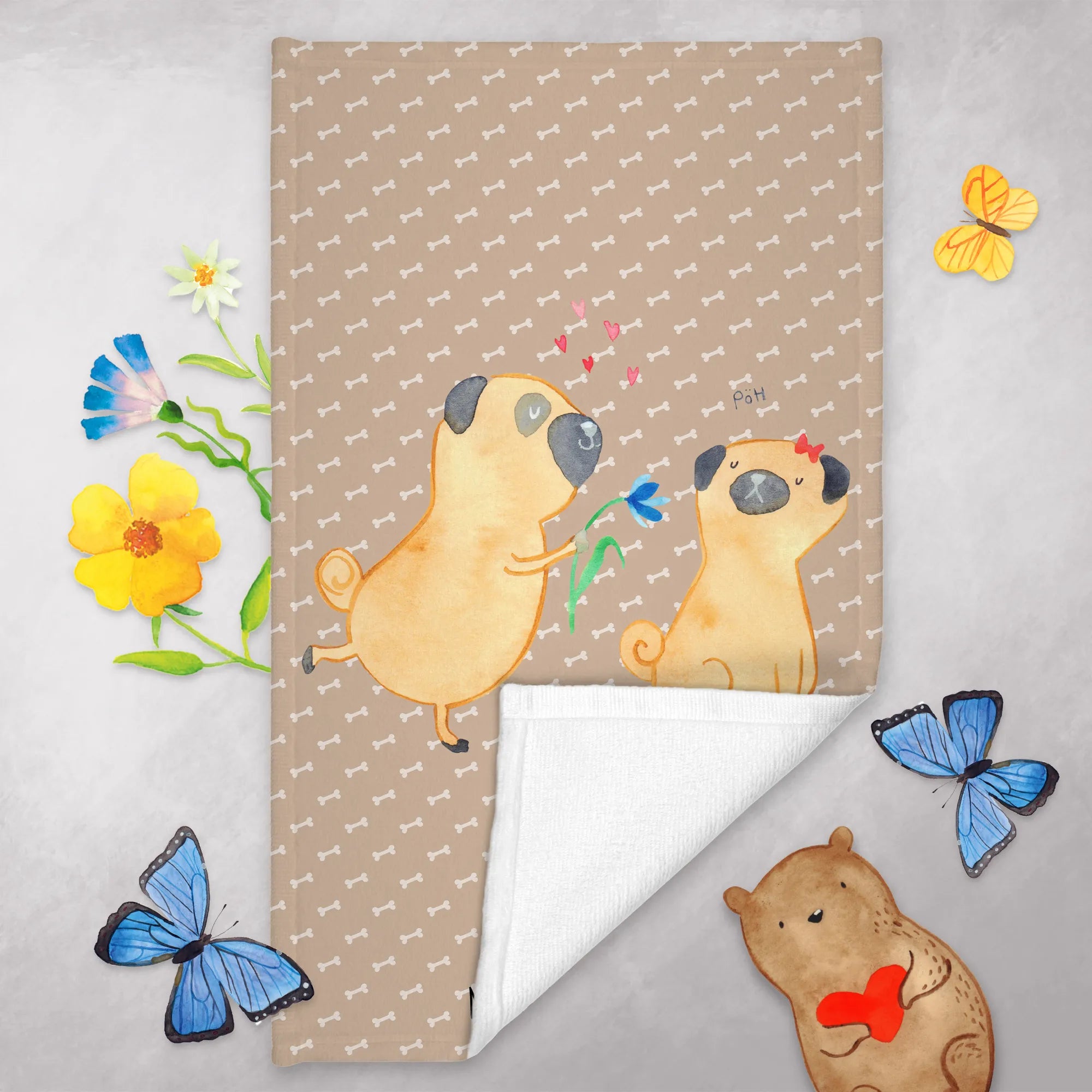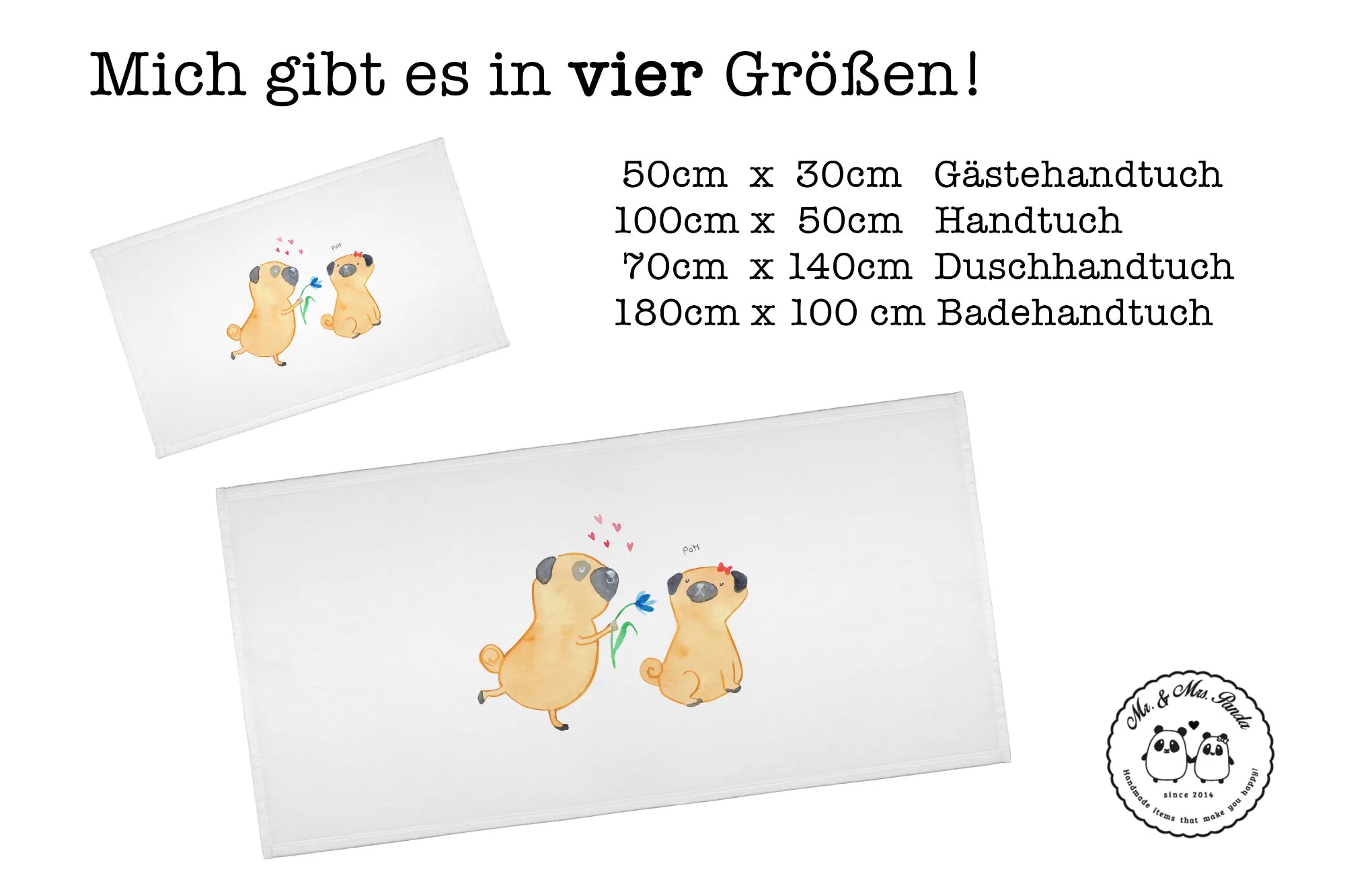 Das Gästetuch "Mops verliebt" von Mr. & Mrs. Panda ist nicht nur ein praktisches, sondern auch ein liebevolles Geschenk für alle Hundeliebhaber. Mit den Maßen von 300 mm x 500 mm ist es perfekt für dein Gästebad oder die Verwendung unterwegs.