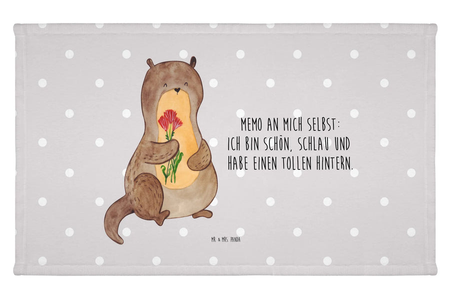 Dieses süße Gästehandtuch „Otter Blumenstrauß" aus der Otter - Kollektion von Mr. & Mrs. Panda bringt sofort gute Laune ins Bad. Auf einem sanften Grau pastell sitzt ein fröhlicher Seeotter mit einem bunten Blumenstrauß und dem frechen Spruch: „Memo an mich selbst: ich bin schön, schlau und habe einen tollen Hintern." Perfekt als Handtuch für Gäste, Gästehandtuch Badezimmer oder als kleines Geschenk für Otter-Fans. 😊