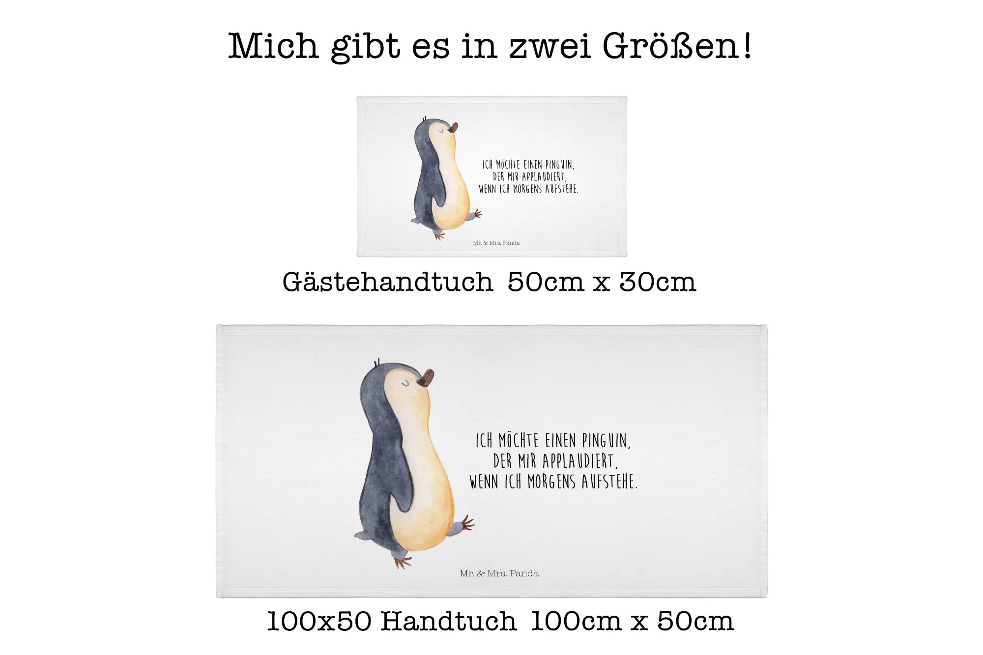 Dieser Pinguin ist nicht nur ein tolles Motiv für das Handtuch, sondern ein kleines Stück Freude für jeden Morgen. Ob für den Frühaufsteher oder den Langschläfer – das Handtuch wird die Stimmung heben und jeden Tag zu etwas Besonderem machen. Schenke deinen Liebsten etwas ganz Besonderes oder gönn dir selbst ein wenig Freude mit diesem handgefertigten Produkt von Mr. & Mrs. Panda, das mit Liebe und Sorgfalt entworfen wurde. Ein wunderbar weiches und hochwertig bedrucktes Handtuch, das charmant und praktisch zugleich ist. Es ist nicht personalisierbar, aber das macht es umso besser für Liebhaber von süßen Motiven und Sprüchen. Ob als Geschenk oder zur eigenen Verwendung, dieses Handtuch mit dem Pinguin kuschelt sich für viele Jahre an deine Haut und macht jeden Tag ein Stück fröhlicher.