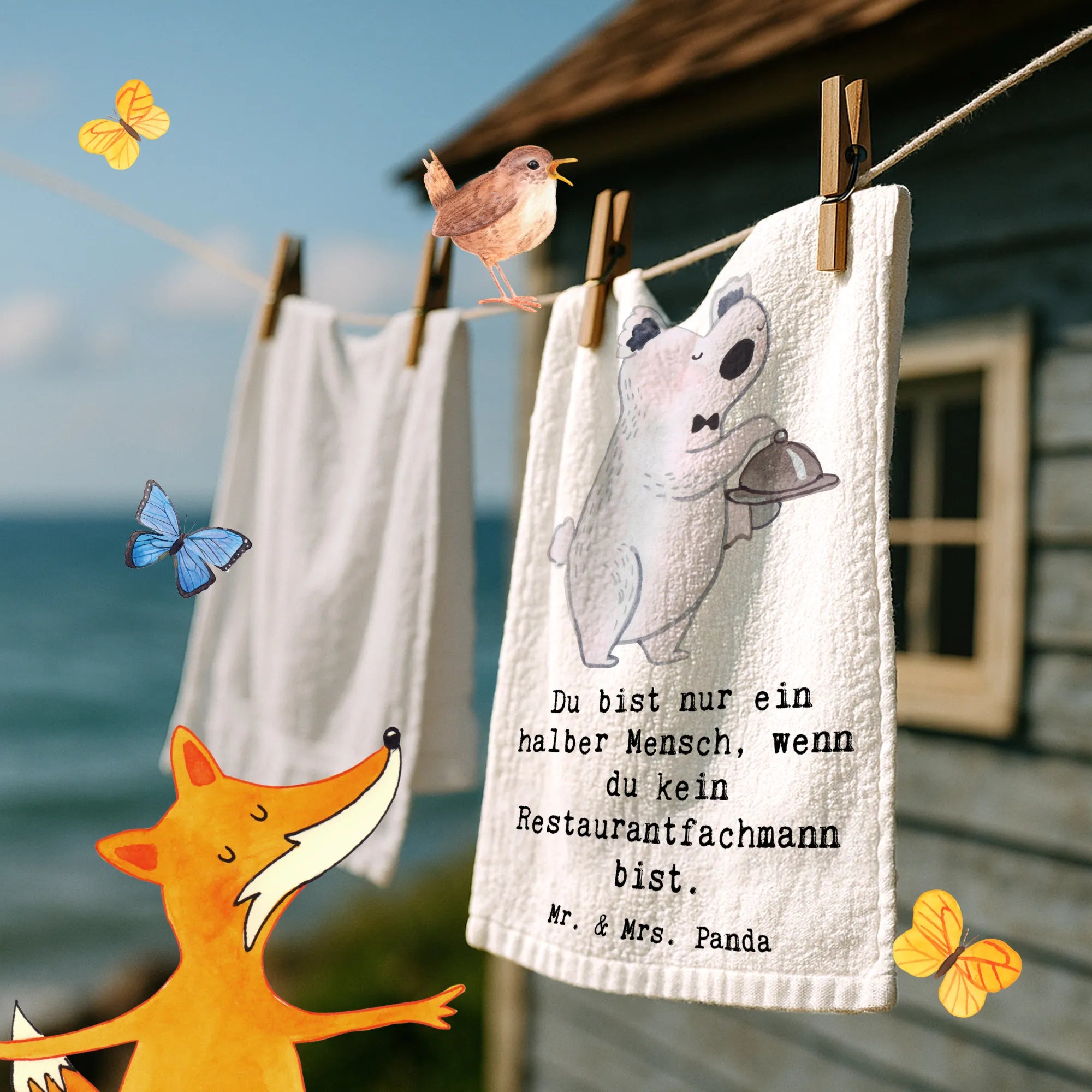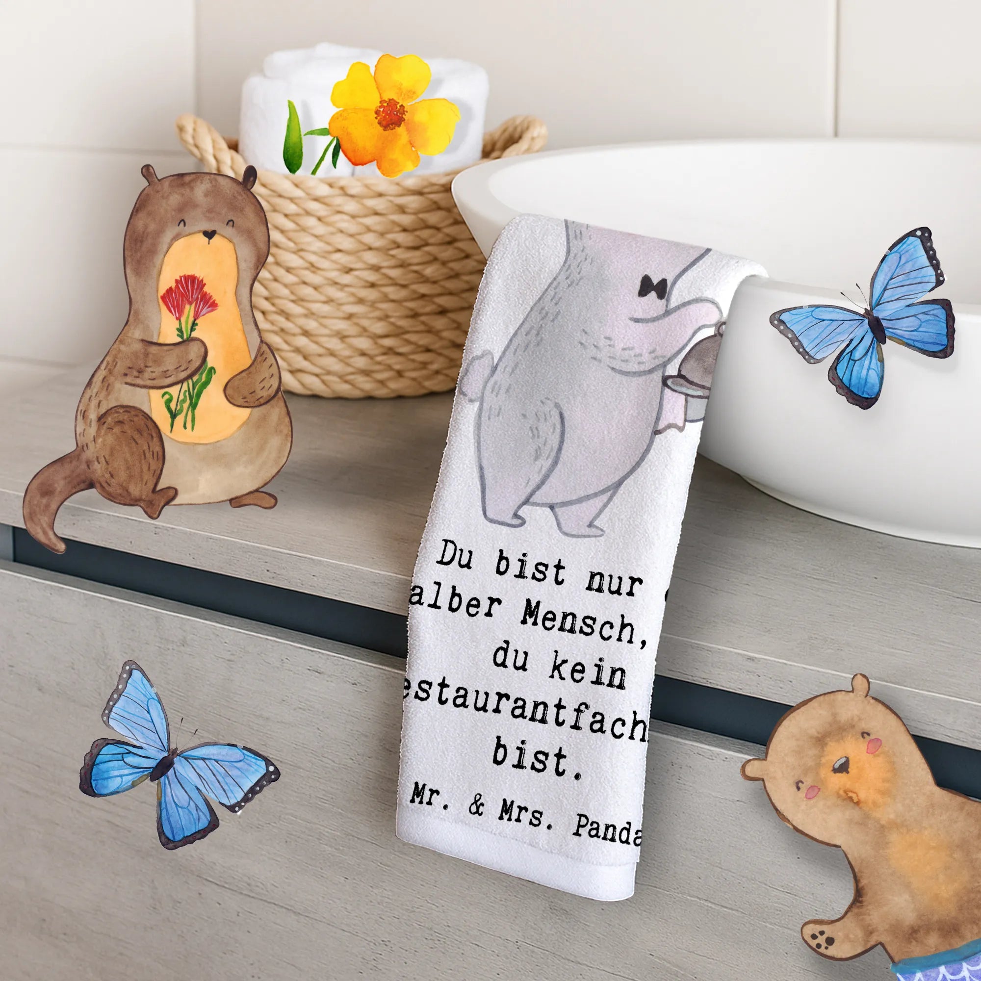 Das wunderschöne Gästehandtuch mit dem Motiv "Restaurantfachmann mit Herz" von Mr. & Mrs. Panda ist das perfekte Geschenk für all jene, die im Servicebereich tätig sind oder eine Ausbildung im Restaurantfach absolvieren. Mit einem witzigen Spruch, der sagt: "Du bist nur ein halber Mensch, wenn du kein Restaurantfachmann bist", bringt dieses Handtuch ein Lächeln auf die Gesichter deiner Kollegen.