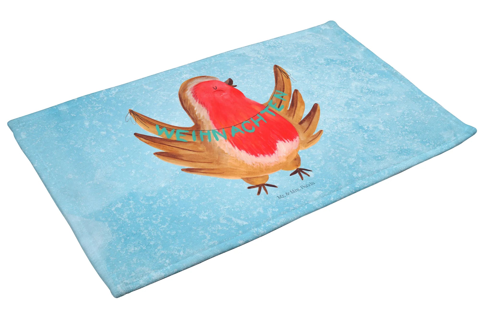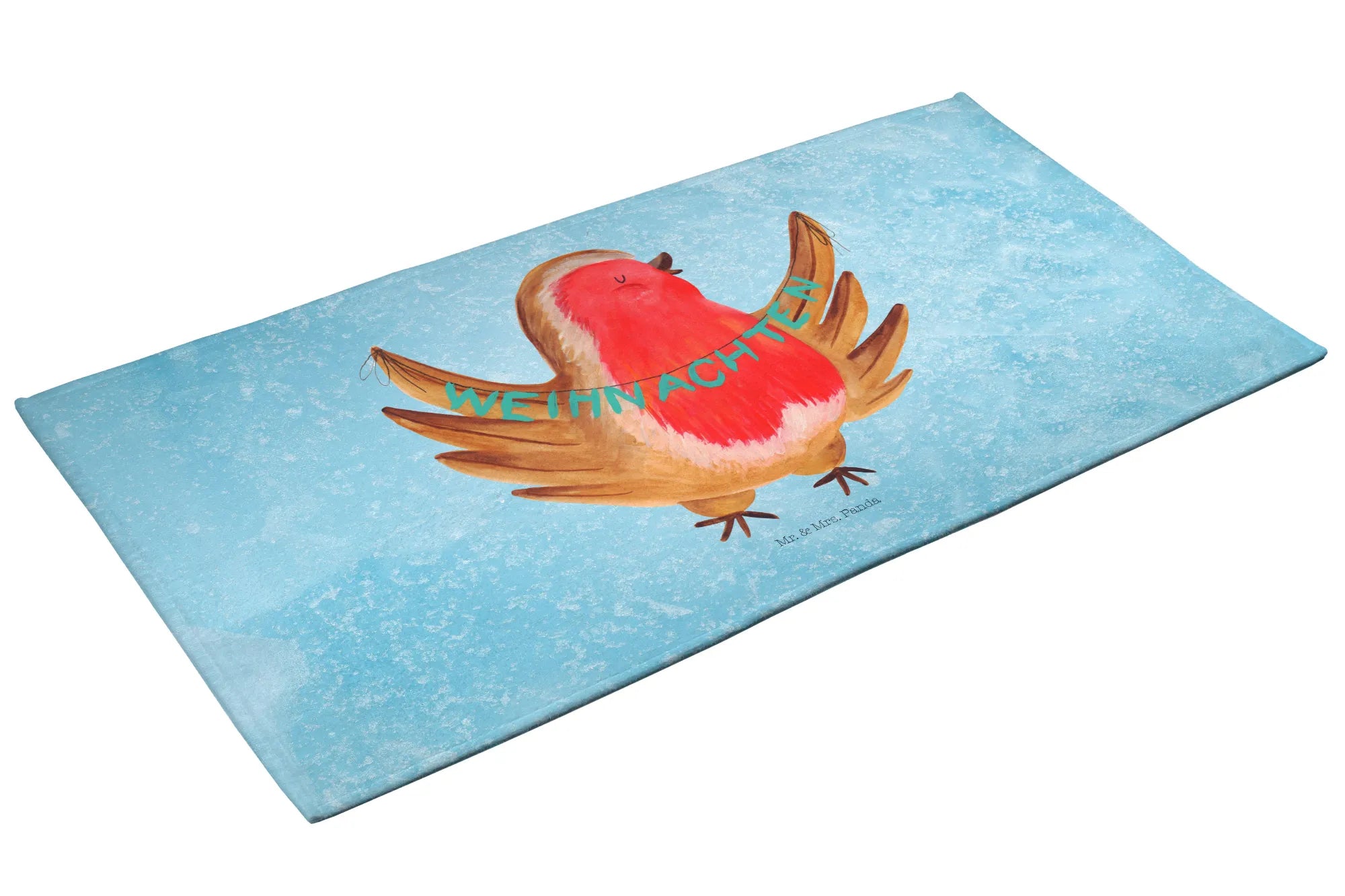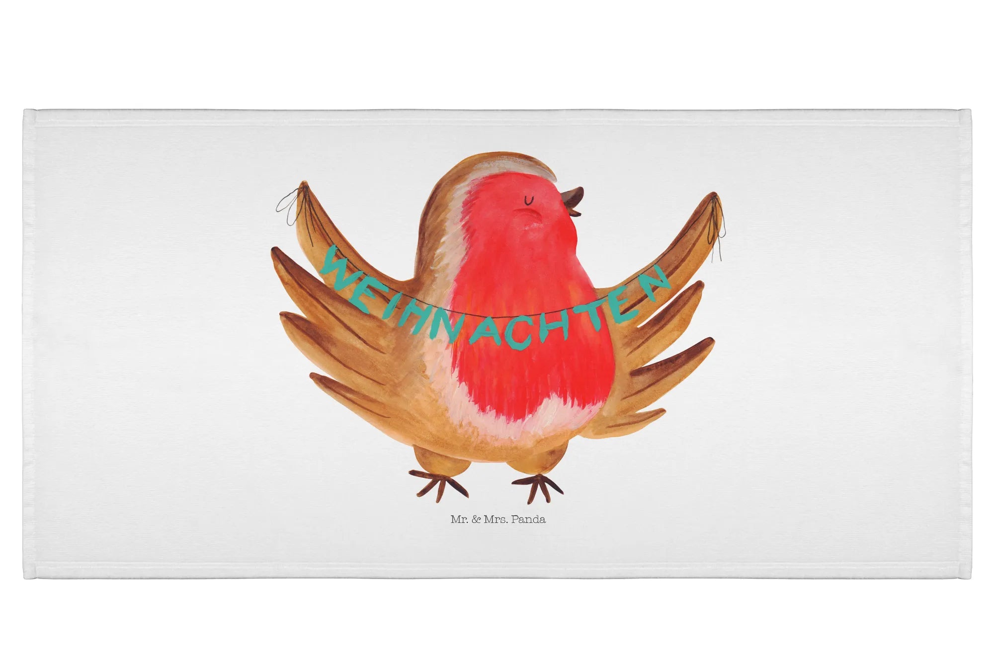 Entdecke das zauberhafte 50 x 100 Handtuch mit dem fröhlichen Rotkehlchen Weihnachtsmotiv aus der Winter Kollektion von Mr. & Mrs. Panda! Dieses handgefertigte Handtuch ist nicht nur alltagspraktisch, sondern bringt auch eine wunderbare winterliche Stimmung in dein Badezimmer.