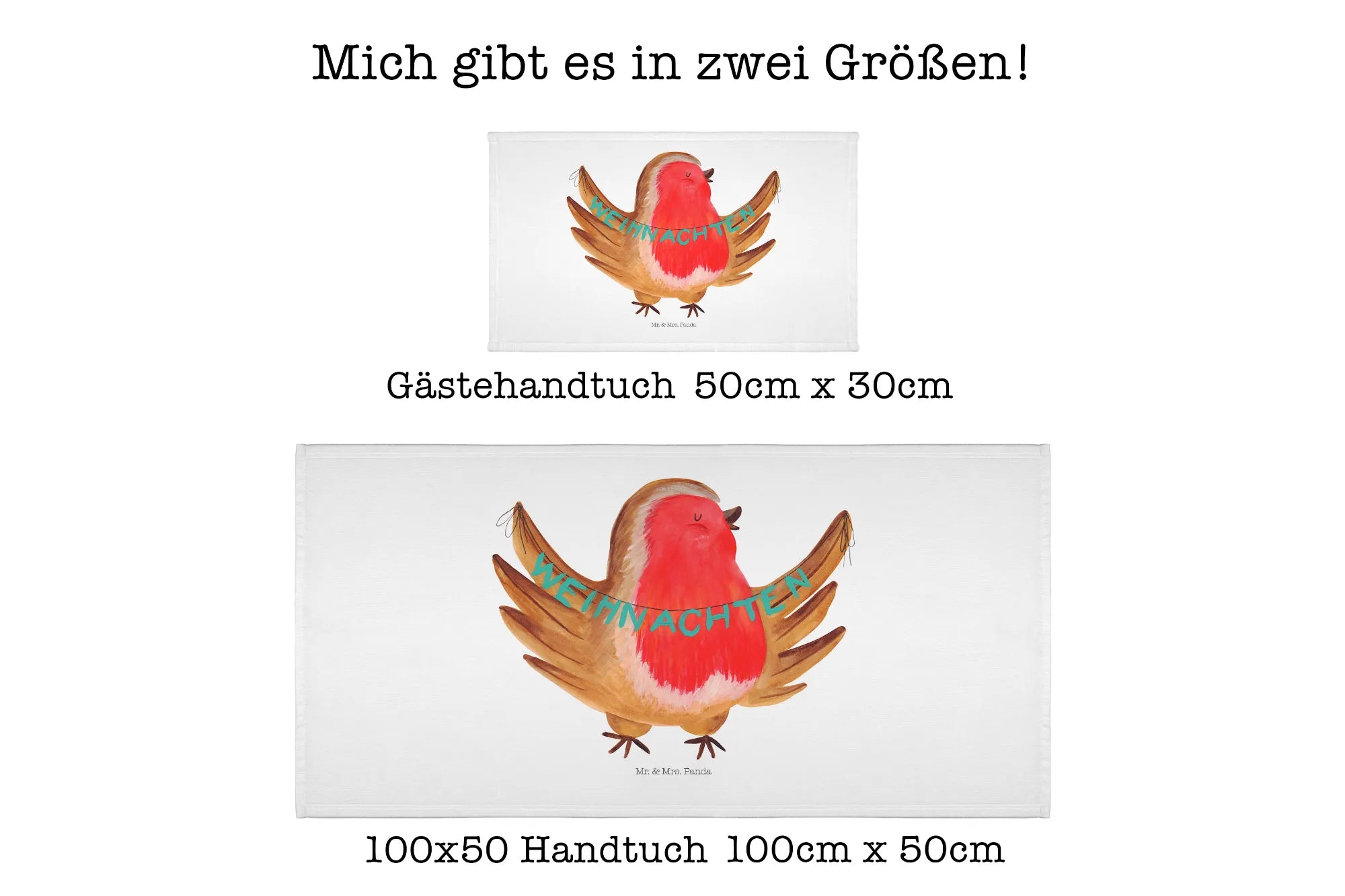 Das 50 x 100 Handtuch mit dem süßen Rotkehlchen Weihnachten Motiv von Mr. & Mrs. Panda ist das perfekte Geschenk für die Weihnachtszeit. Dieses hochwertige Handtuch aus einer flauschigen Baumwollmischung bringt fröhliche Farben in jedes Badezimmer und sorgt dafür, dass es eine warme und einladende Atmosphäre schafft. Es ist nicht nur ein praktisches Bad-Accessoire, sondern auch ein Ausdruck von liebevollen Weihnachtsgefühlen! 🎄