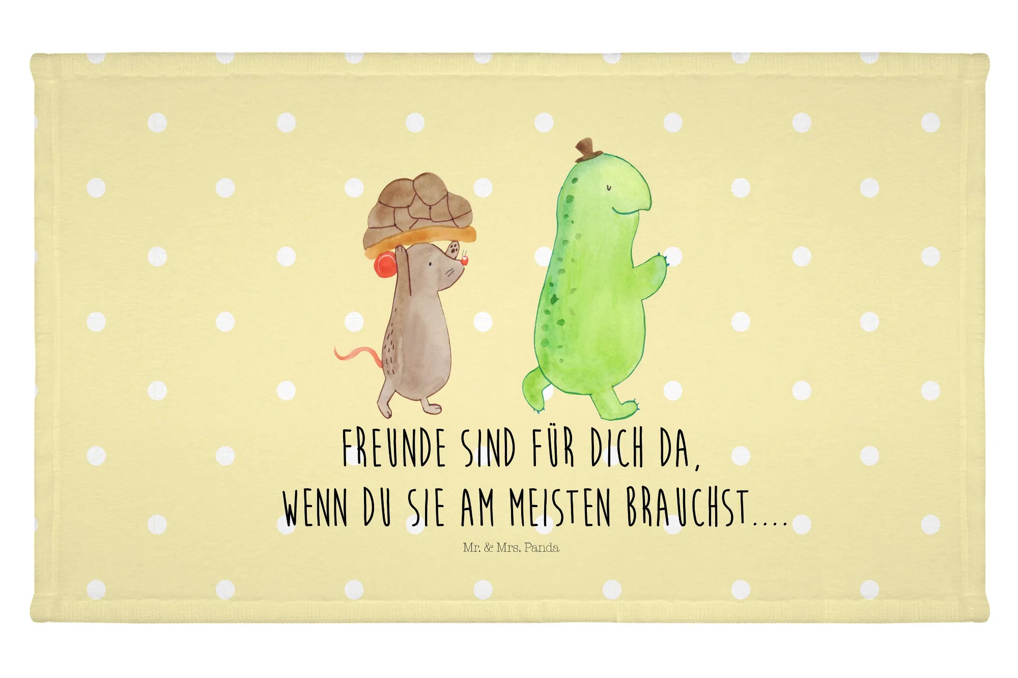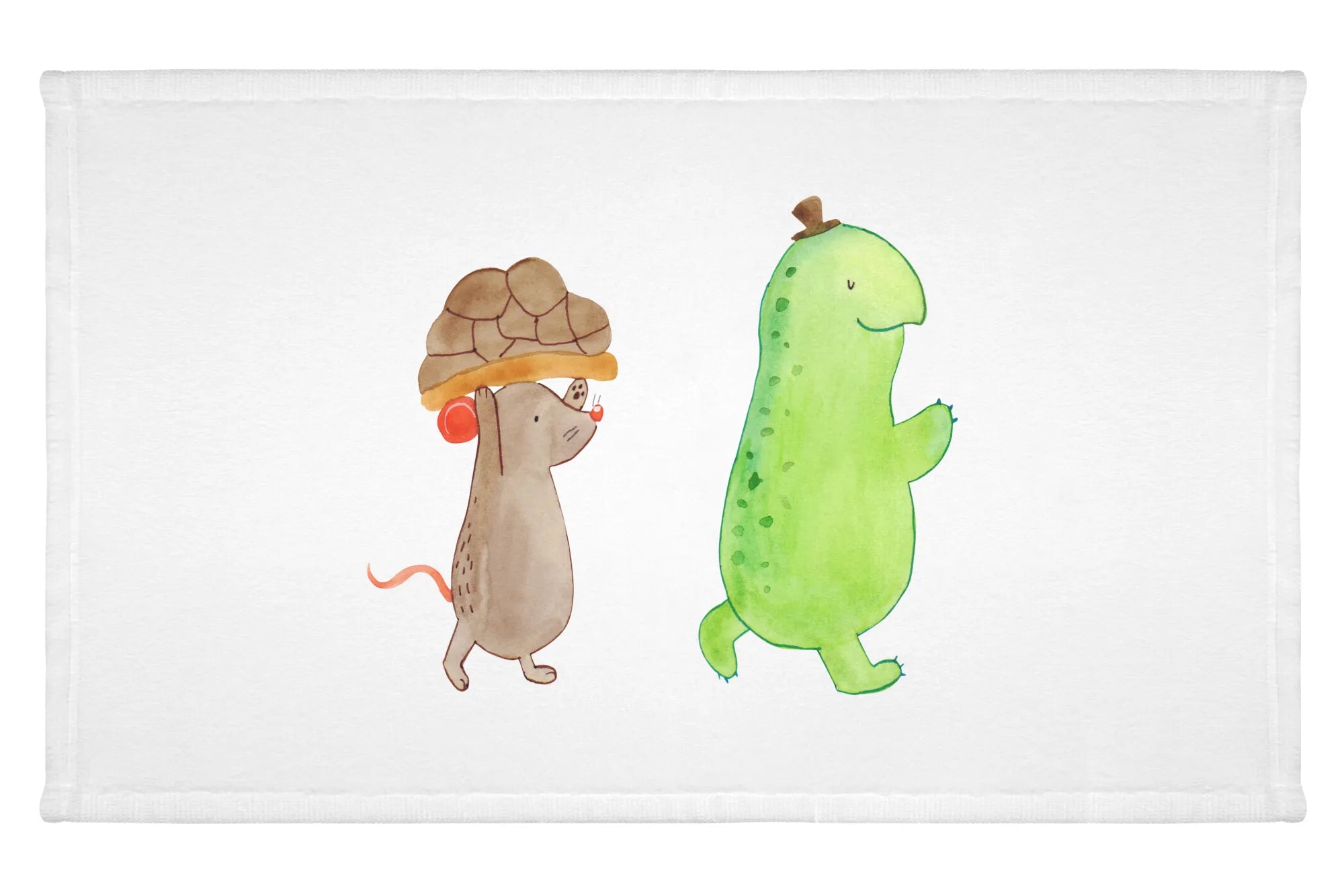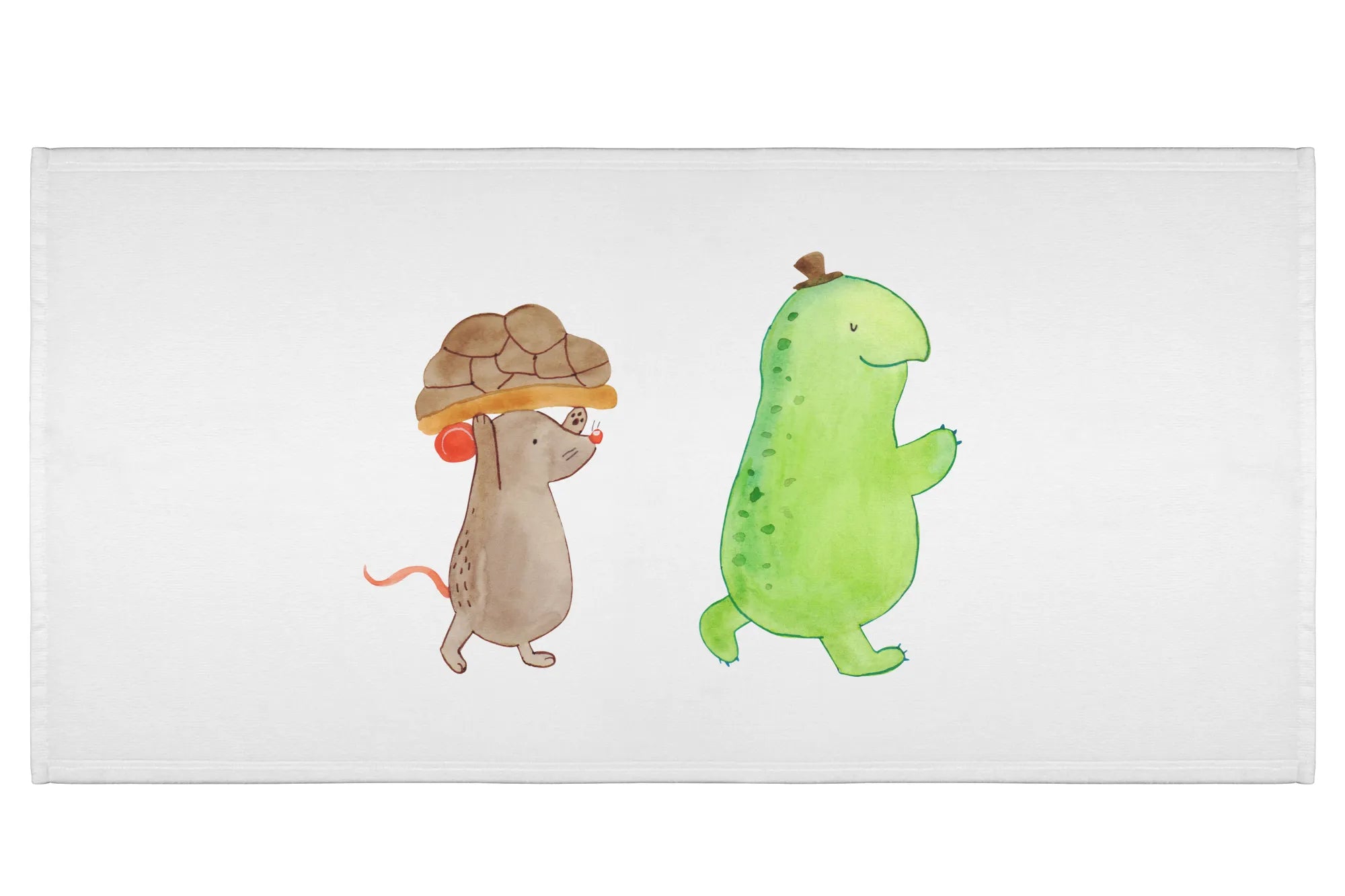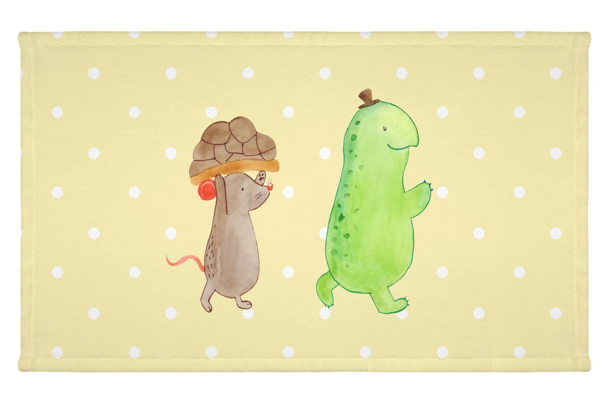 Das Gästetuch mit dem bezaubernden Motiv Schildkröte und Maus von Mr. & Mrs. Panda ist das perfekte Geschenk für jeden Anlass! Egal, ob du es für dein eigenes Badezimmer nutzen oder jemandem einen liebevollen Gruß schicken möchtest – dieses Handtuch bringt Freude und Farbe in jeden Raum.