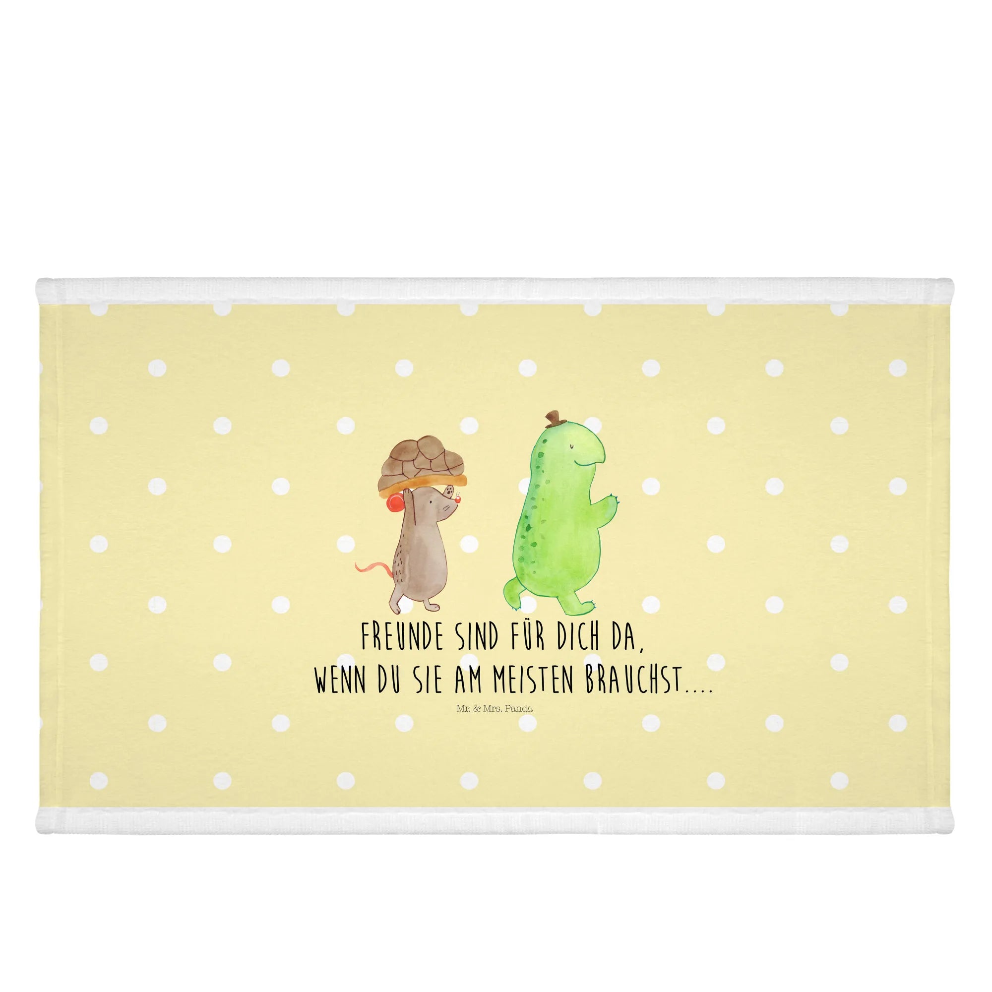 Das süße Gästehandtuch mit dem zauberhaften Motiv „Schildkröte & Maus“ von Mr. & Mrs. Panda ist das perfekte Geschenk für alle Gäste und Tierliebhaber. Ob für dein Badezimmer, das Gästebad oder als tolles Mitbringsel zu einer Einladung – dieses Handtuch verbreitet Liebe und Freude! Die angesagte Farbgebung in pastelligen Gelbtönen bringt einen Hauch von Frische in jeden Raum.