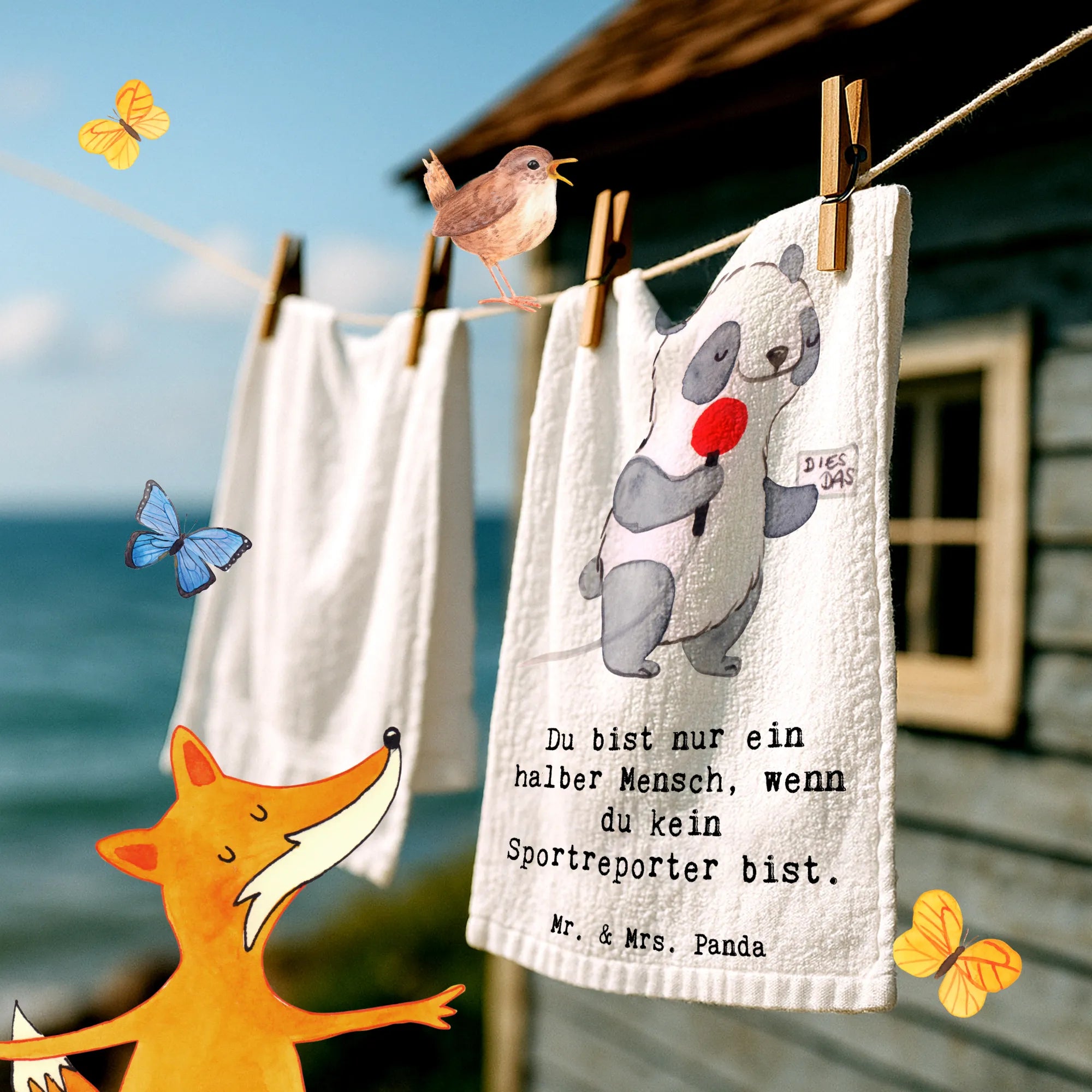 Das Gästetuch "Sportreporter mit Herz" aus der kreativen Berufe Kollektion von Mr. & Mrs. Panda ist das perfekte Geschenk für alle Sportreporter und Sportreporterinnen!