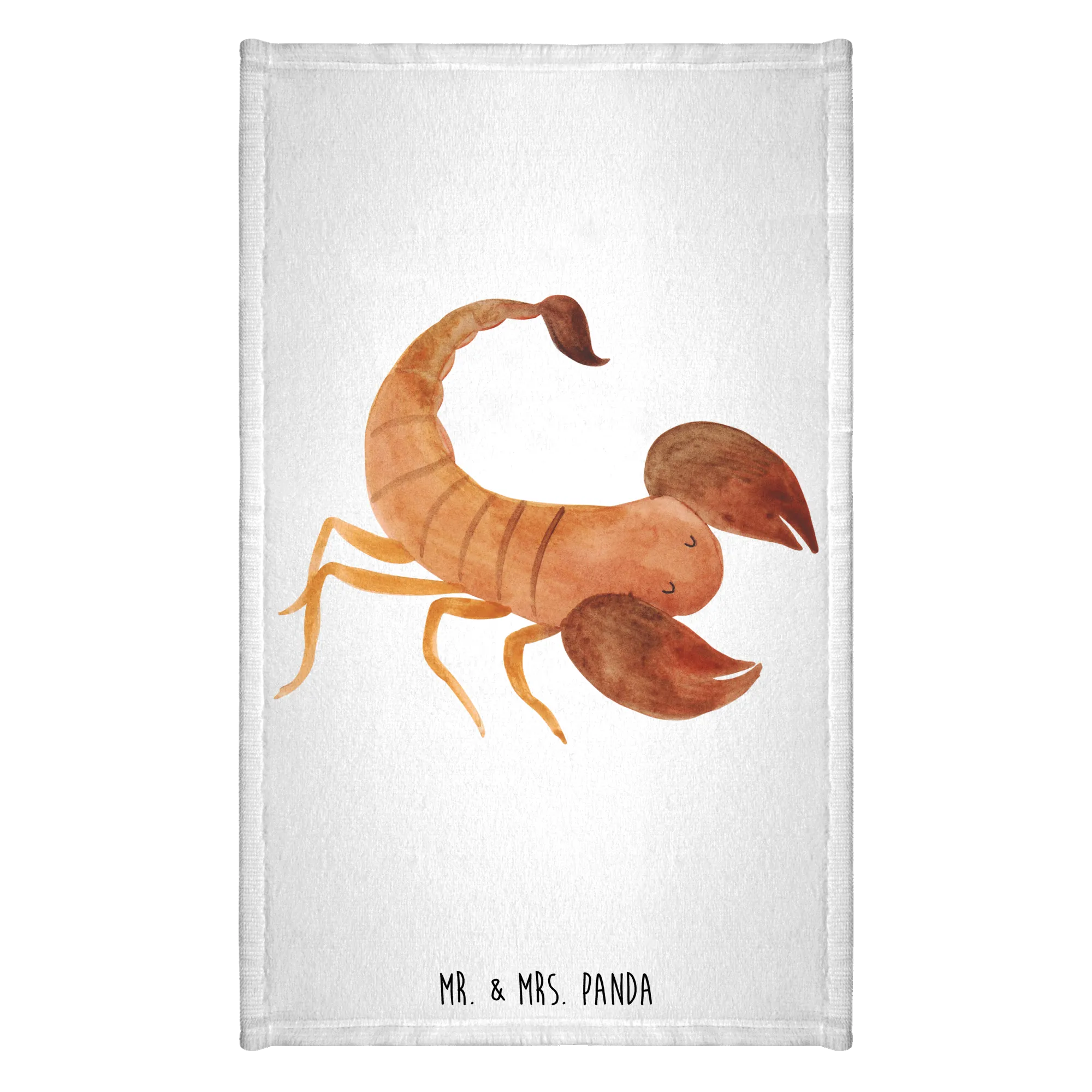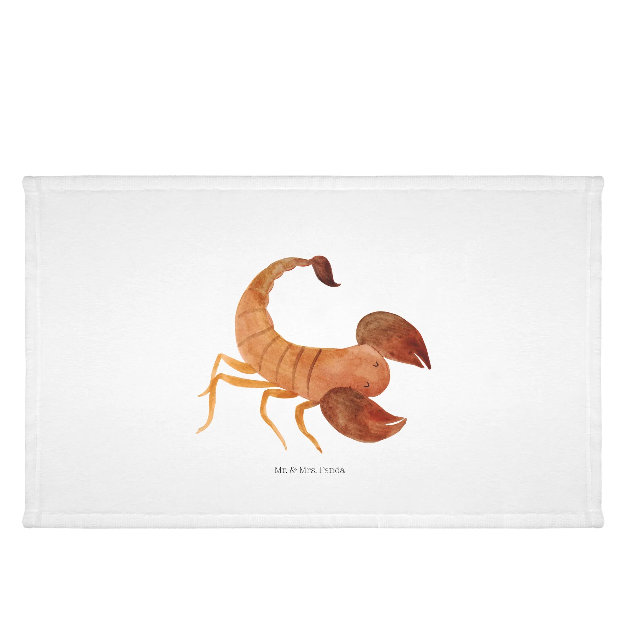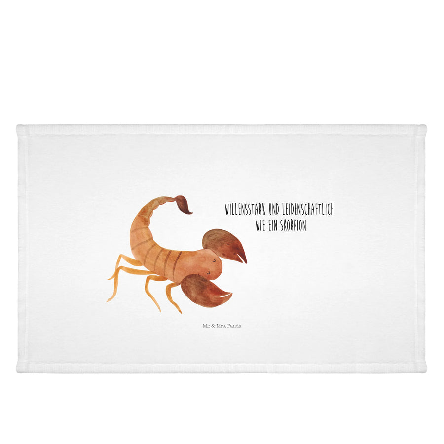 Das Gästehandtuch mit dem süßen Skorpion-Motiv von Mr. & Mrs. Panda ist das ideale Geschenk für alle, die im Oktober oder November Geburtstag haben. Als Teil der einzigartigen Sternzeichen-Kollektion zeigt dieses handgezeichnete Design nicht nur einen charmanten Skorpion, sondern spiegelt auch die Eigenschaften und das Wesen der Skorpion-Geborenen wider. Mit einer Größe von 300 mm x 500 mm passt es perfekt in jedes Badezimmer und bringt fröhliche Farben in dein Zuhause.