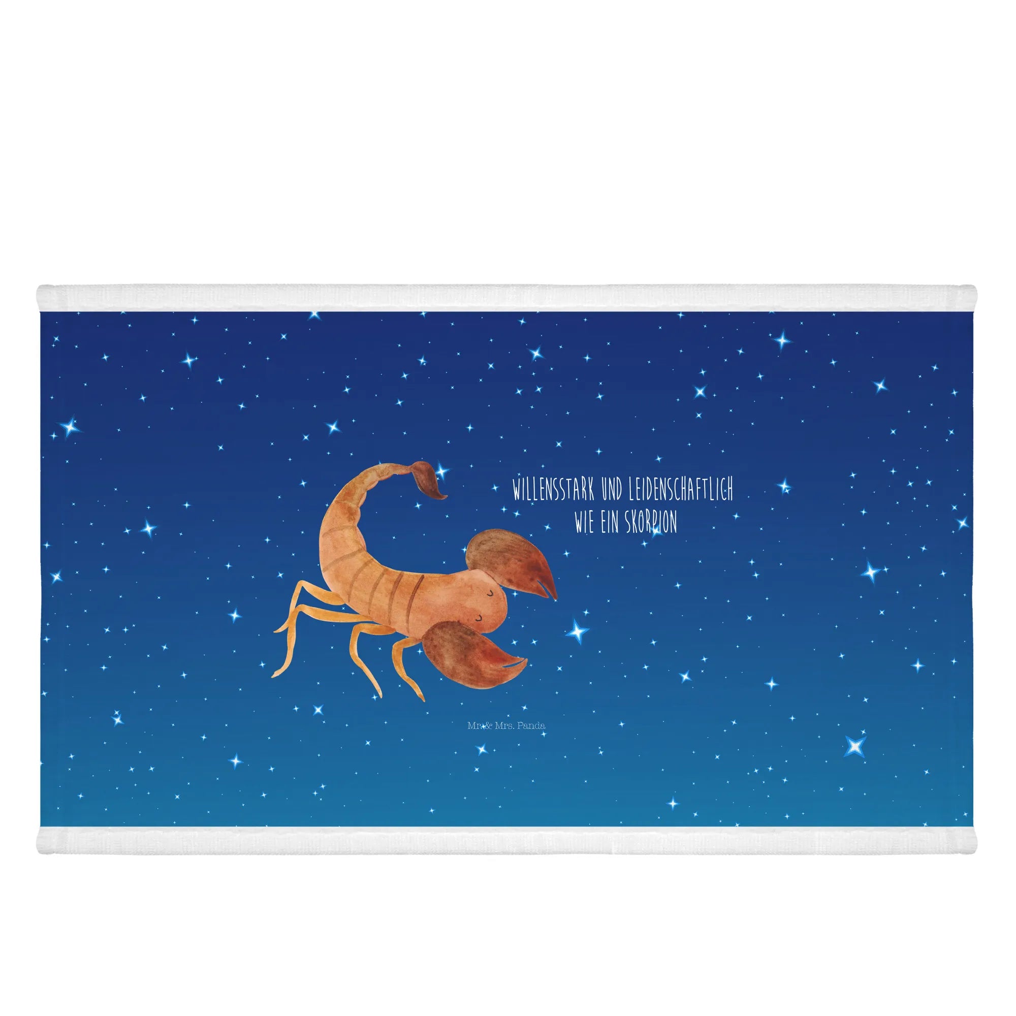 Ein wunderschönes Gästehandtuch von Mr. & Mrs. Panda – niedlich, persönlich und perfekt für Sternzeichen-Fans. Unser Gästehandtuch mit dem Sternzeichen Skorpion zeigt einen frechen, kleinen Skorpion vor einem Sternenhimmel-Blau und trägt den Spruch „Willensstark und leidenschaftlich wie ein Skorpion“. Ein liebevolles Motiv, das besonders gut als Geschenk für Geburtstage im Oktober und November oder als Aufmerksamkeit für Astrologie-Freunde passt. ✨