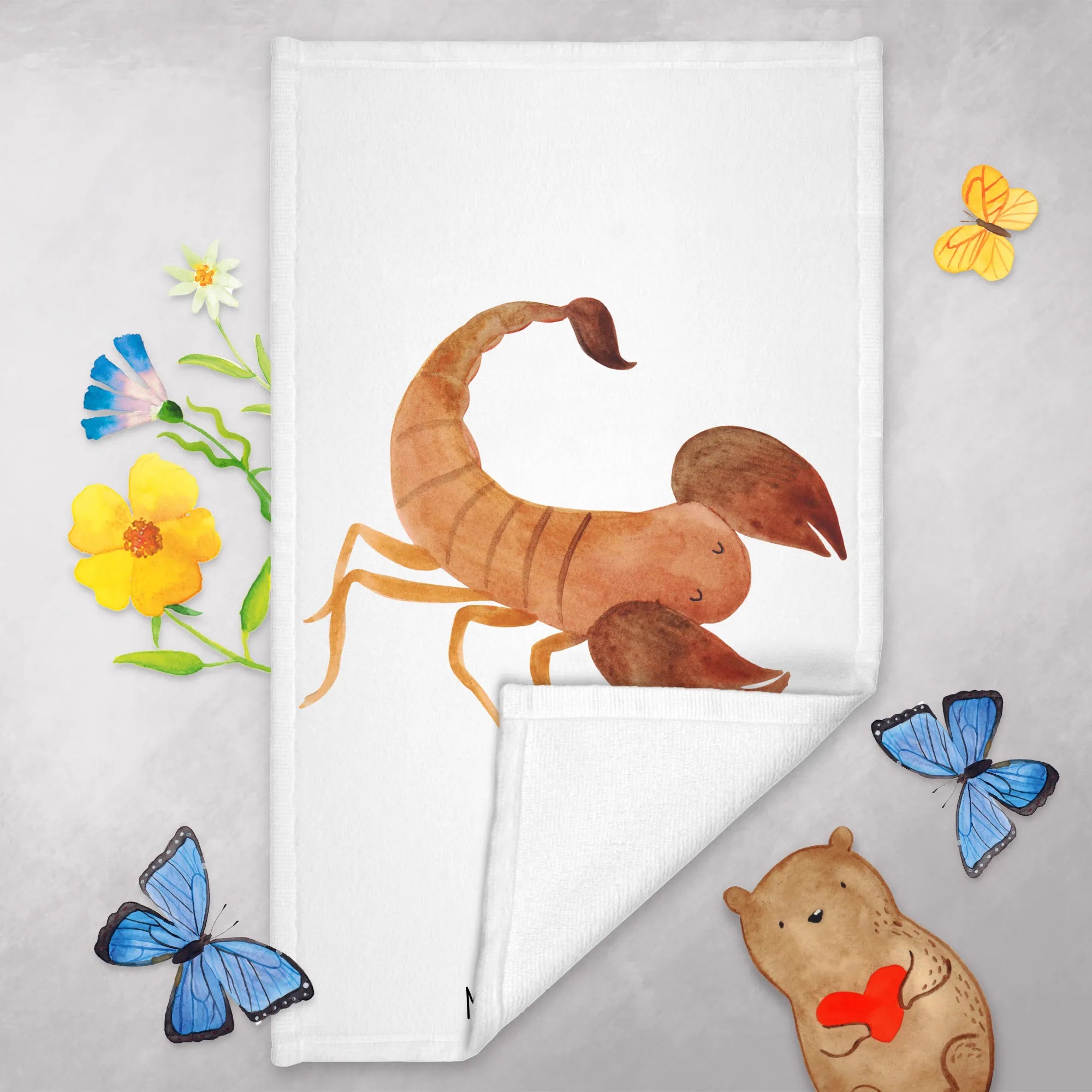 Dieses Gästetuch bringt Persönlichkeit und gute Laune in jedes Badezimmer. Es ist ideal als Gästetuch, Handtuch für Gäste oder kleines Geschenk zum Geburtstag im Oktober oder November. Besonders geeignet als Skorpion Geschenk oder für alle, die an Sternzeichen, Astrologie und Tierkreiszeichen Freude haben.