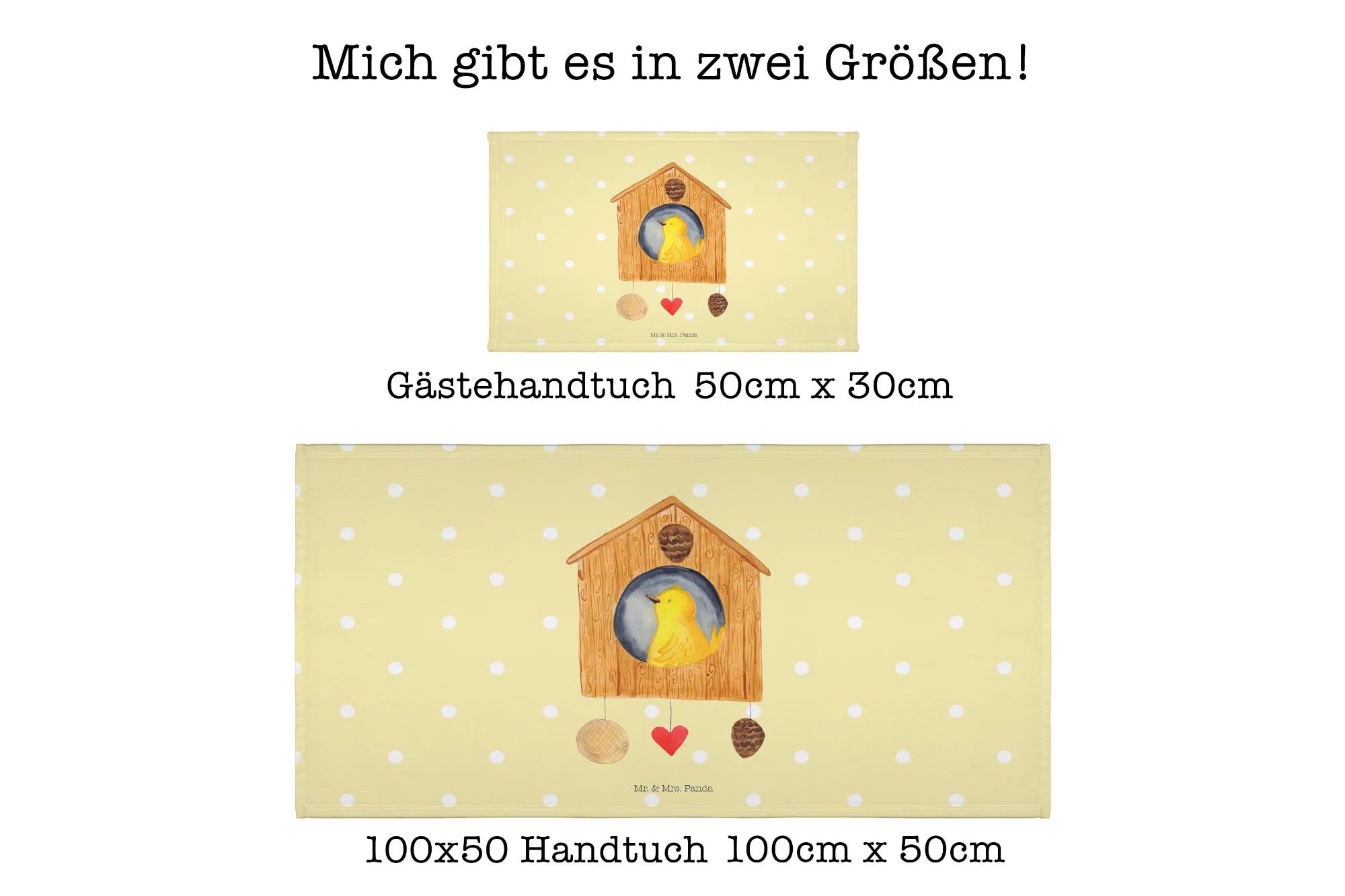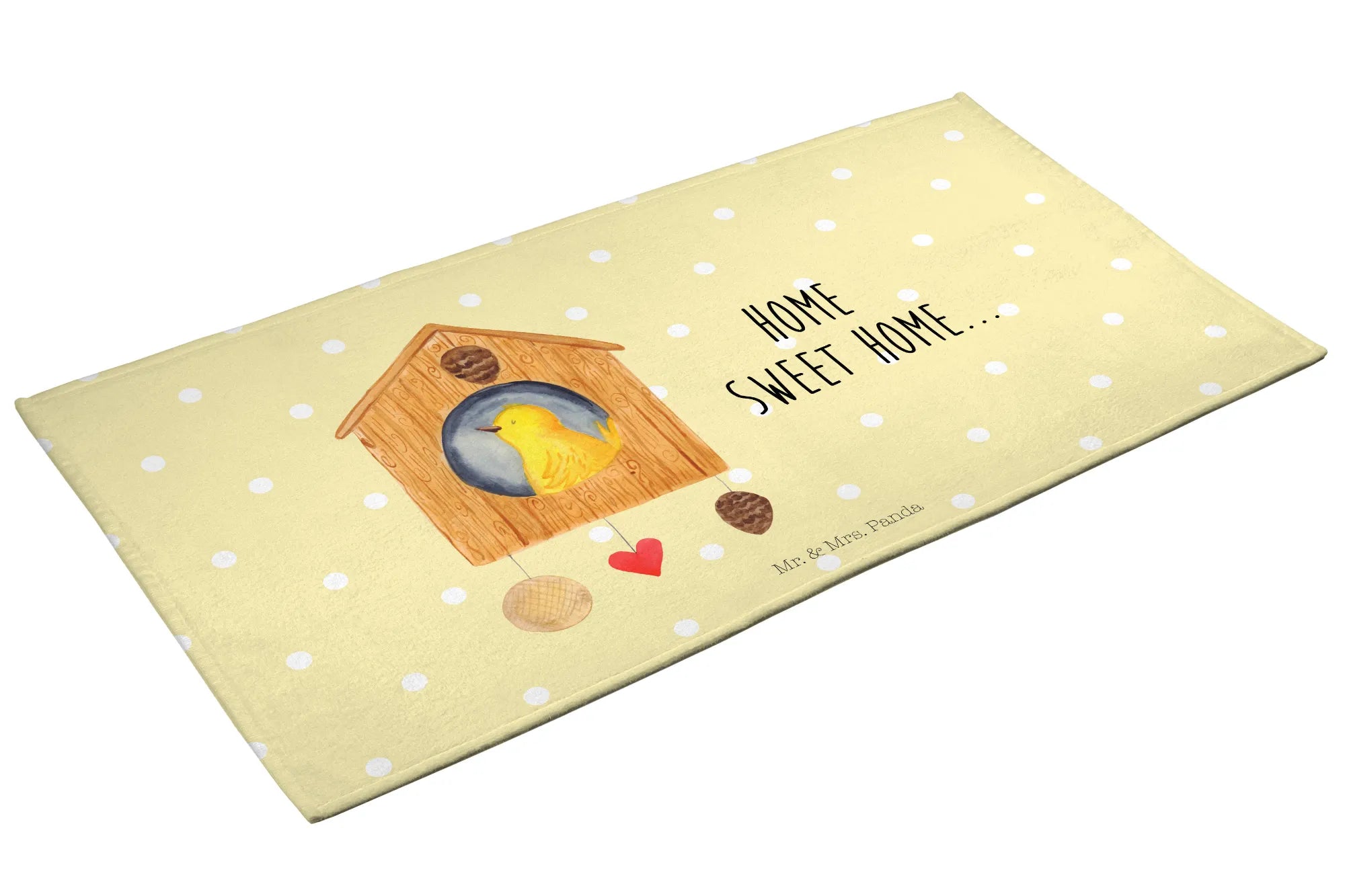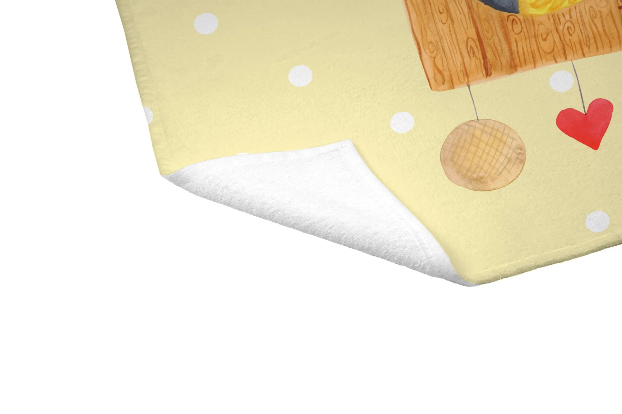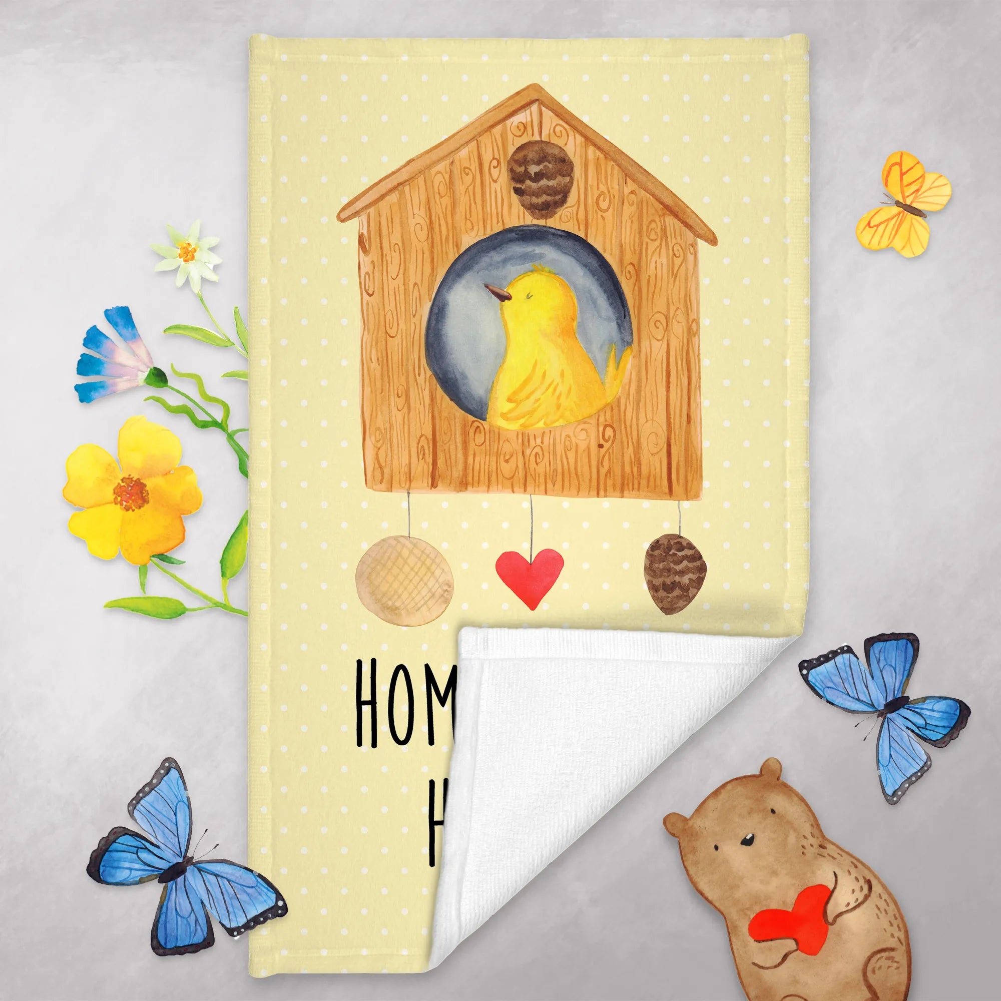 Das Gästehandtuch "Vogelhaus sweet Home" von Mr. & Mrs. Panda ist das perfekte Geschenk für jeden, der sein Zuhause lieben möchte! 🎁 Dieses flauschige Handtuch vereint Funktionalität mit einem charmanten Design, das dein Badezimmer aufheckt und deinen Gästen ein warmes Willkommen bietet. Das süße Vogelmotiv, das einen zufriedenen kleinen Vogel in seinem gelben Zuhause zeigt, strahlt Glück und Gemütlichkeit aus.