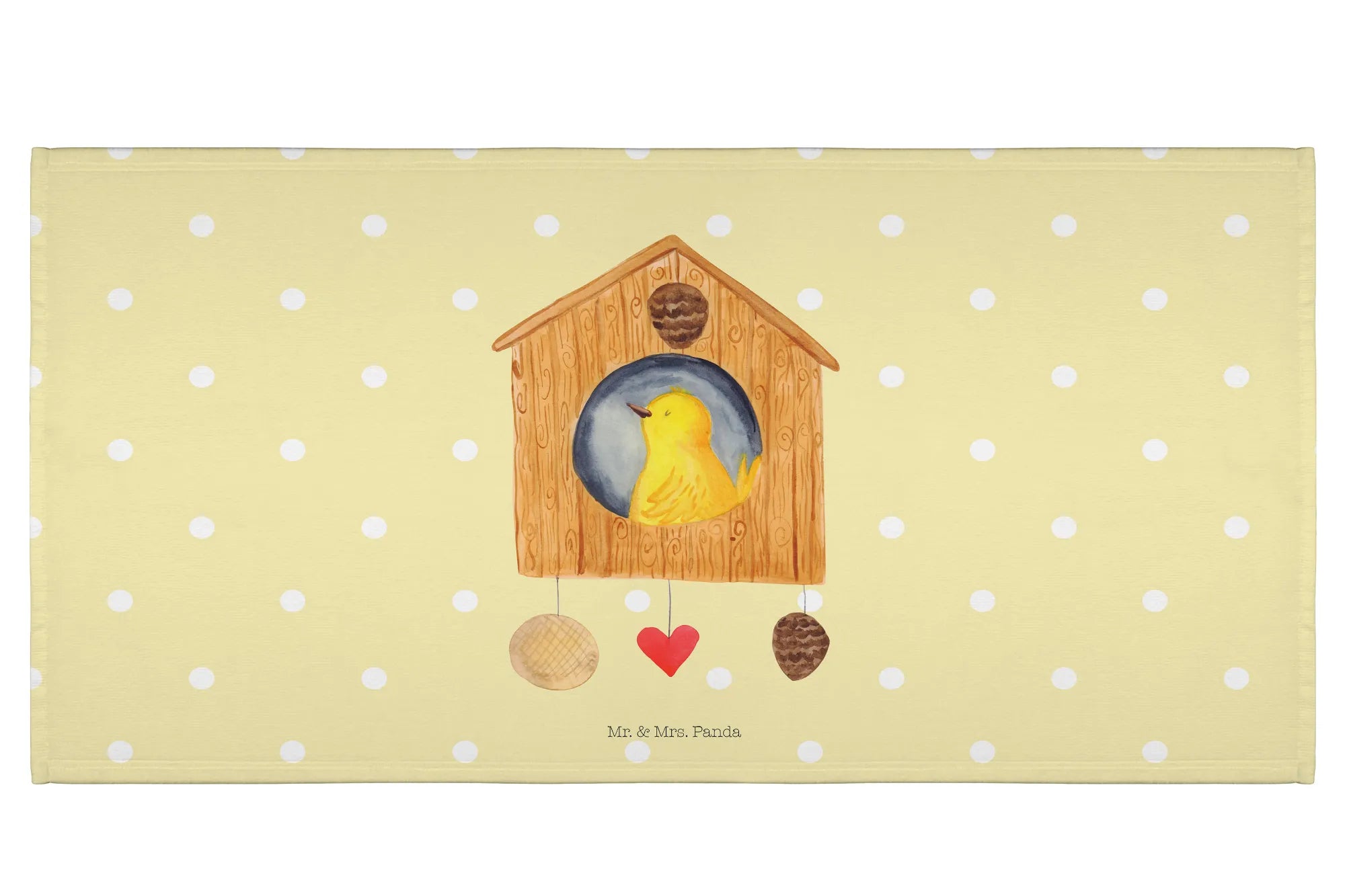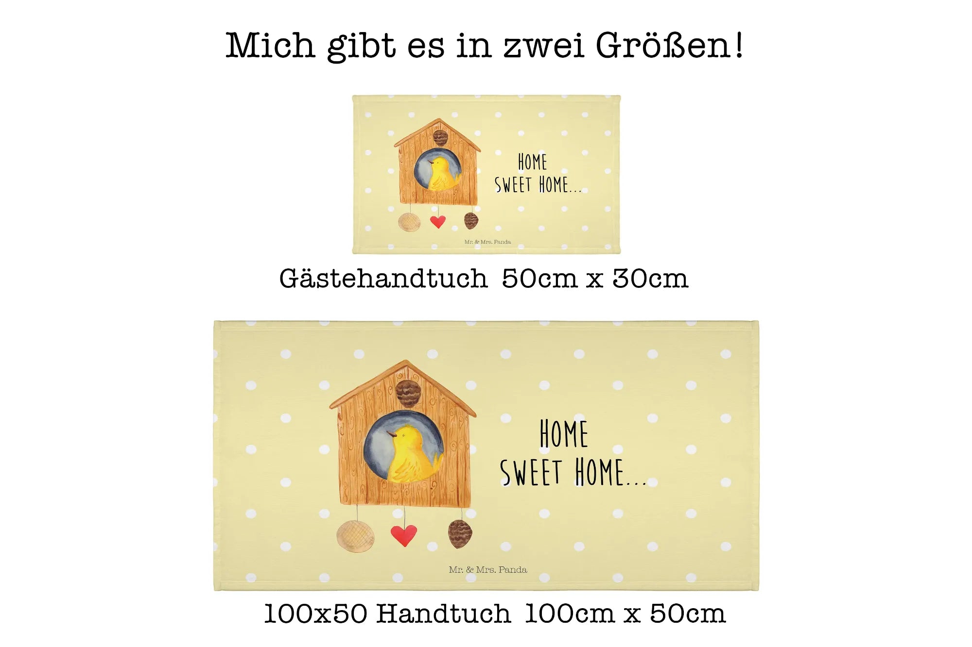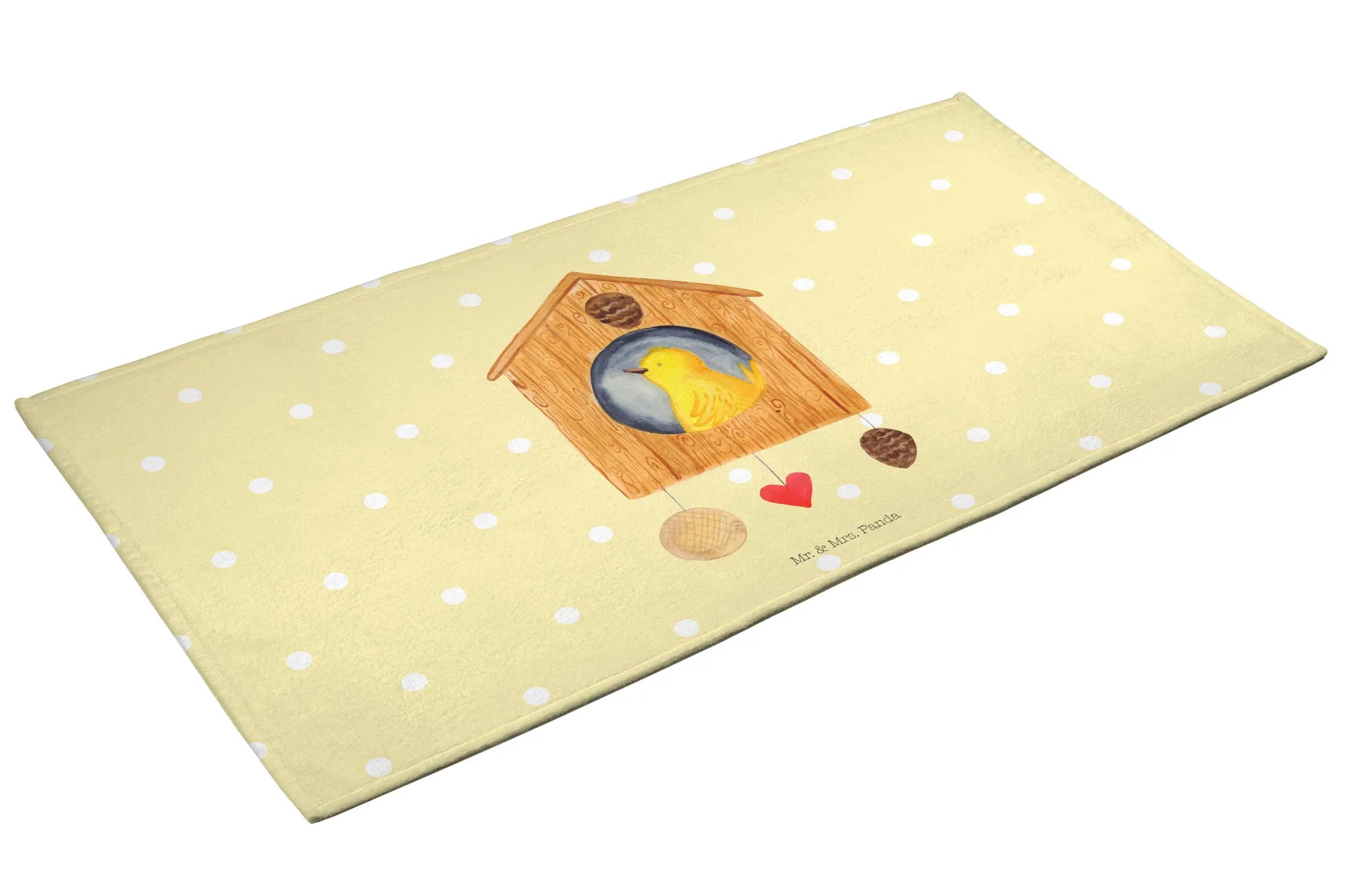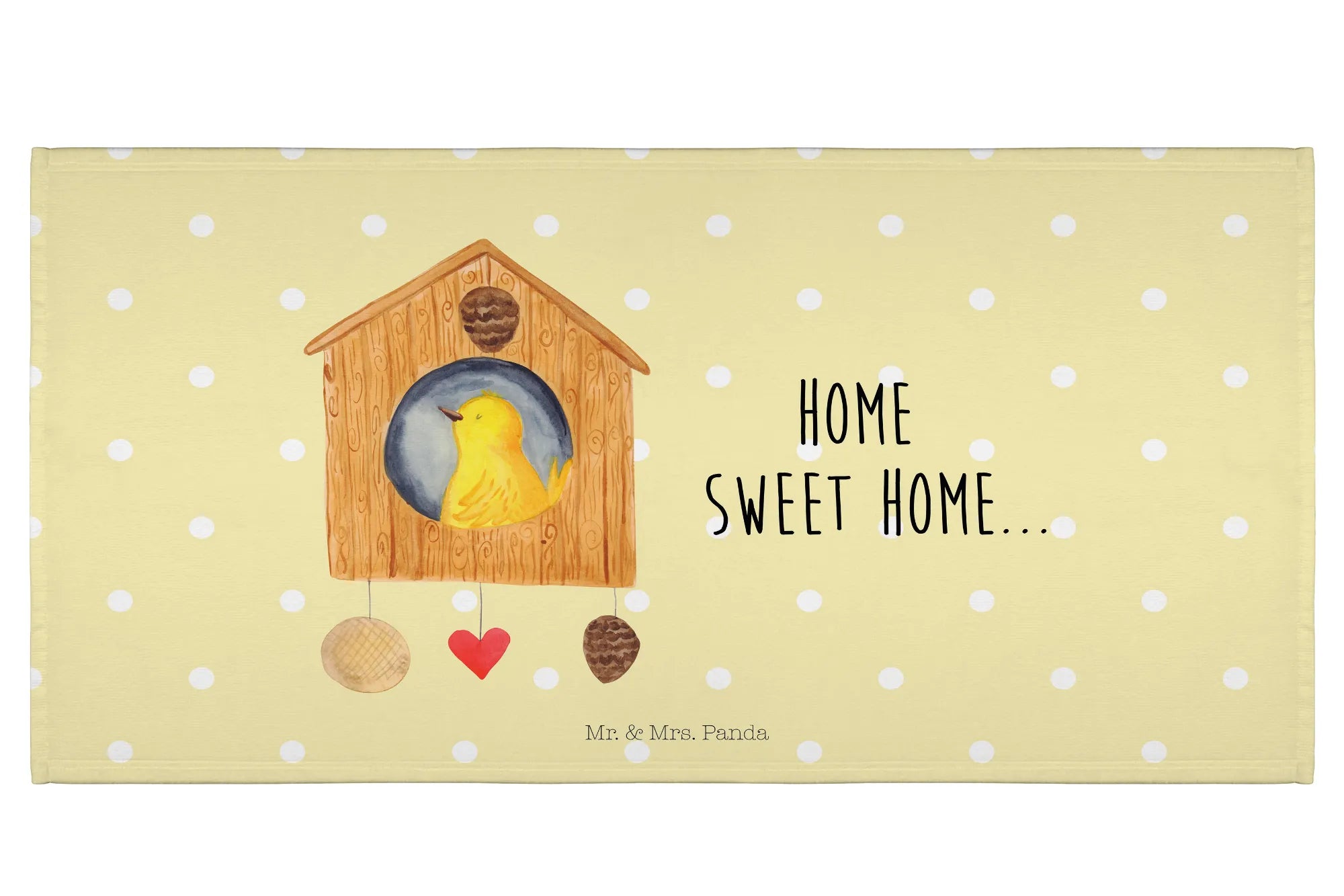 Das Gästehandtuch "Vogelhaus sweet Home" von Mr. & Mrs. Panda ist das perfekte Geschenk für jeden, der sein Zuhause lieben möchte! 🎁 Dieses flauschige Handtuch vereint Funktionalität mit einem charmanten Design, das dein Badezimmer aufheckt und deinen Gästen ein warmes Willkommen bietet. Das süße Vogelmotiv, das einen zufriedenen kleinen Vogel in seinem gelben Zuhause zeigt, strahlt Glück und Gemütlichkeit aus.