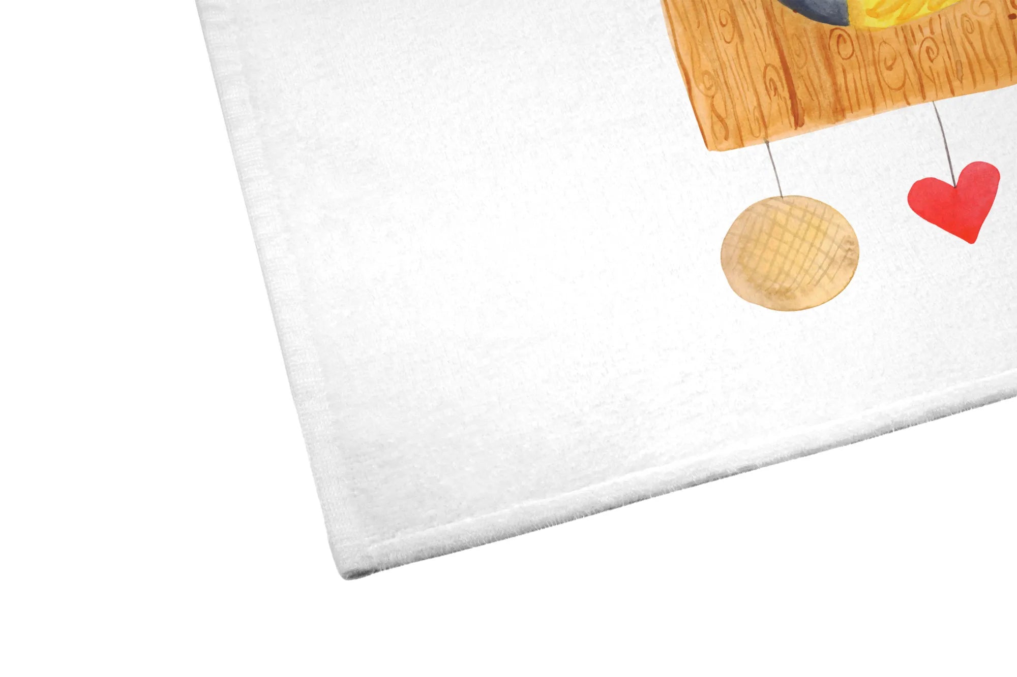 Entdecke das bezaubernde Gästehandtuch Vogelhaus sweet Home von Mr. & Mrs. Panda! Dieses flauschige Gästehandtuch ist nicht nur ein praktisches Accessoire für dein Badezimmer, sondern auch ein liebevolles Heimdeko-Element. Mit dem süßen Motiv eines kleinen gelben Vogels, der glücklich in seinem Vogelhaus sitzt, zaubert es sofort ein Lächeln auf dein Gesicht und sorgt für eine Wohlfühlatmosphäre in deinem Zuhause. Das Handtuch hat die perfekte Größe von 300 mm x 500 mm und passt toll in jedes Gästebad oder auch in dein Badezimmer.