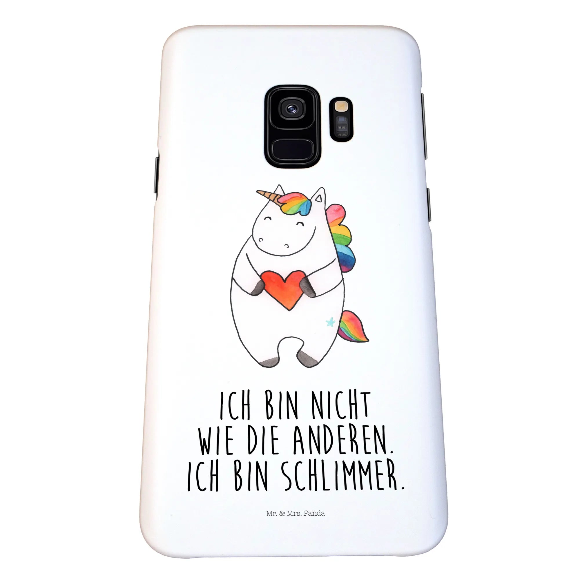 Entdecke die zauberhafte Samsung Galaxy S9 Handyhülle mit dem witzigen Einhorn Herz Motiv aus der Einhorn-Kollektion von Mr. & Mrs. Panda! Diese einzigartige Handyhülle ist nicht nur ein stylisches Accessoire, sondern bietet auch optimalen Schutz für dein Smartphone.