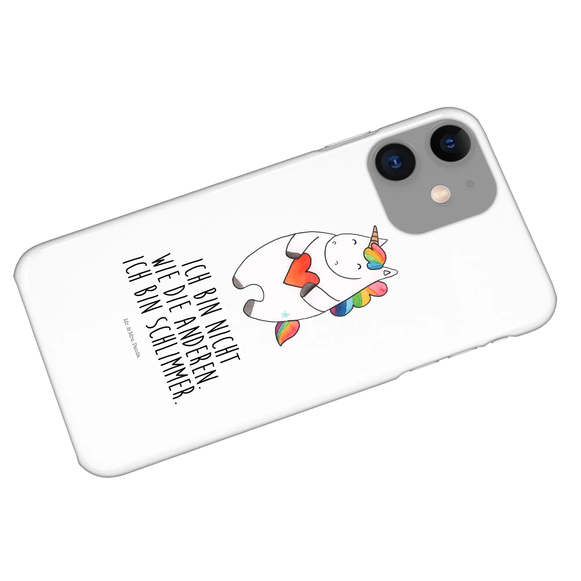 Suchst du eine iPhone 11 Pro Handyhülle, die frech, bunt und einfach zauberhaft ist? Unsere Einhorn Herz Hülle aus der Einhorn - Kollektion von Mr. & Mrs. Panda ist genau das: niedlich, witzig und ein bisschen unartig. Das Motiv zeigt ein liebenswertes Einhorn mit Herz und dem Spruch „Ich bin nicht wie die Anderen. Ich bin schlimmer.“ – perfekt für alle Unicorn-Fans und für die beste Freundin.