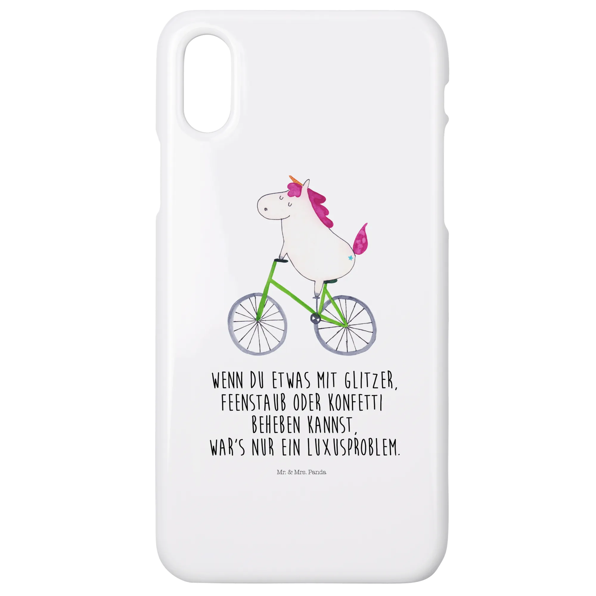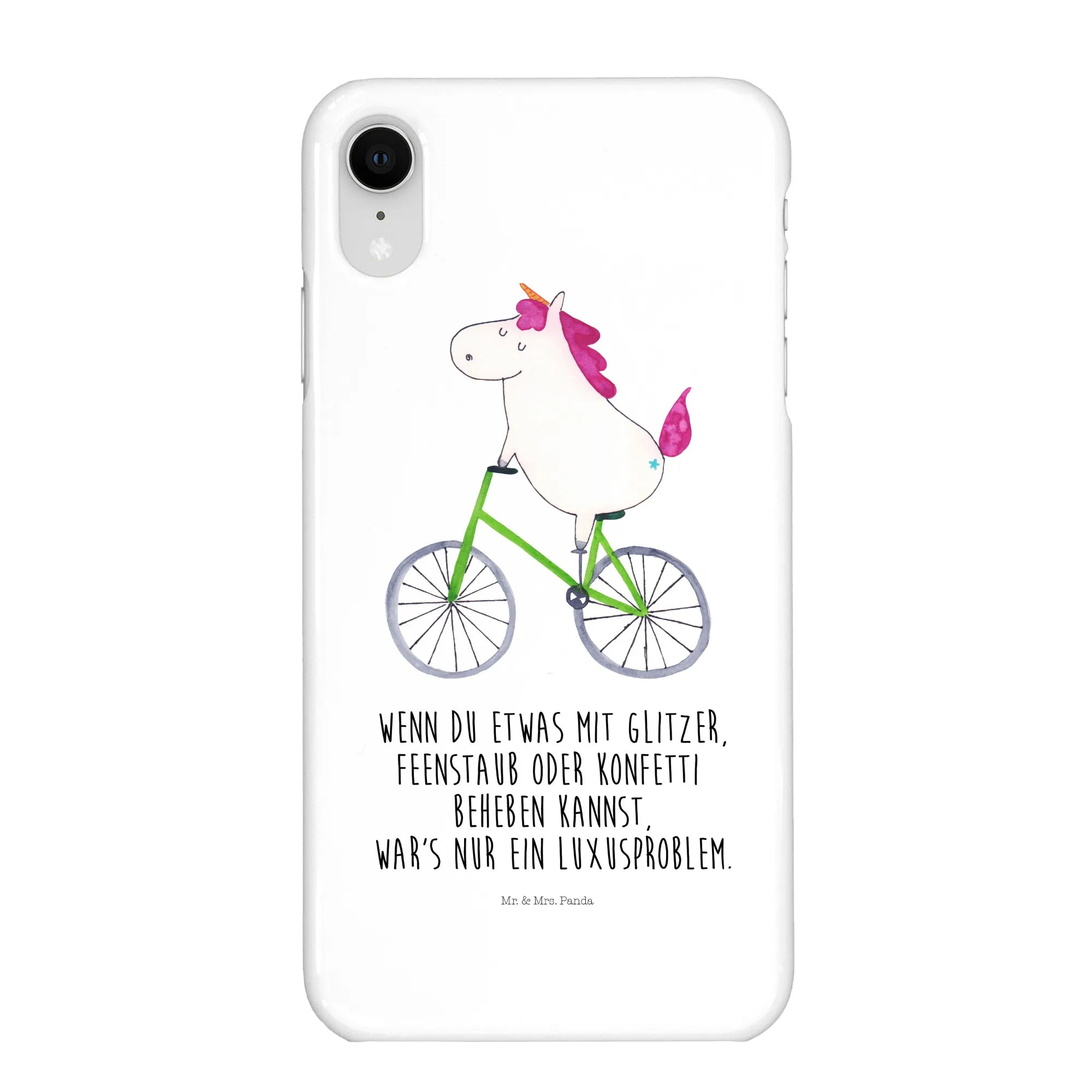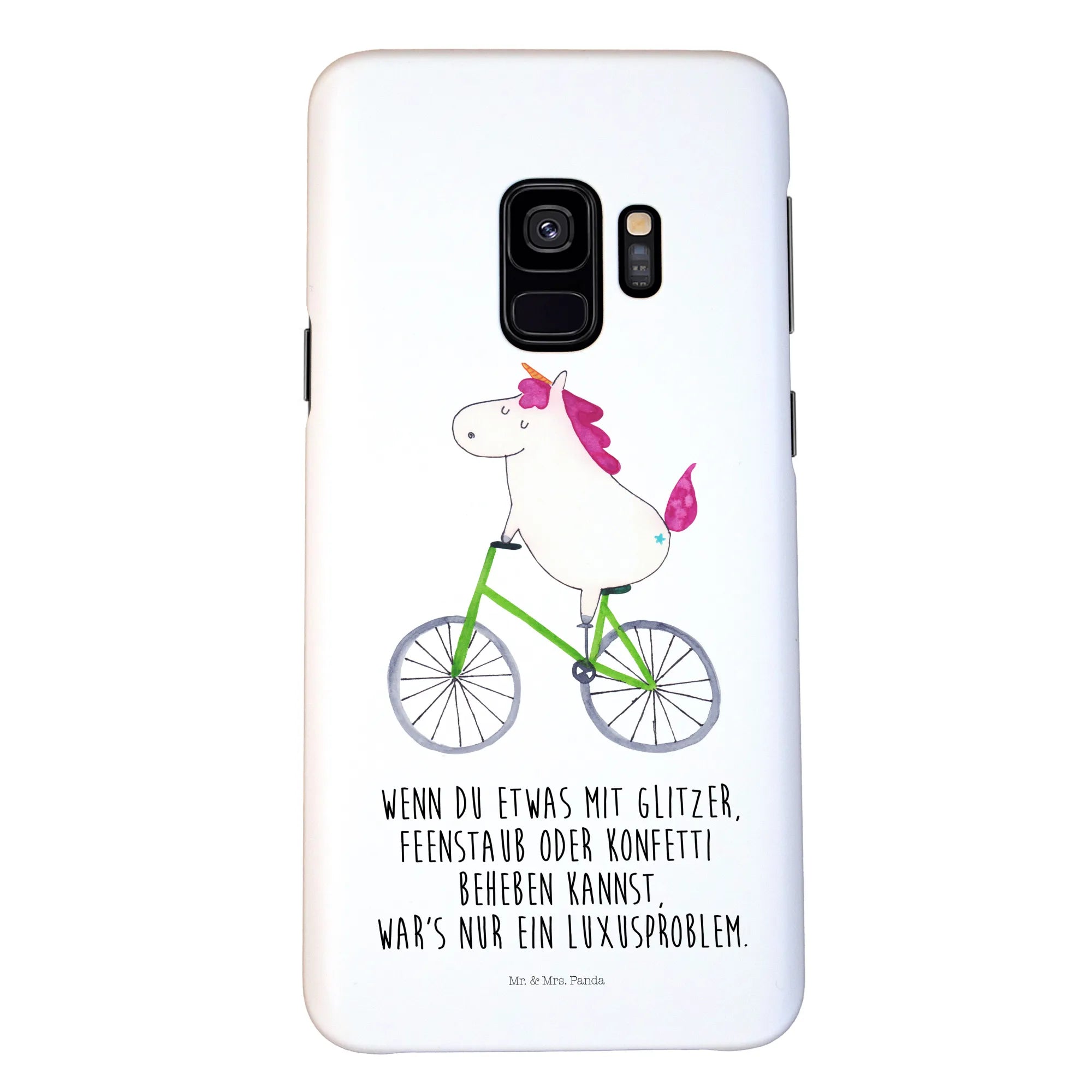 Das fröhliche Einhorn, das begeistert mit dem Fahrrad fährt, zaubert jedem ein Lächeln ins Gesicht. Die Einhorn Kollektion von Mr. & Mrs. Panda ist bekannt für ihre liebevollen und handgezeichneten Designs. Der Satz "Wenn du etwas mit Glitzer, Feenstaub oder Konfetti beheben kannst, war's nur ein Luxusproblem" ist nicht nur ein Spruch, sondern eine Lebensphilosophie, die wir alle gerne beherzigen möchten.