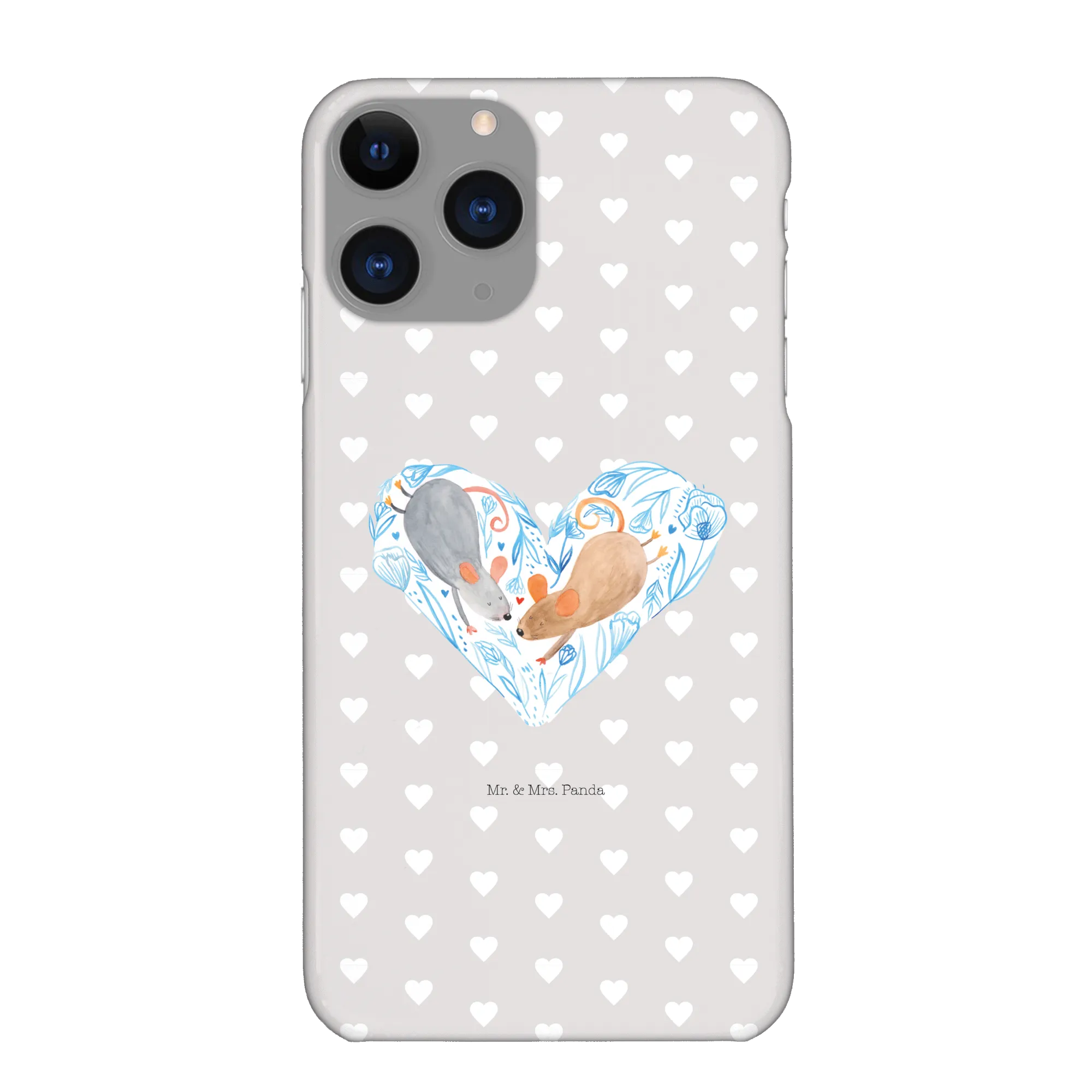 Das charmante Design zeigt zwei niedliche Mäuse, die in sanften Aquarellfarben ein Herz bilden – eine graue und eine beige Maus, deren Schwänze zusammen eine herzliche Form kreieren. Umgeben von floralen Elementen und kleinen Herzen strahlt die Handyhülle eine freundliche, romantische Atmosphäre aus.