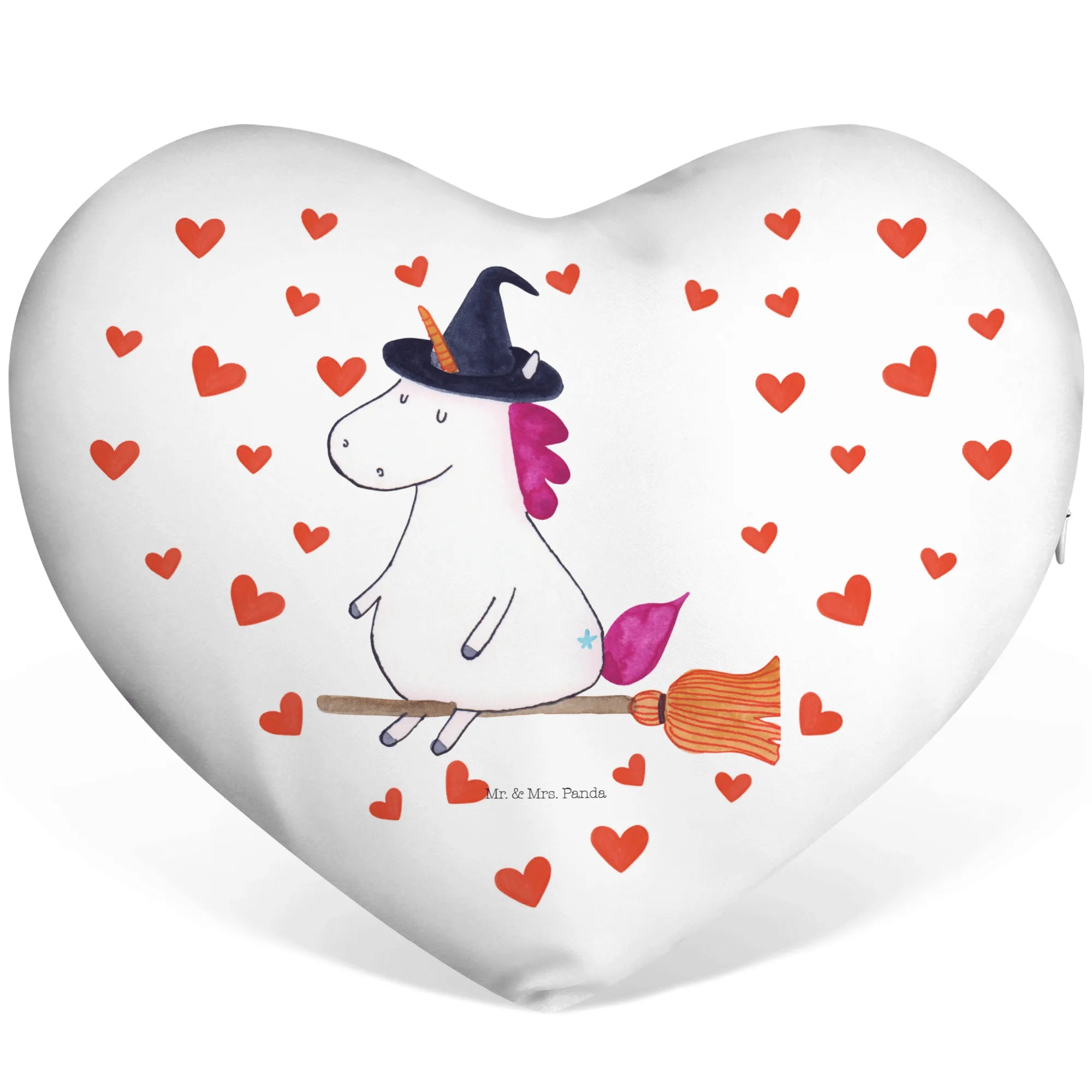Das kuschelige Herzkissen mit dem zauberhaften Motiv "Einhorn Hexe" aus der Einhorn-Kollektion von Mr. & Mrs. Panda ist das perfekte Geschenk für alle, die das Besondere lieben!
