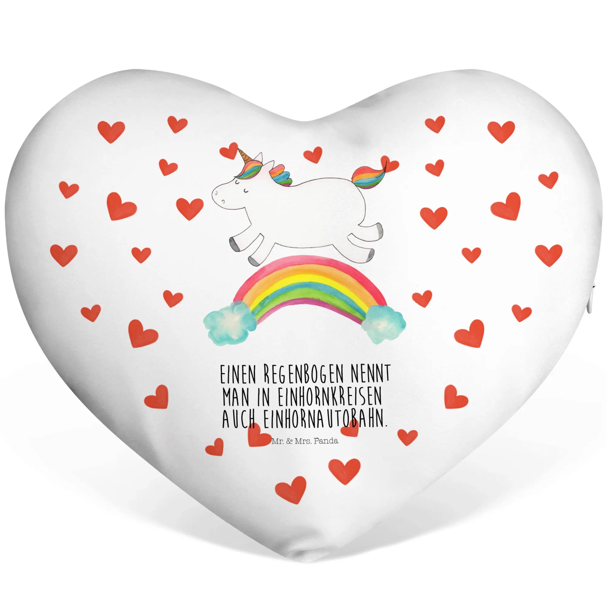 Das wundervolle Herzkissen Einhorn Regenbogen von Mr. & Mrs. Panda ist nicht nur ein traumhaftes Dekokissen, sondern auch der perfekte Begleiter für besondere Momente. Mit seiner kuschelig-weichen Mikrofaser-Oberfläche und einem liebevoll handgezeichneten Motiv eines fröhlichen Einhorns, das über einen Regenbogen flitzt, zaubert es jedem ein Lächeln ins Gesicht. Der Slogan „Einen Regenbogen nennt man in Einhornkreisen auch Einhornautobahn“ macht es zu einem witzigen Geschenk für Freunde und Familie, die die zauberhafte Welt der Einhörner lieben. 💖