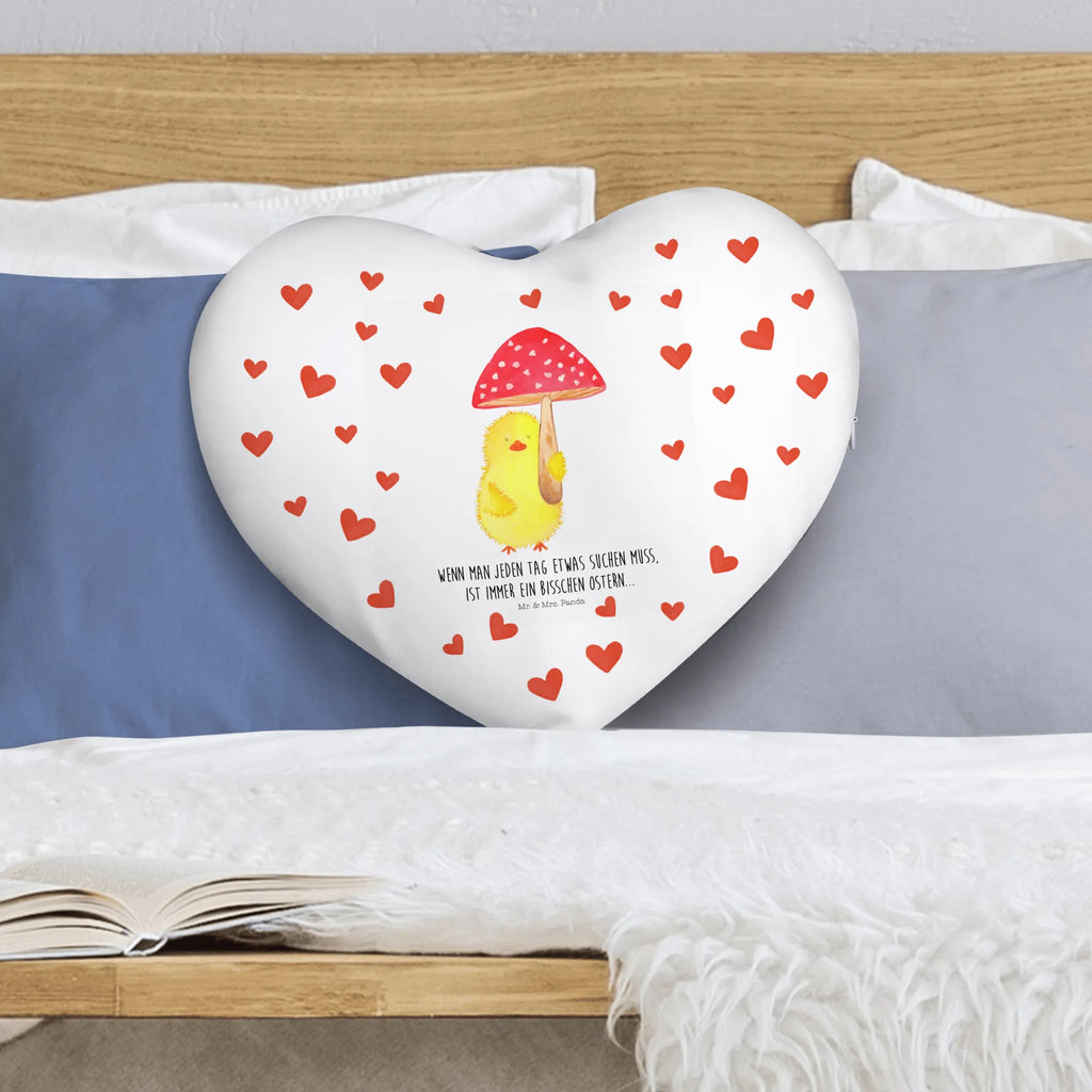 Das Herzkissen mit dem süßen Küken und Fliegenpilz aus der Ostern-Kollektion von Mr. & Mrs. Panda ist das perfekte Geschenk für jedes Kind und jeden Erwachsenen, der die fröhliche Osterzeit liebt!