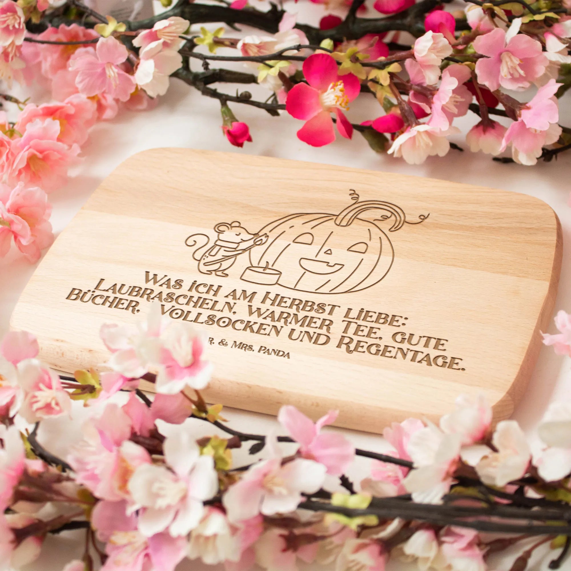 Holzbrett Gravur Kürbis Maus - mit Spruch