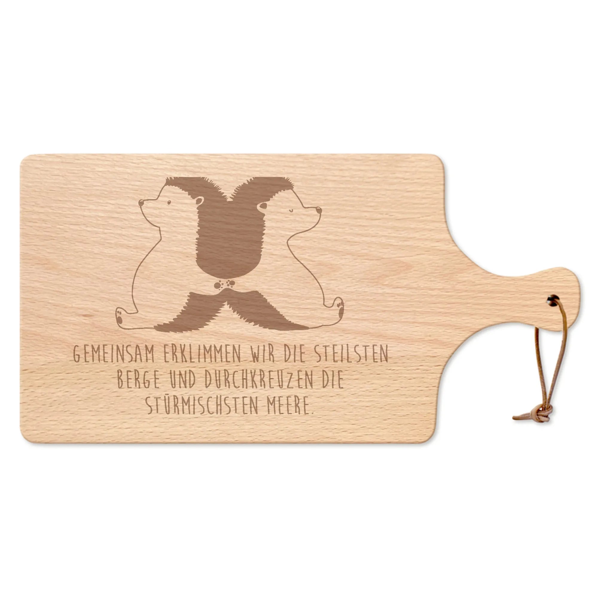 🐼 Solides Buchen-Schneidebrett mit Griff, Lasergravur und süßen Motiven von Mr. & Mrs. Panda.