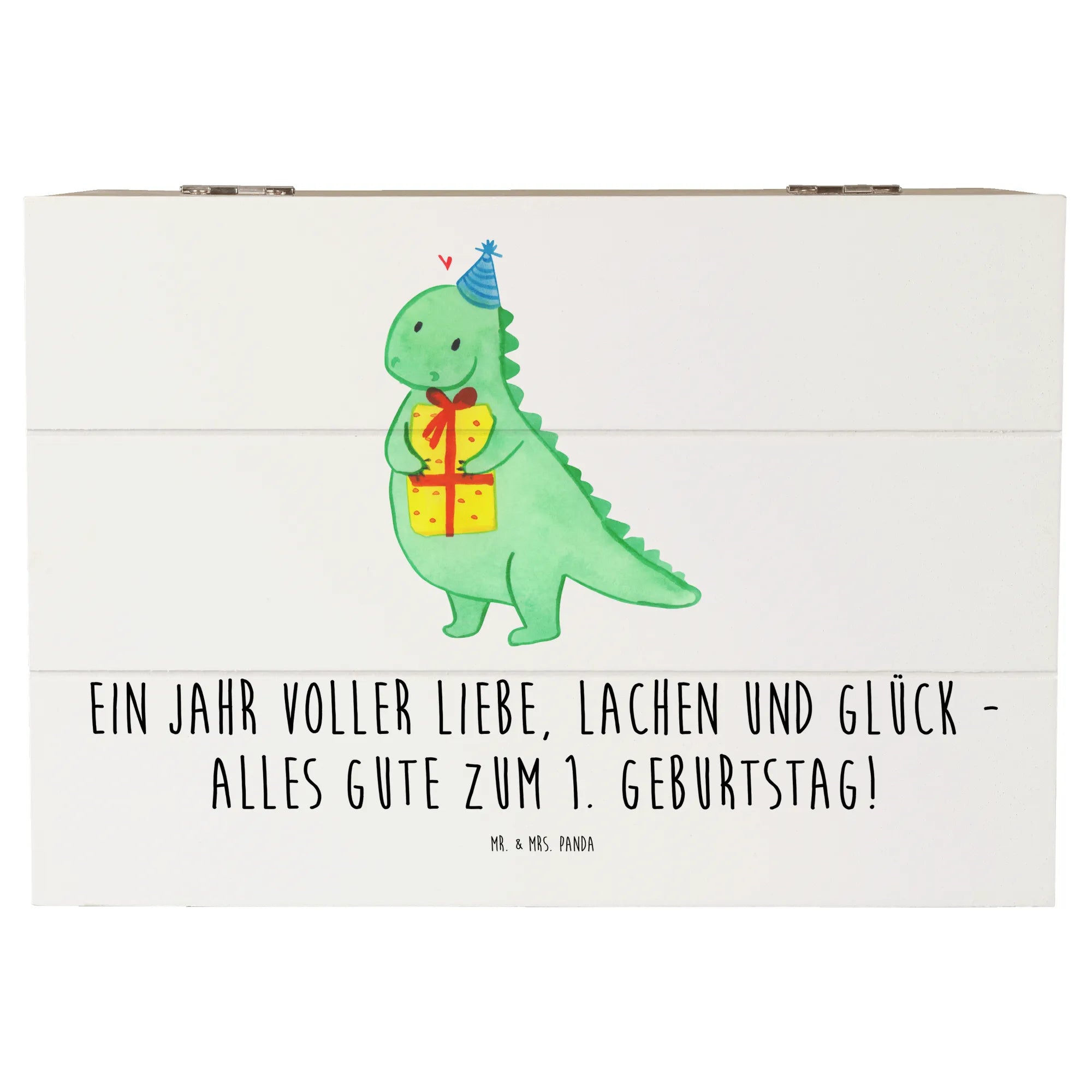 Die wunderschöne Holzkiste von Mr. & Mrs. Panda ist das perfekte Geschenk zum ersten Geburtstag! Mit ihrem liebevollen Motiv "Ein Jahr voller Liebe, Lachen und Glück - alles Gute zum 1. Geburtstag!" kommt sie aus unserer besonderen Kollektion "Geburtstag Alter" und ist besonders für fröhliche Feiern geeignet.
