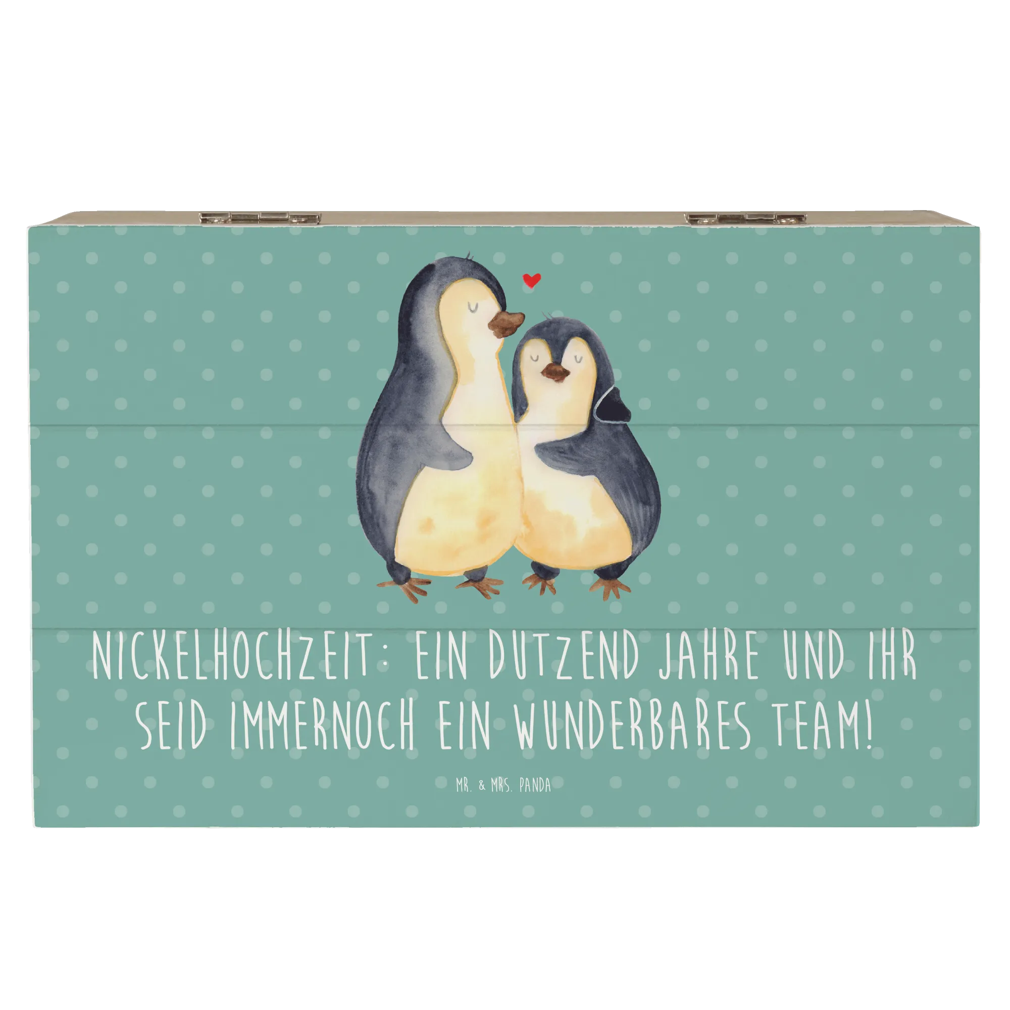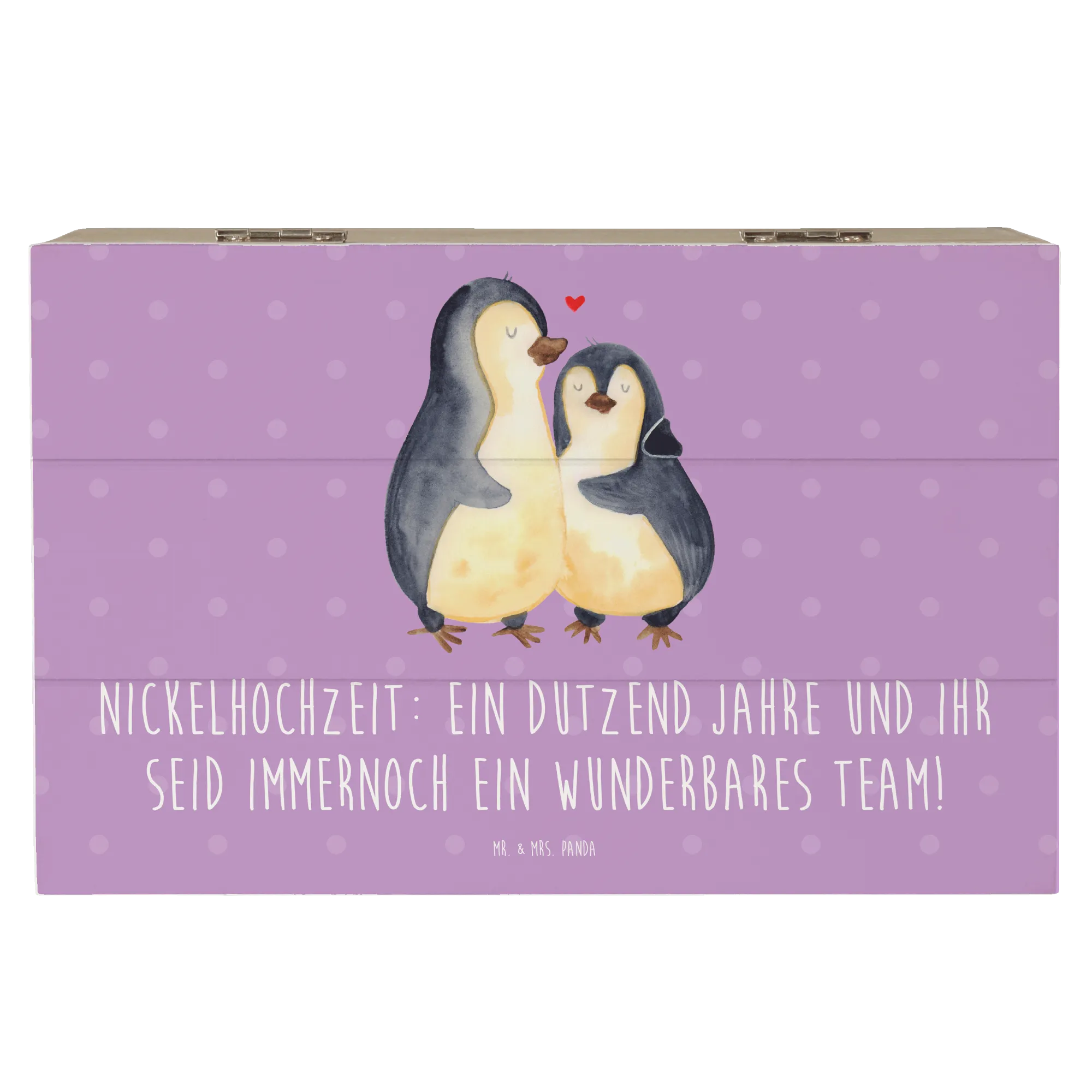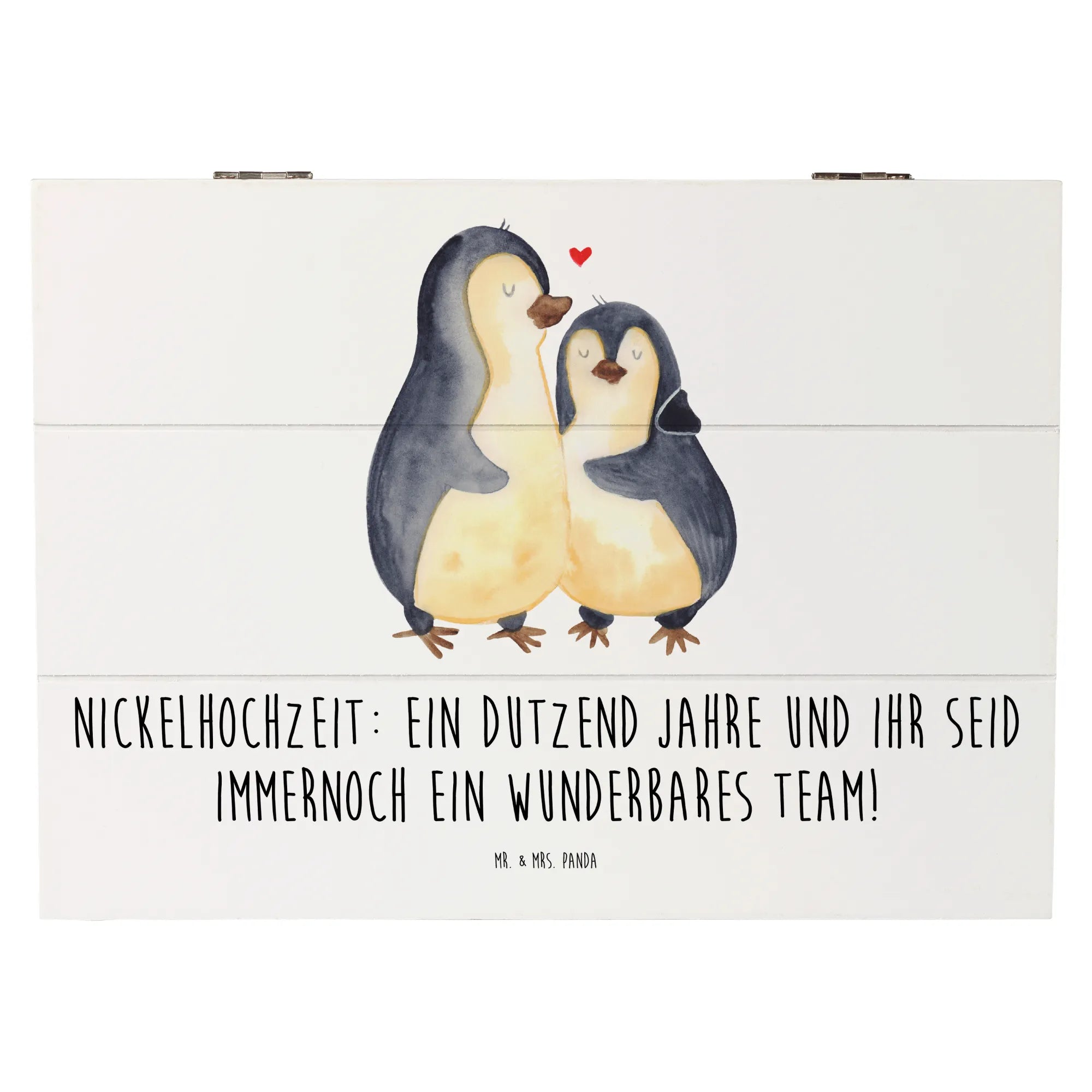 Du suchst nach dem perfekten Geschenk zum 12. Hochzeitstag? Unsere Holzkiste mit dem liebevollen Motiv "Nickelhochzeit: Ein Dutzend Jahre und ihr seid immernoch ein wunderbares Team!" von Mr. & Mrs. Panda ist genau das richtige für dich! Diese wunderschöne Holzkiste ist nicht nur ein idealer Aufbewahrungsort für all eure gemeinsamen Erinnerungen, sondern auch eine ganz besondere Dekokiste für jeden festlichen Anlass.