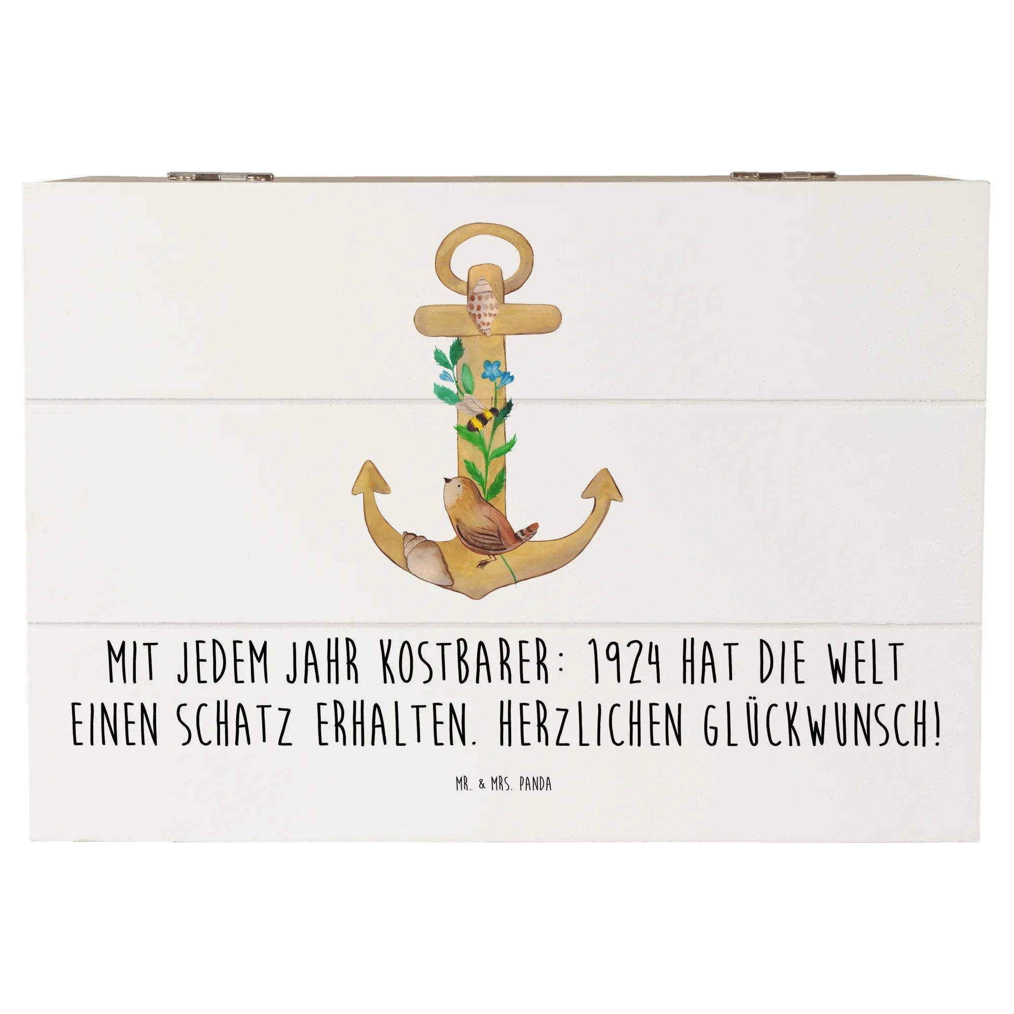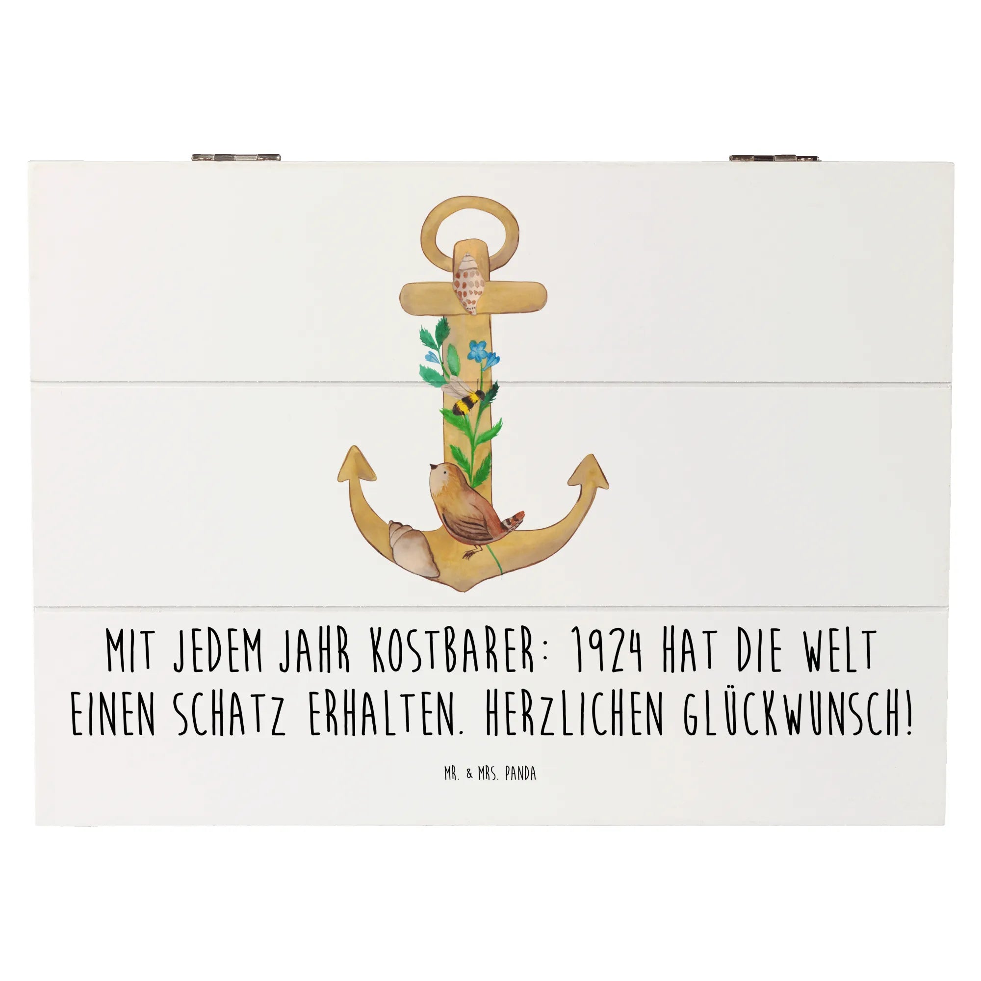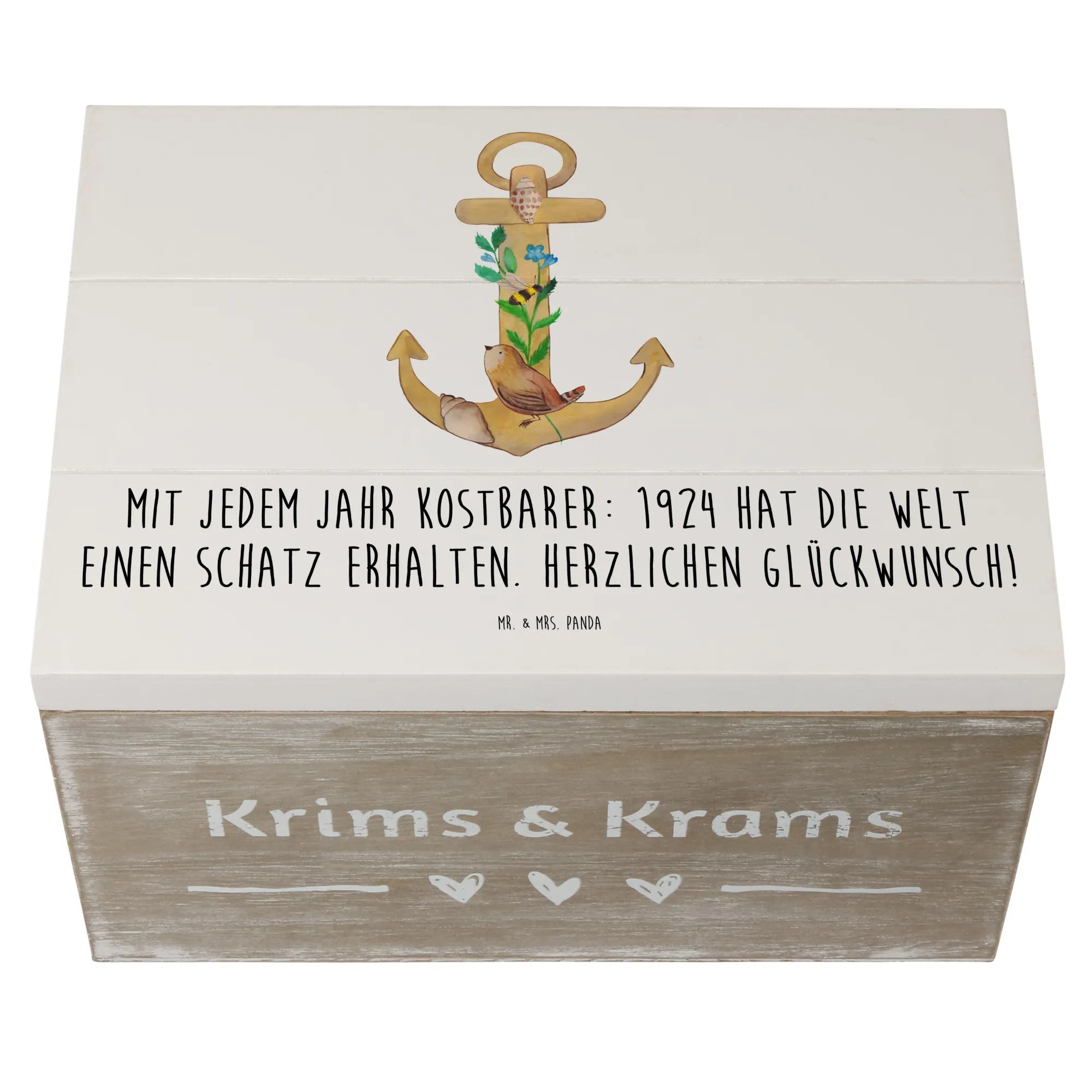 Entdecke die zauberhafte Holzkiste von Mr. & Mrs. Panda, die das perfekte Geschenk für jeden Geburtstag ist! Diese wunderschöne Kiste, bedruckt mit dem liebevollen Motiv "Mit jedem Jahr kostbarer: 1924 hat die Welt einen Schatz erhalten. Herzlichen Glückwunsch!", ist ideal, um die wertvollen Erinnerungen eines besonderen Lebensjahres zu bewahren.