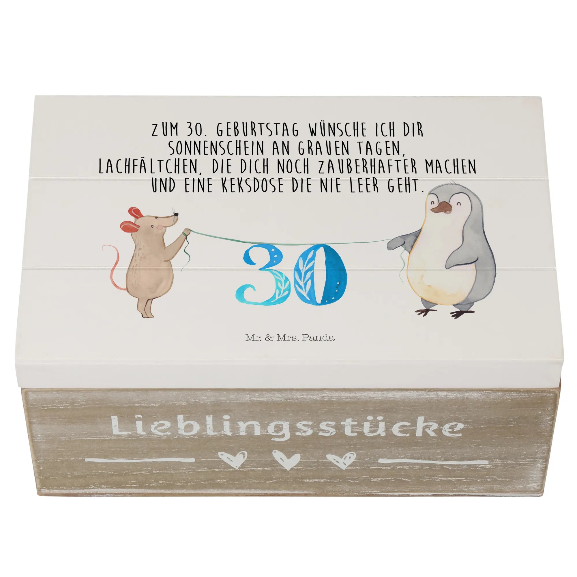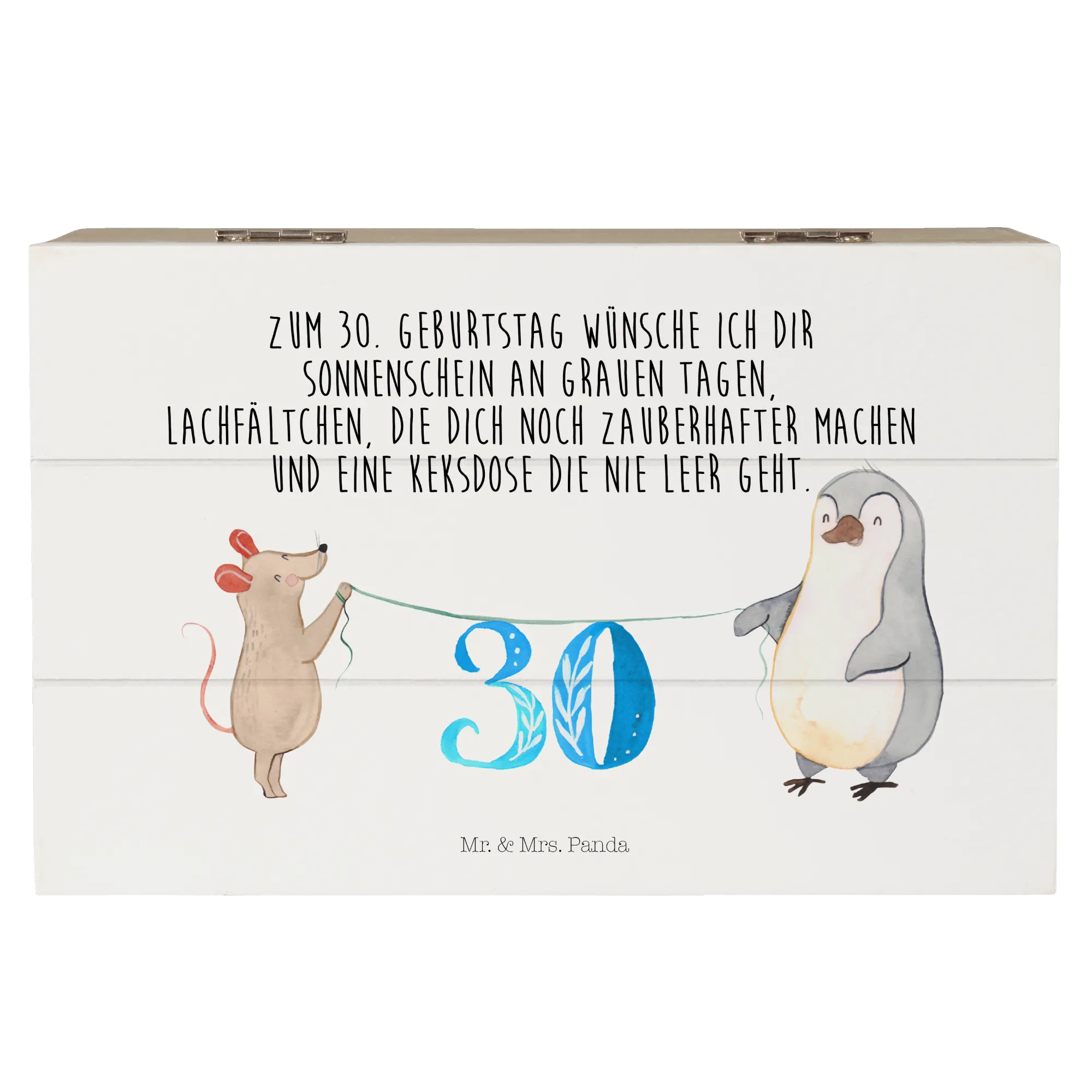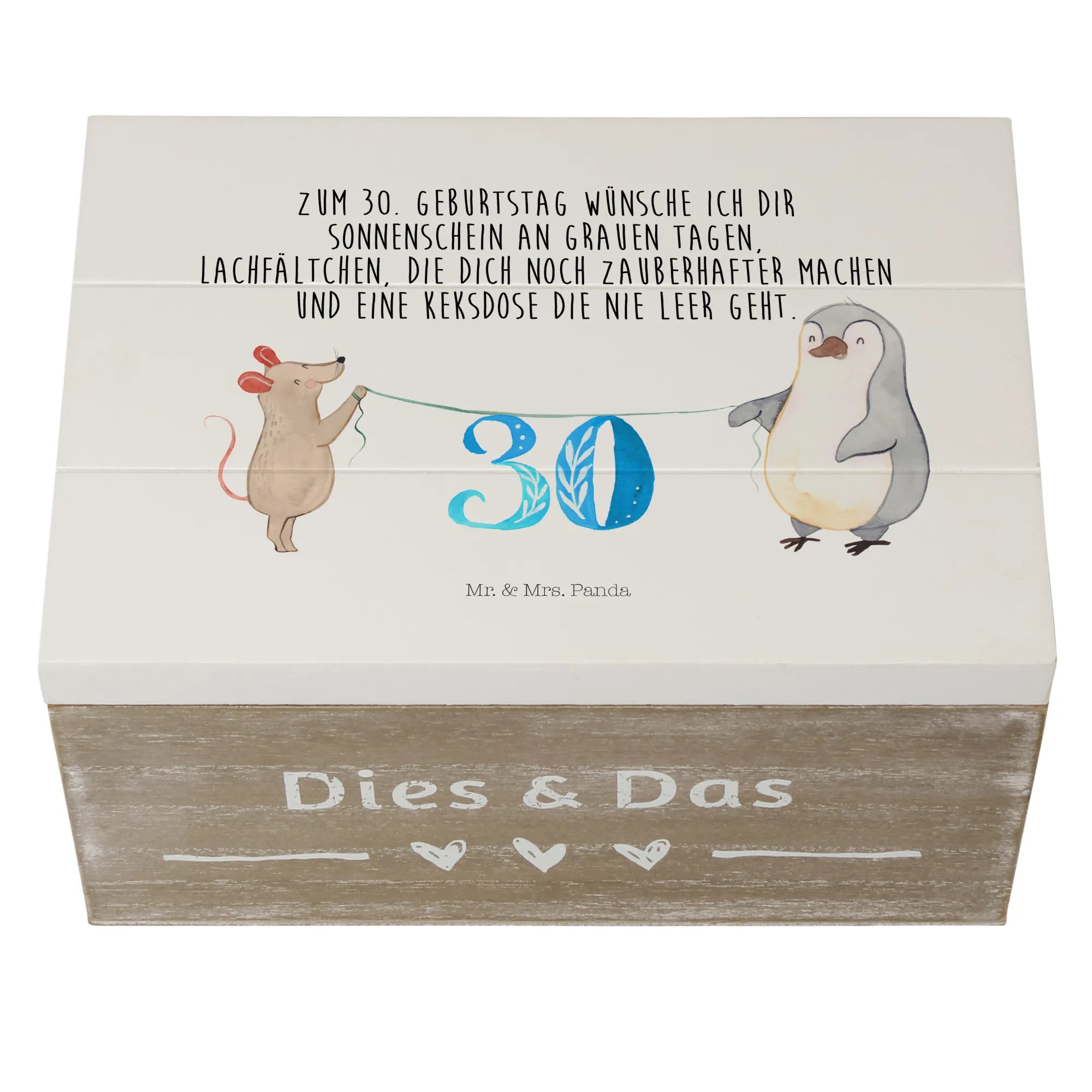 Die wunderschöne Holzkiste von Mr. & Mrs. Panda, bedruckt mit dem niedlichen Motiv "30. Geburtstag Maus Pinguin", ist das ideale Geschenk für alle, die ihren 30. Geburtstag gebührend feiern möchten!