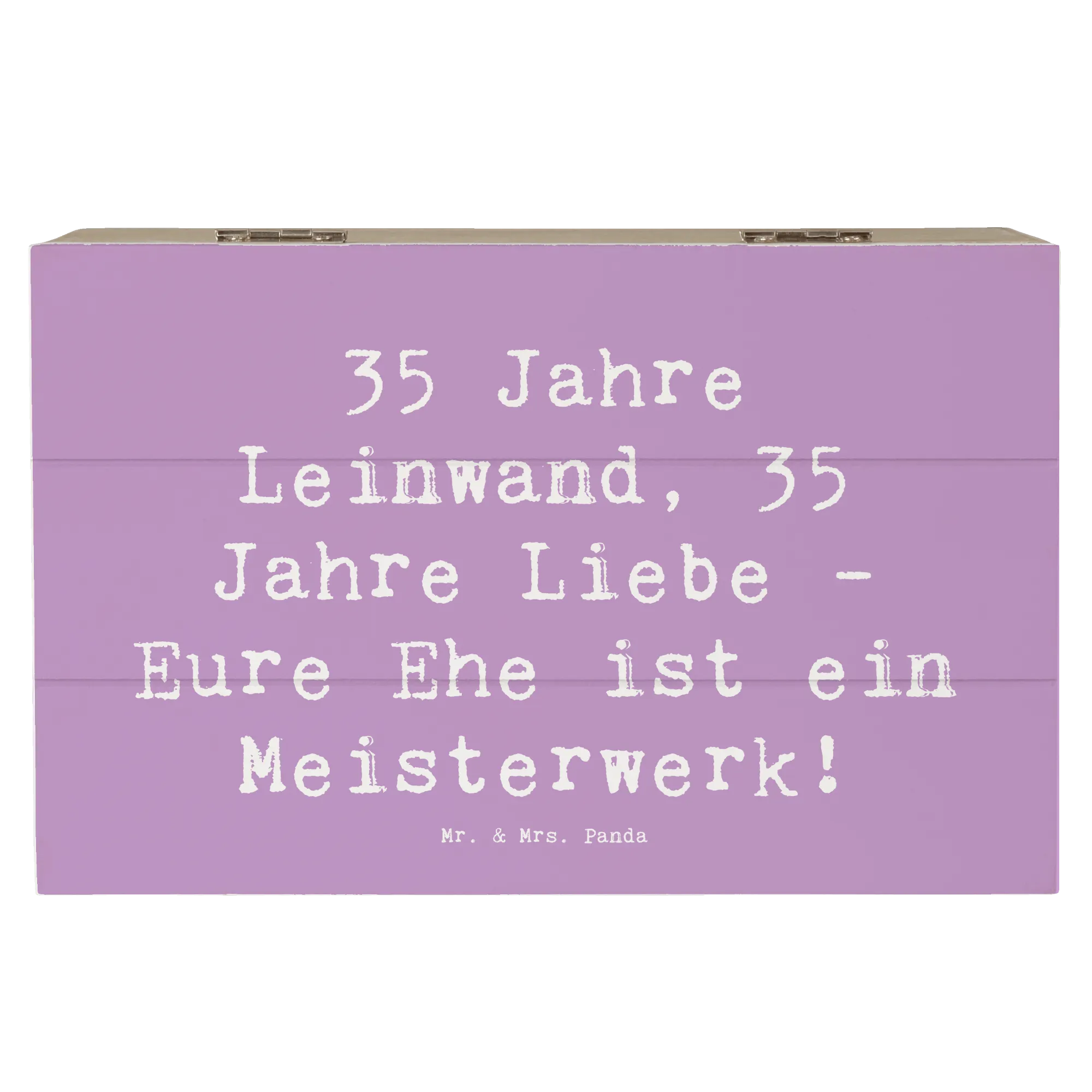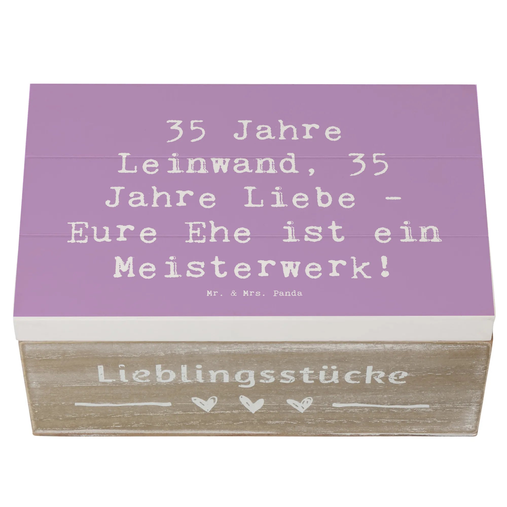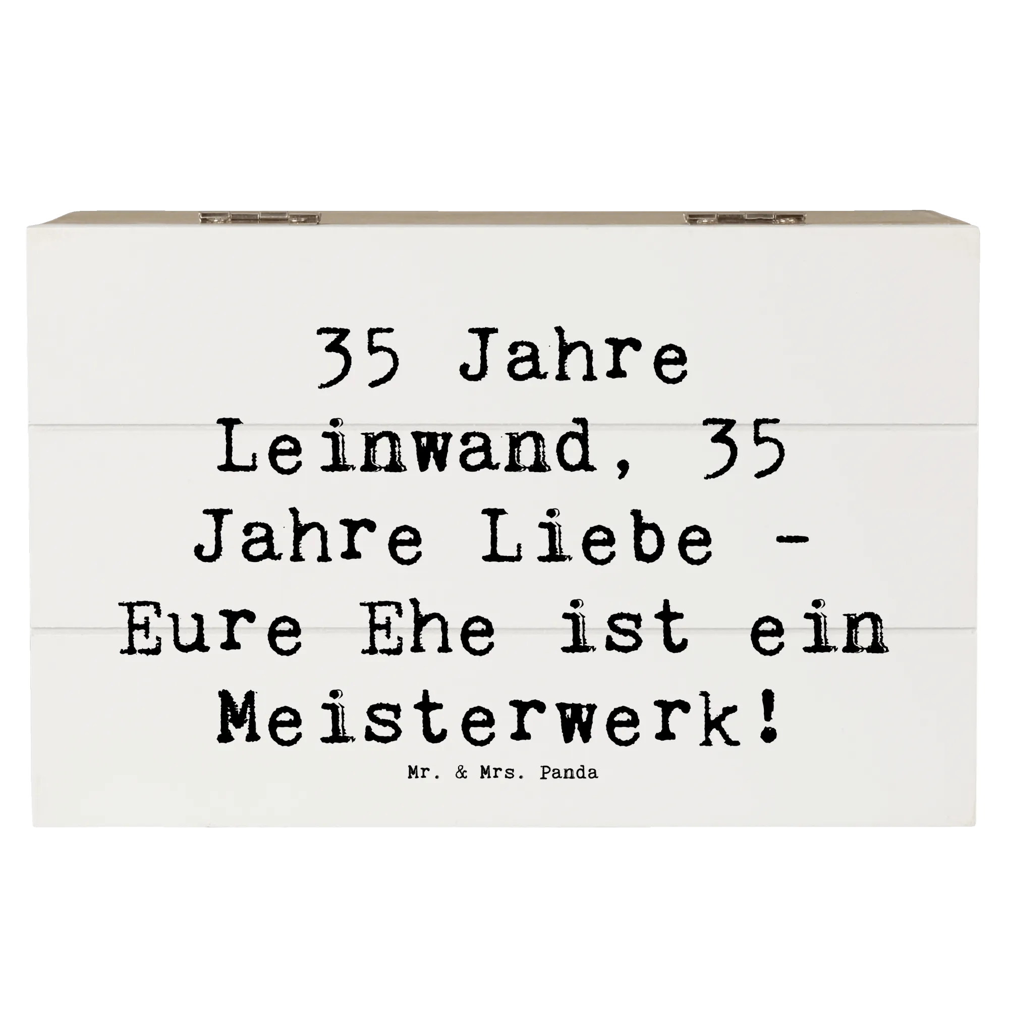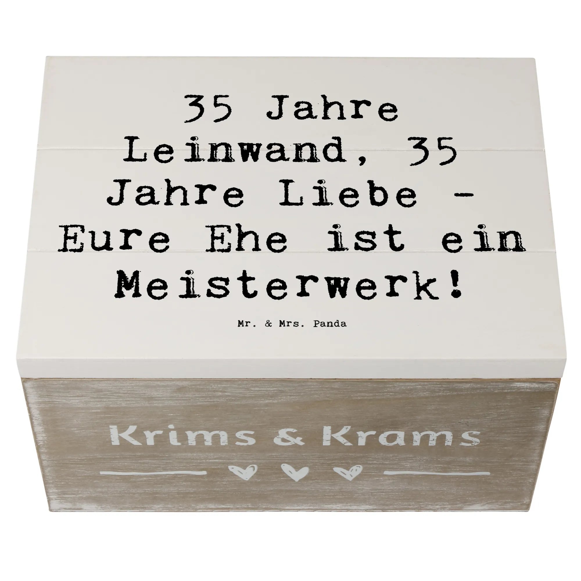 Entdecke die wundervolle Holzkiste von Mr. & Mrs. Panda, die perfekt für den 35. Hochzeitstag geeignet ist! Diese zauberhafte Erinnerungskiste mit dem liebevollen Motiv "35 Jahre Leinwand, 35 Jahre Liebe - Eure Ehe ist ein Meisterwerk!" bietet dir einen besonderen Platz für all eure wertvollen Schätze und Erinnerungen, die ihr im Laufe der Jahre gesammelt habt.