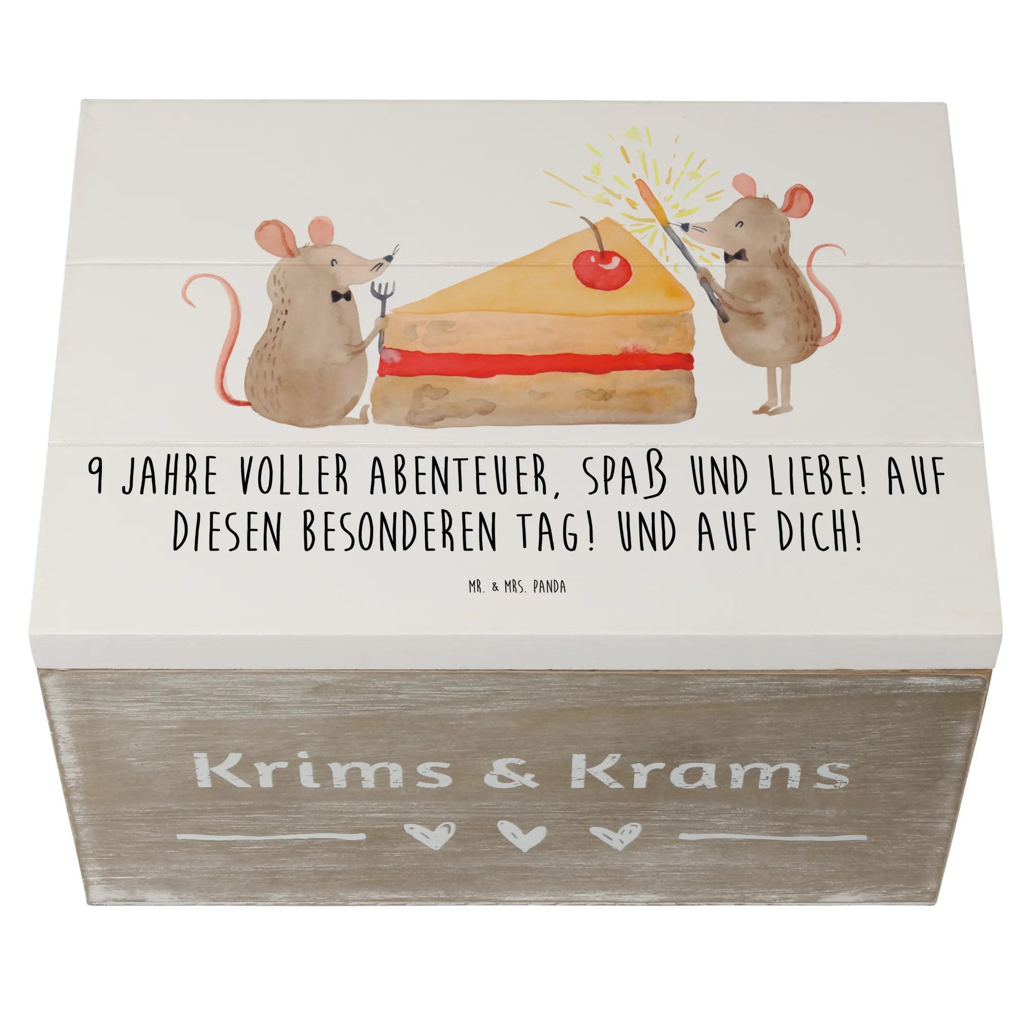 Die wunderschöne Holzkiste von Mr. & Mrs. Panda ist das perfekte Geschenk für den 9. Geburtstag! 🎉 Mit dem liebevoll gestalteten Motiv '9 Jahre voller Abenteuer, Spaß und Liebe! Auf diesen besonderen Tag! Und auf dich!' wird diese Kiste zu einem ganz besonderen Erinnerungsstück.
