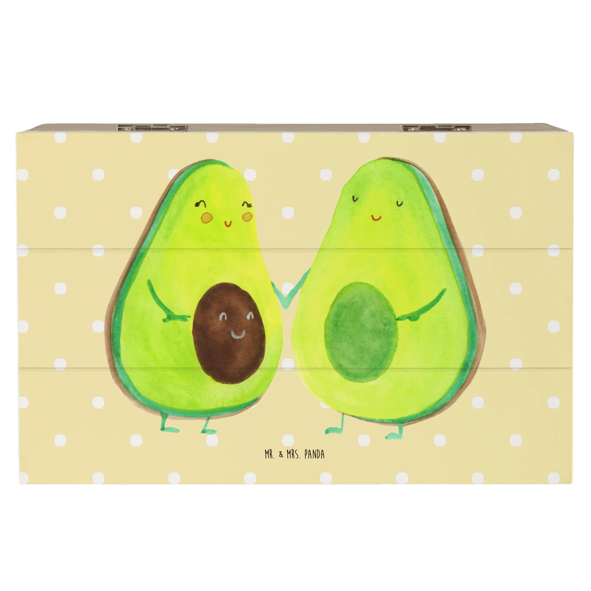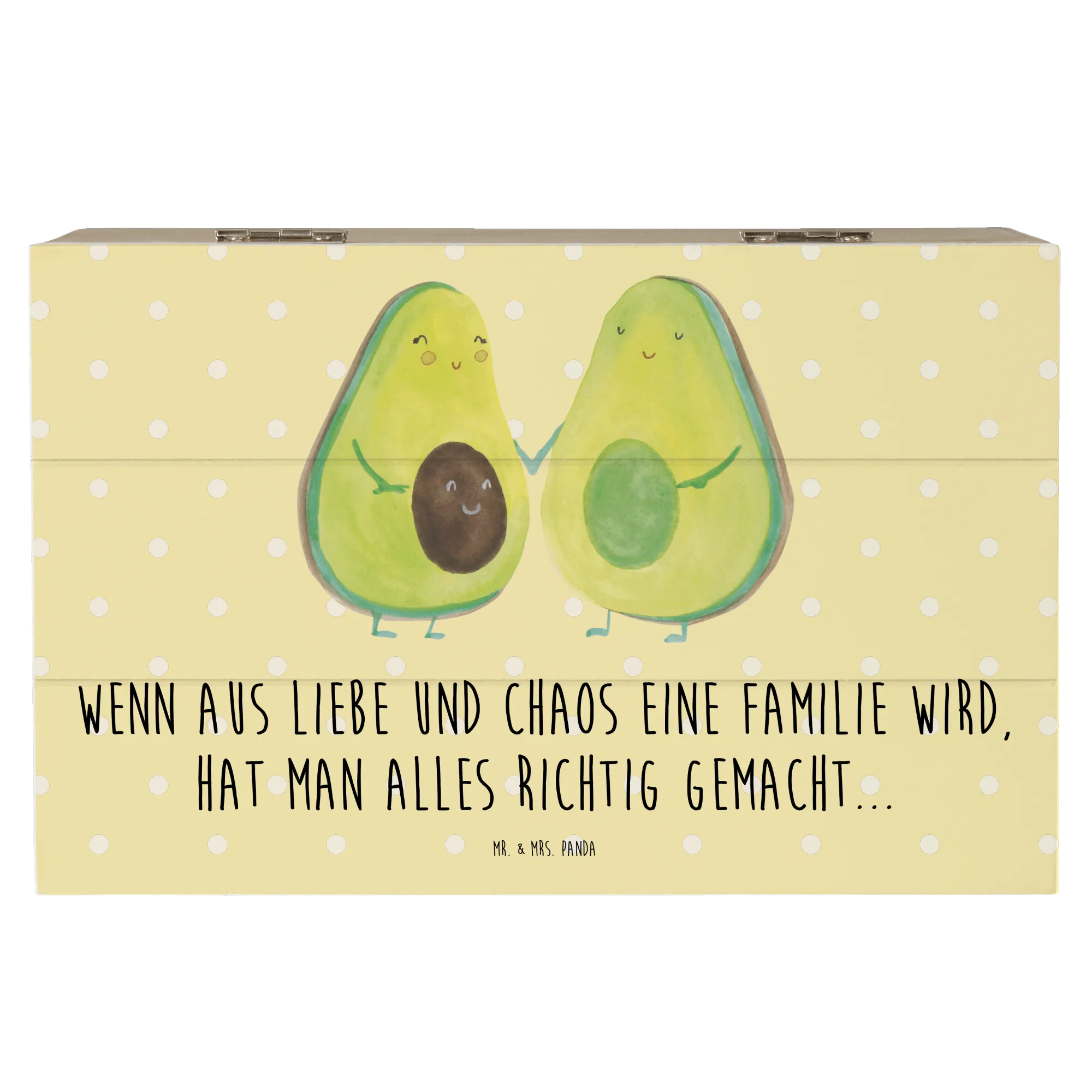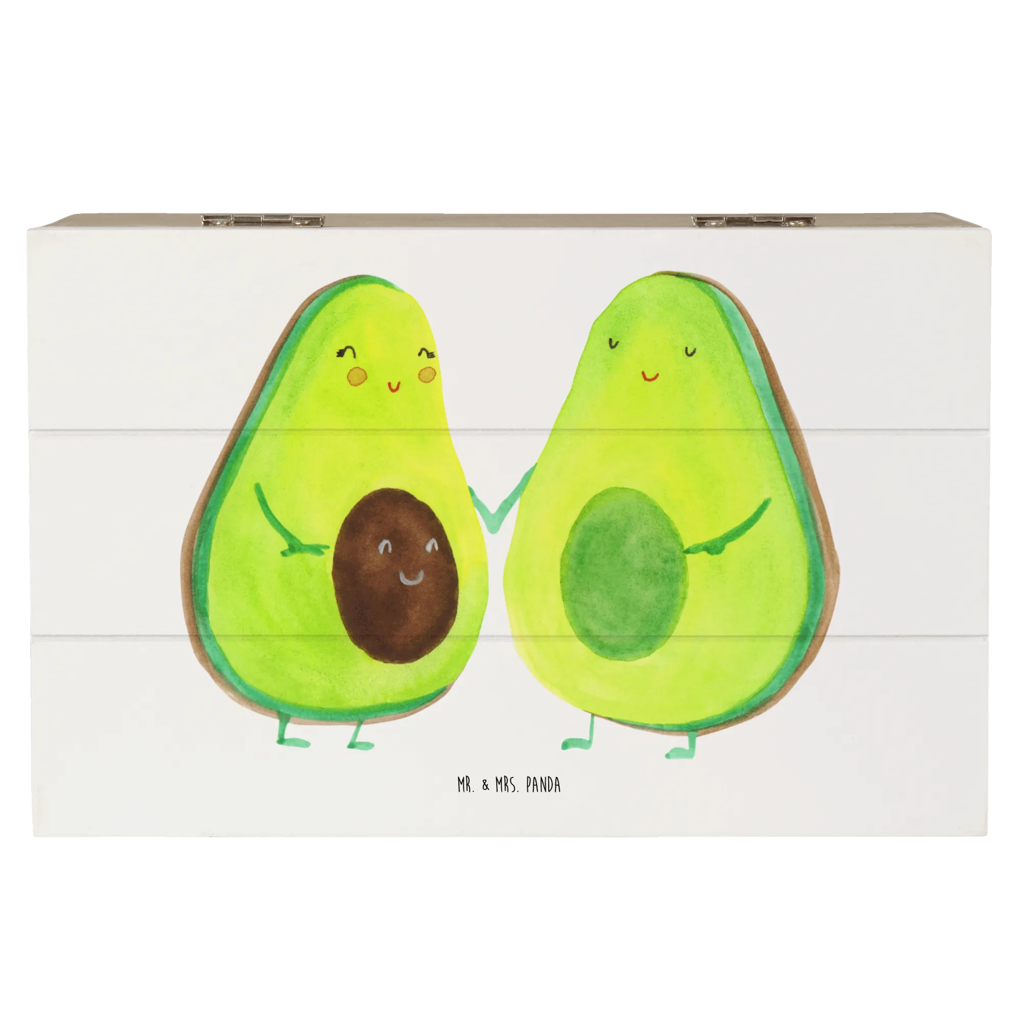 Die wunderschöne Holzkiste mit dem entzückenden Motiv des Avocado Pärchens von Mr. & Mrs. Panda ist das perfekte Geschenk für viele Gelegenheiten. Mit ihren Maßen von 190 mm x 120 mm x 100 mm findet diese stabile und robuste Kiste einen idealen Platz in jedem Zuhause und ist ein wahrer Hingucker.