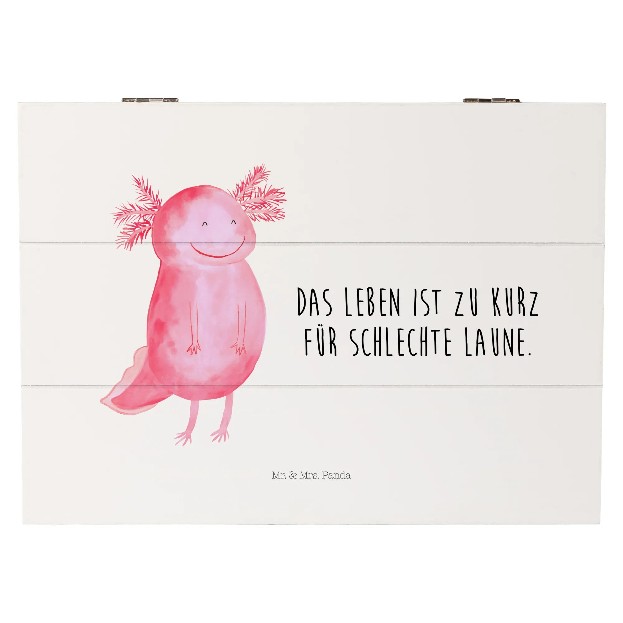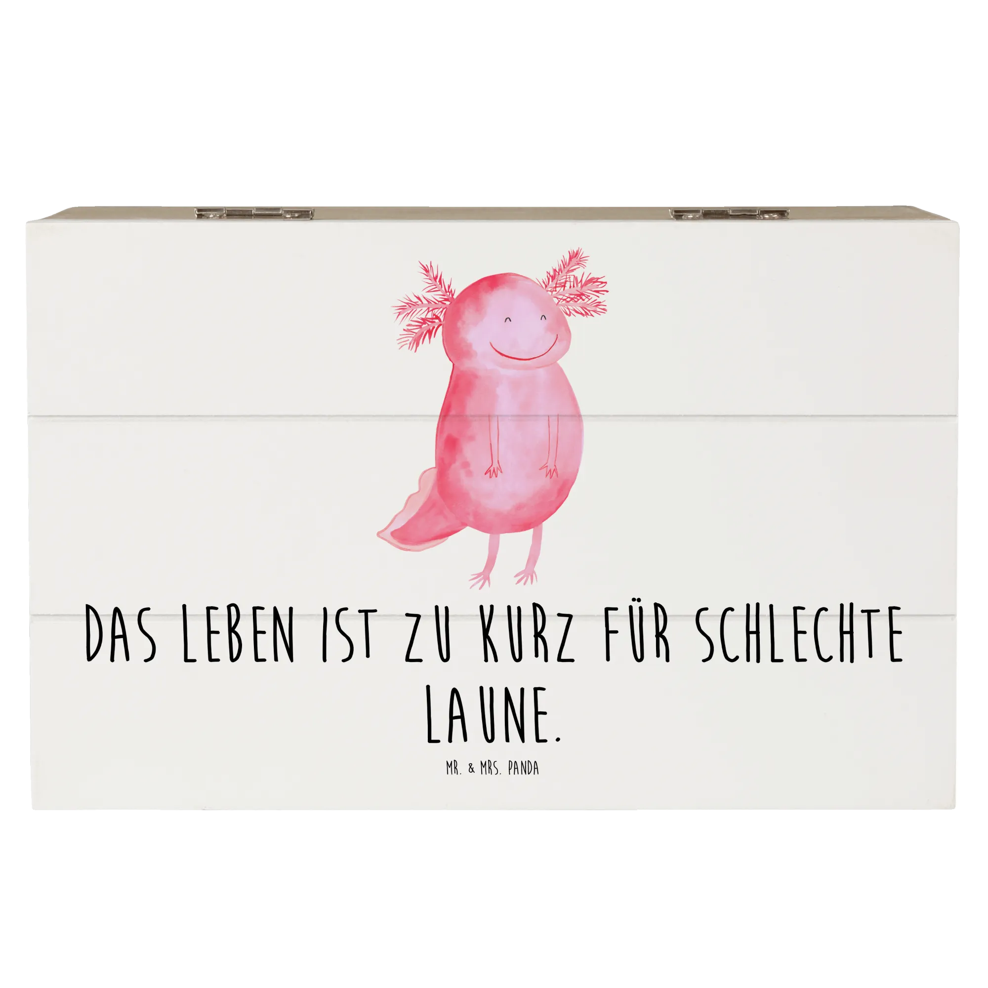 Wenn du nach einem besonderen Geschenk suchst, ist die Holzkiste "Axolotl glücklich" von Mr. & Mrs. Panda die perfekte Wahl für alle, die die Schönheit des Lebens und die Freude an guten Erinnerungen schätzen.