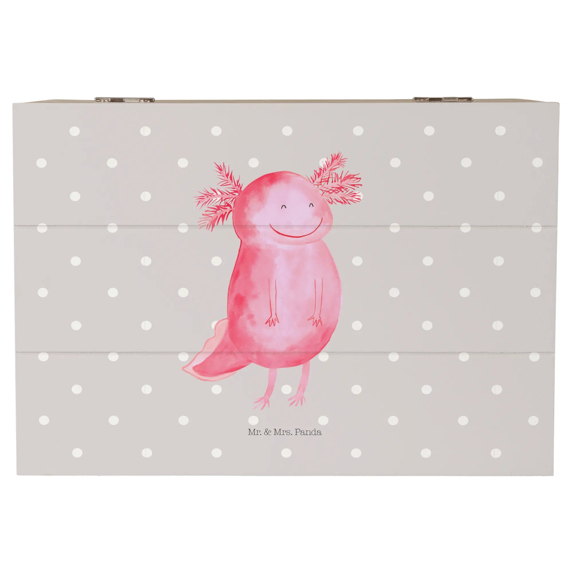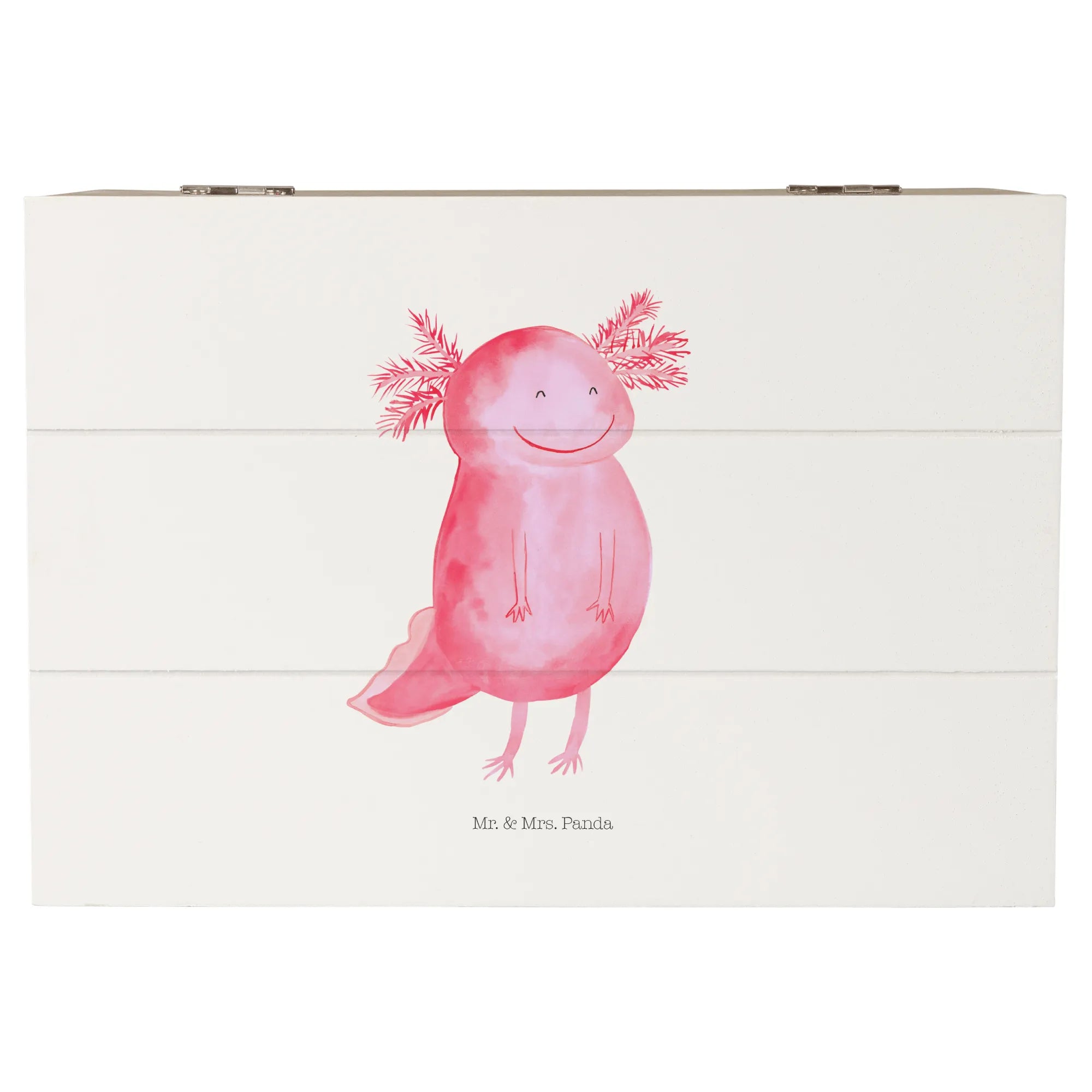Die Holzkiste "Axolotl glücklich" von Mr. & Mrs. Panda ist das perfekte Geschenk für alle, die gute Laune lieben!