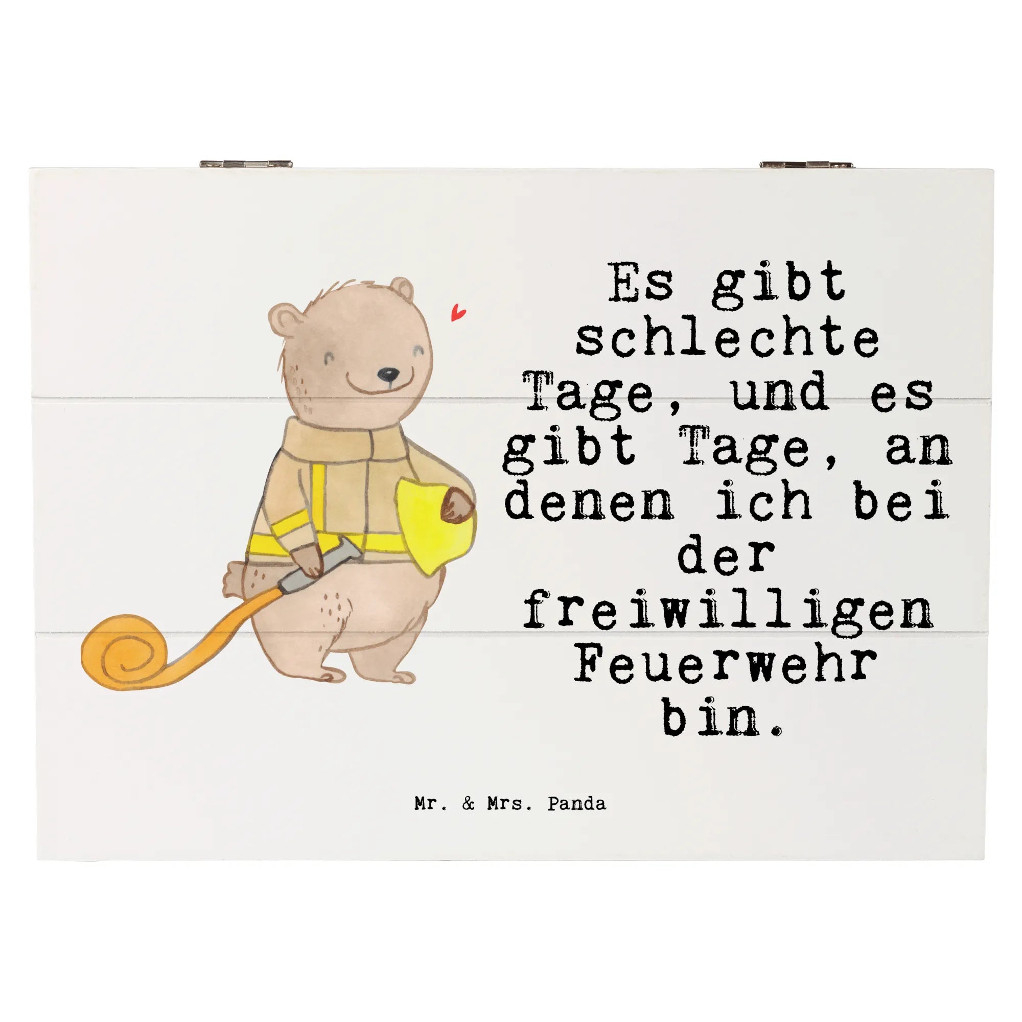 Eine wunderschöne Holzkiste von Mr. & Mrs. Panda – liebevoll bedruckt mit dem Motiv „Bär Freiwillige Feuerwehr Tage" und dem herzlichen Spruch: Es gibt schlechte Tage, und es gibt Tage, an denen ich bei der freiwilligen Feuerwehr bin.