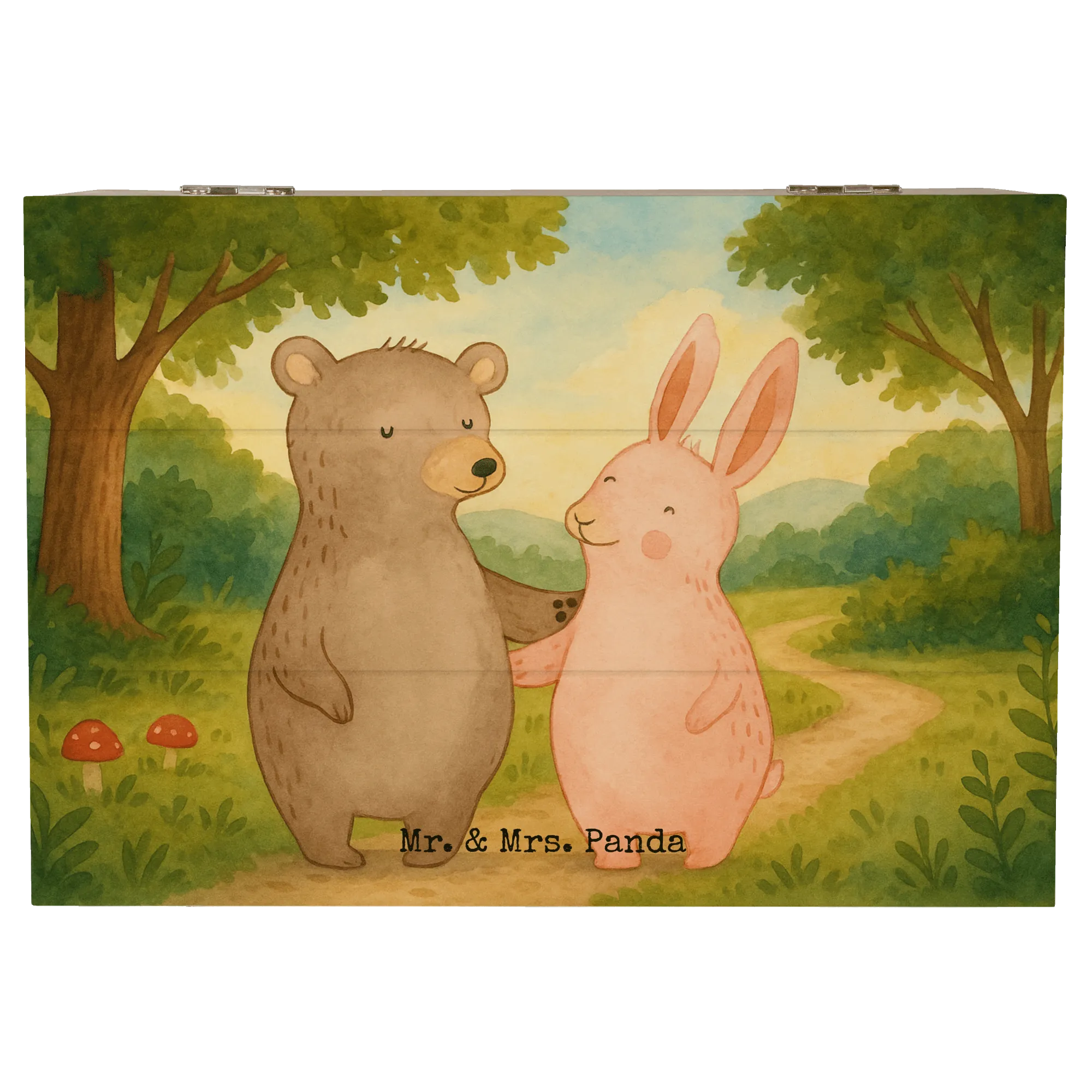 Holzkiste Bär und Hase Umarmen Design - 22 x 15 cm - mit Spruch