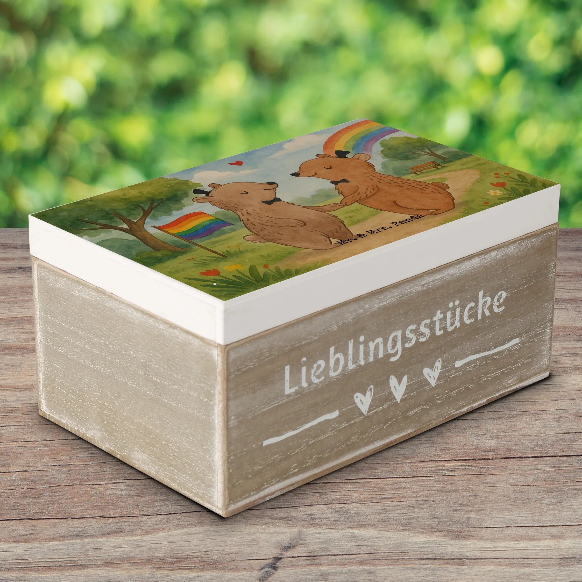 Holzkiste Bären Gay Pride Design - 22 x 15 cm - mit Spruch