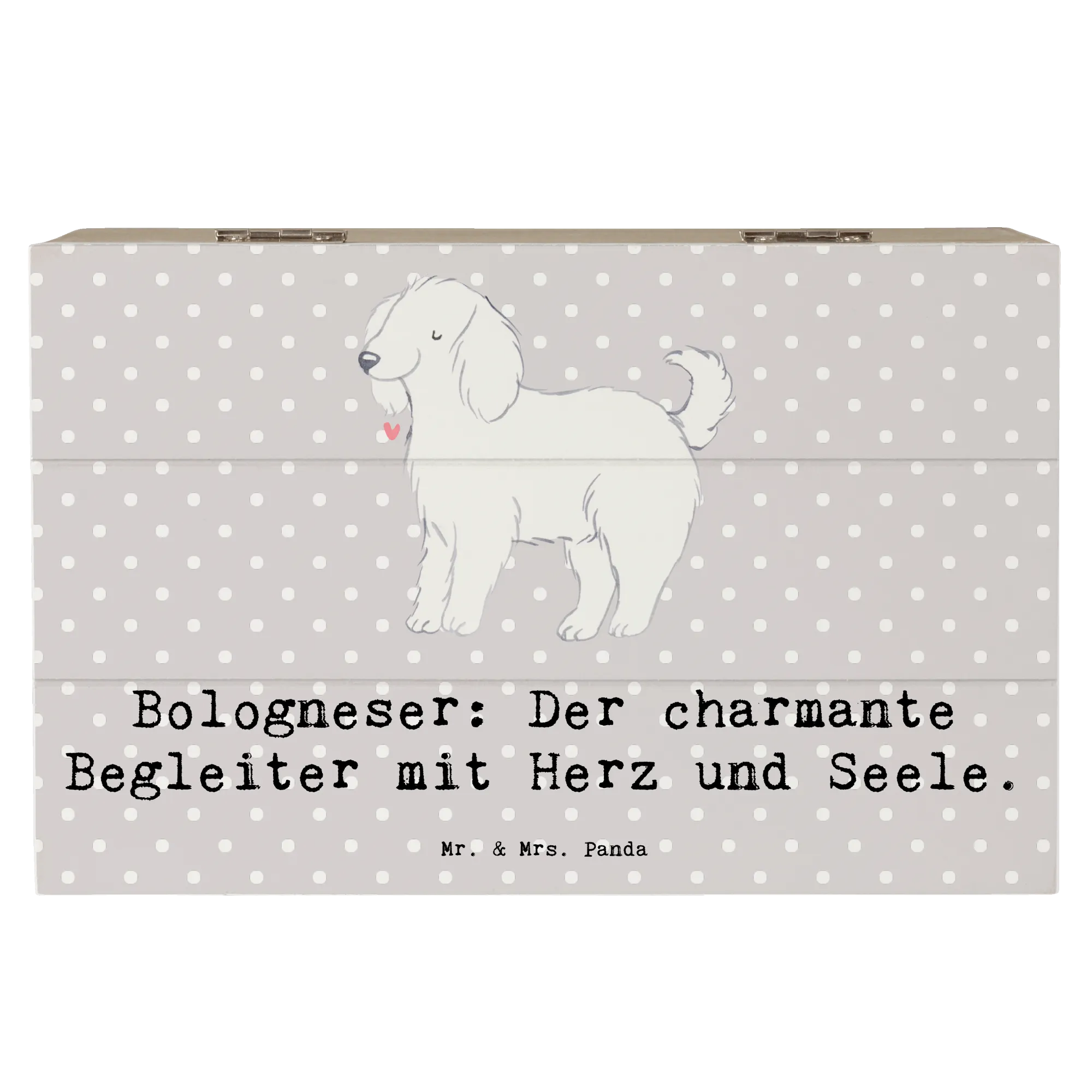 Das charmante Motiv des Bolognesers, der mit dem Slogan 'Bologneser: Der charmante Begleiter mit Herz und Seele.' verziert ist, bringt nicht nur einen Schuss Spaß und Frohsinn in dein Zuhause, sondern macht die Kiste auch zu einem perfekten Geschenk.