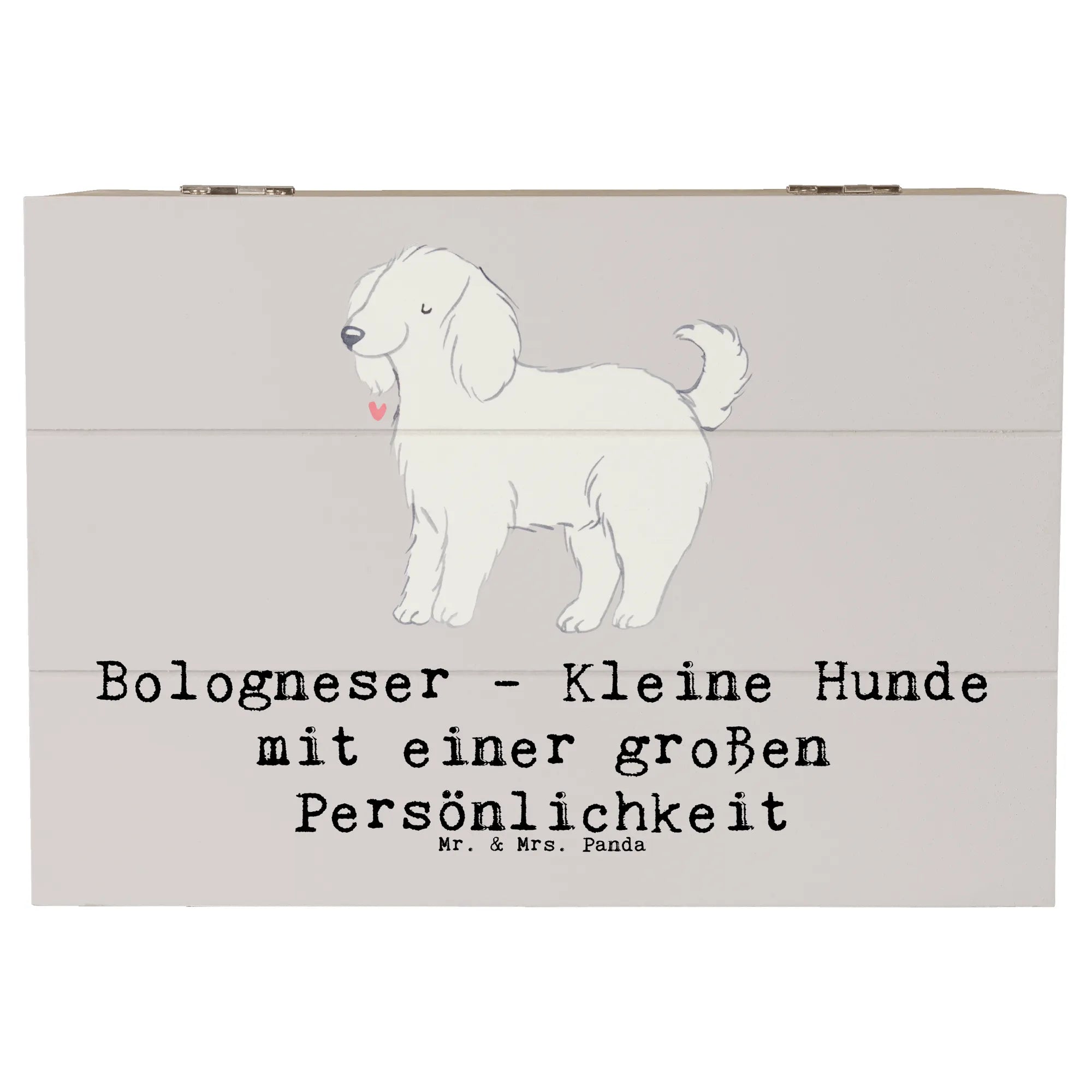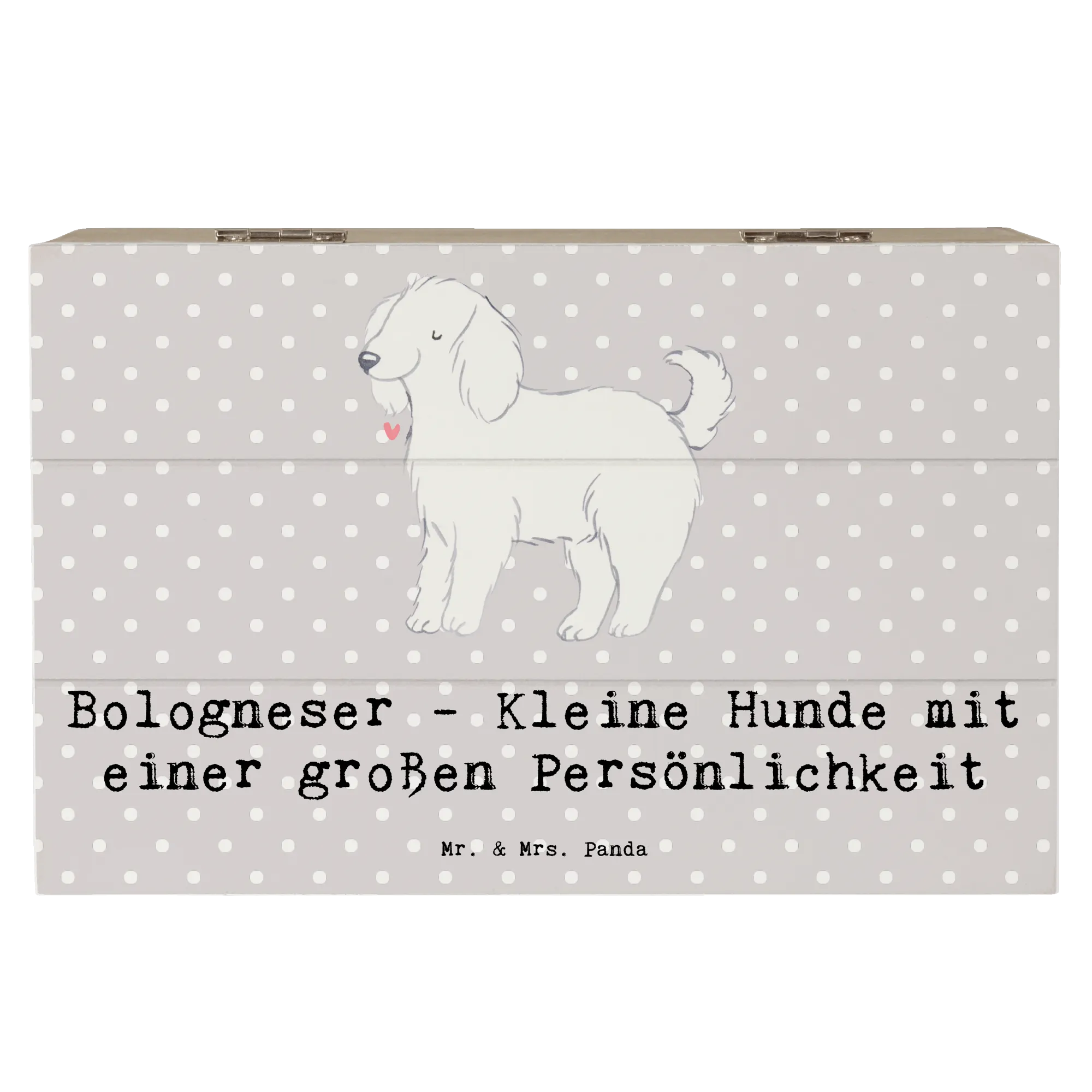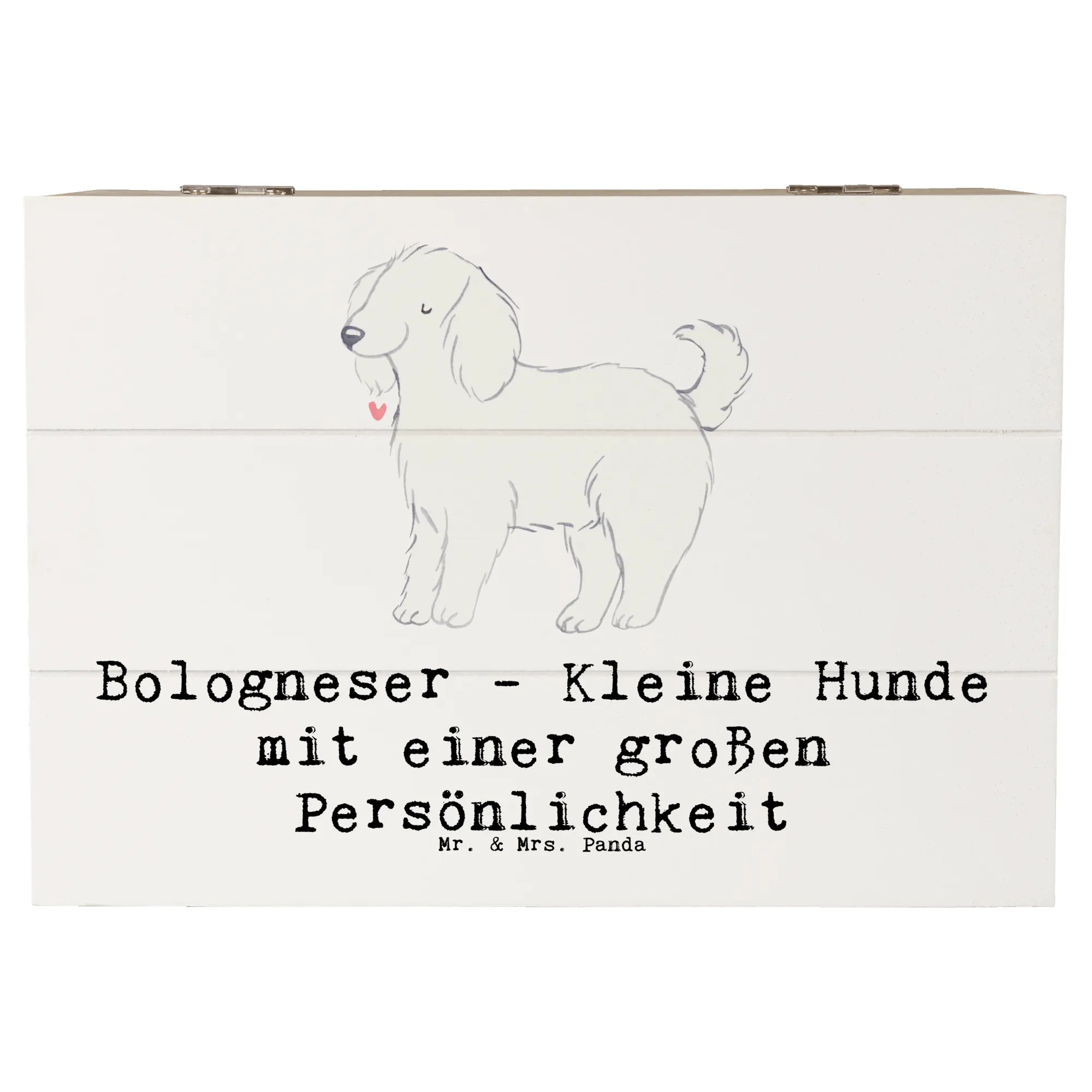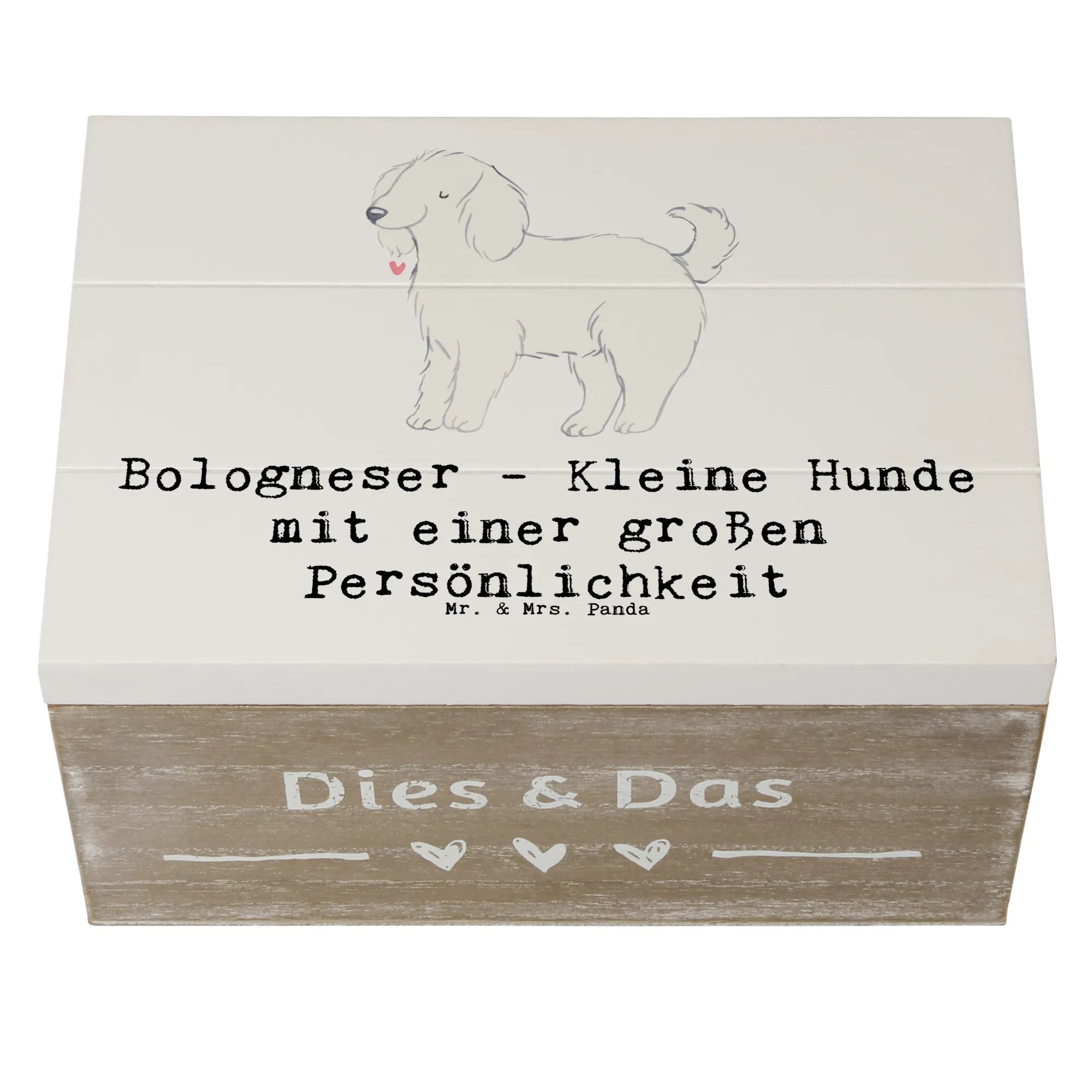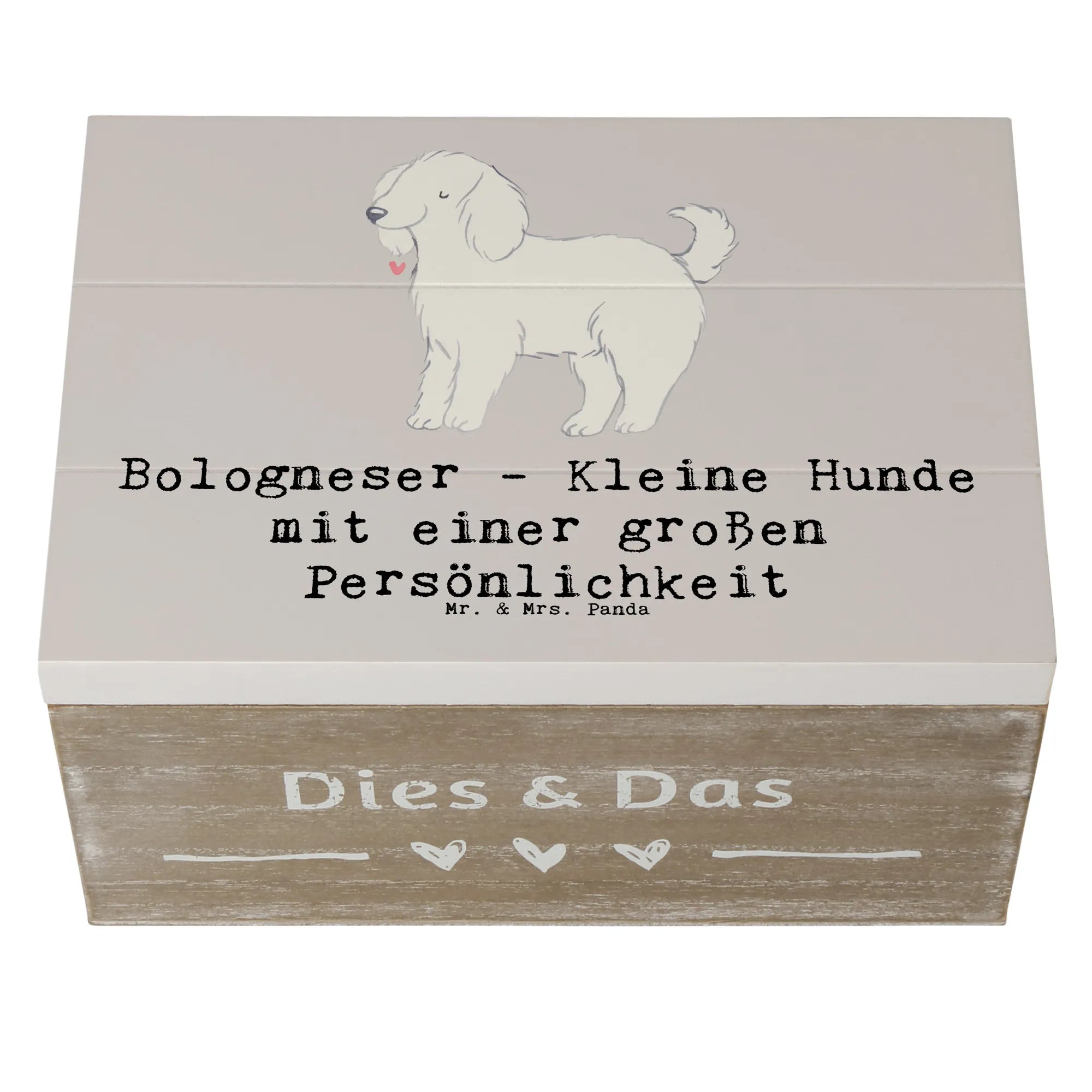 Die wunderschöne Holzkiste von Mr. & Mrs. Panda ist das perfekte Geschenk für alle Hundefans, insbesondere für die Liebhaber der Hunderasse Bologneser. Mit dem eingängigen Slogan "Bologneser - Kleine Hunde mit einer großen Persönlichkeit" bereichert diese Erinnerungsbox jeden Raum in deinem Zuhause.