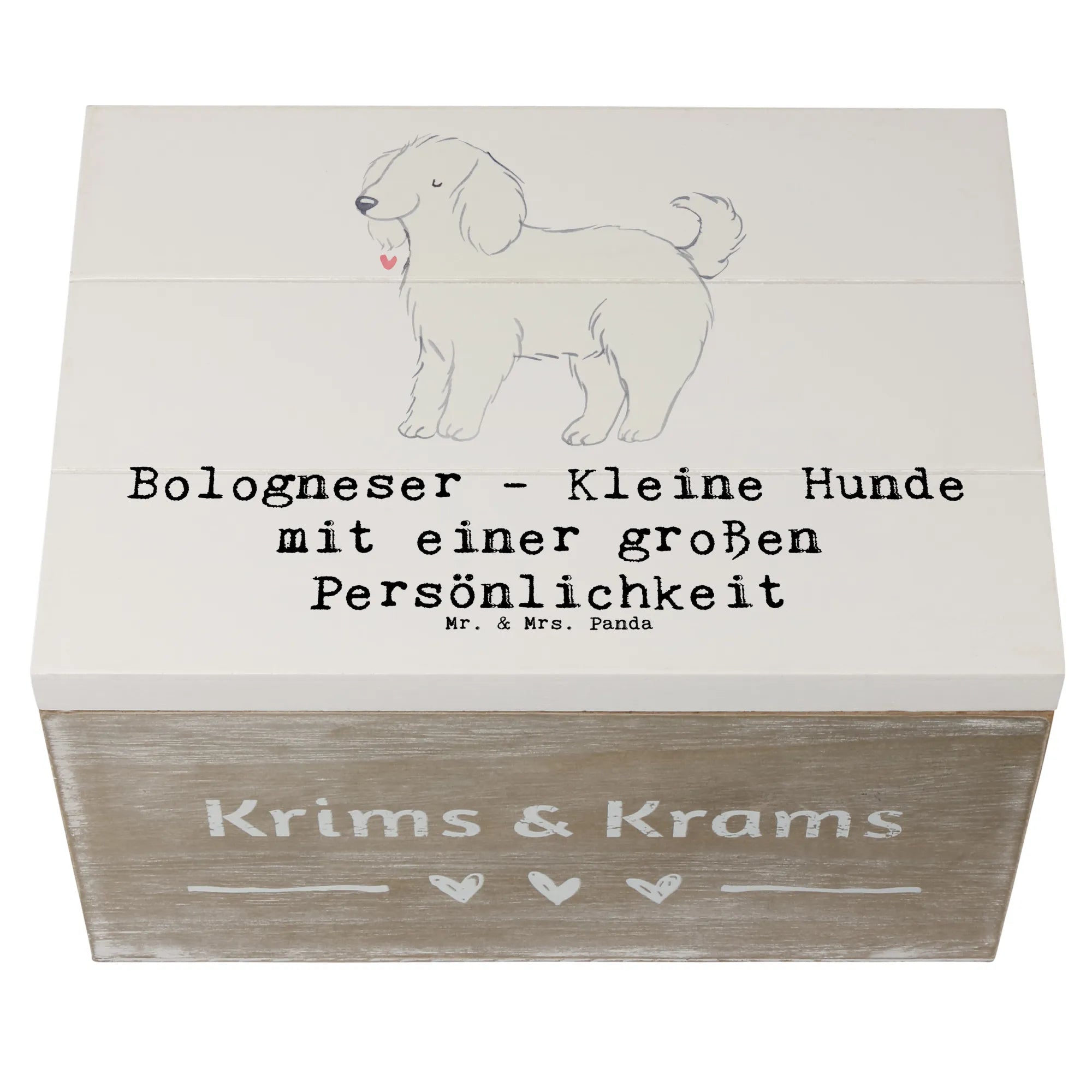 Die wunderschöne Holzkiste von Mr. & Mrs. Panda ist das perfekte Geschenk für alle Hundefans! 🐶 Mit dem bezaubernden Motiv 'Bologneser - Kleine Hunde mit einer großen Persönlichkeit' und der liebevollen Gestaltung wird diese Kiste zum echten Hingucker.