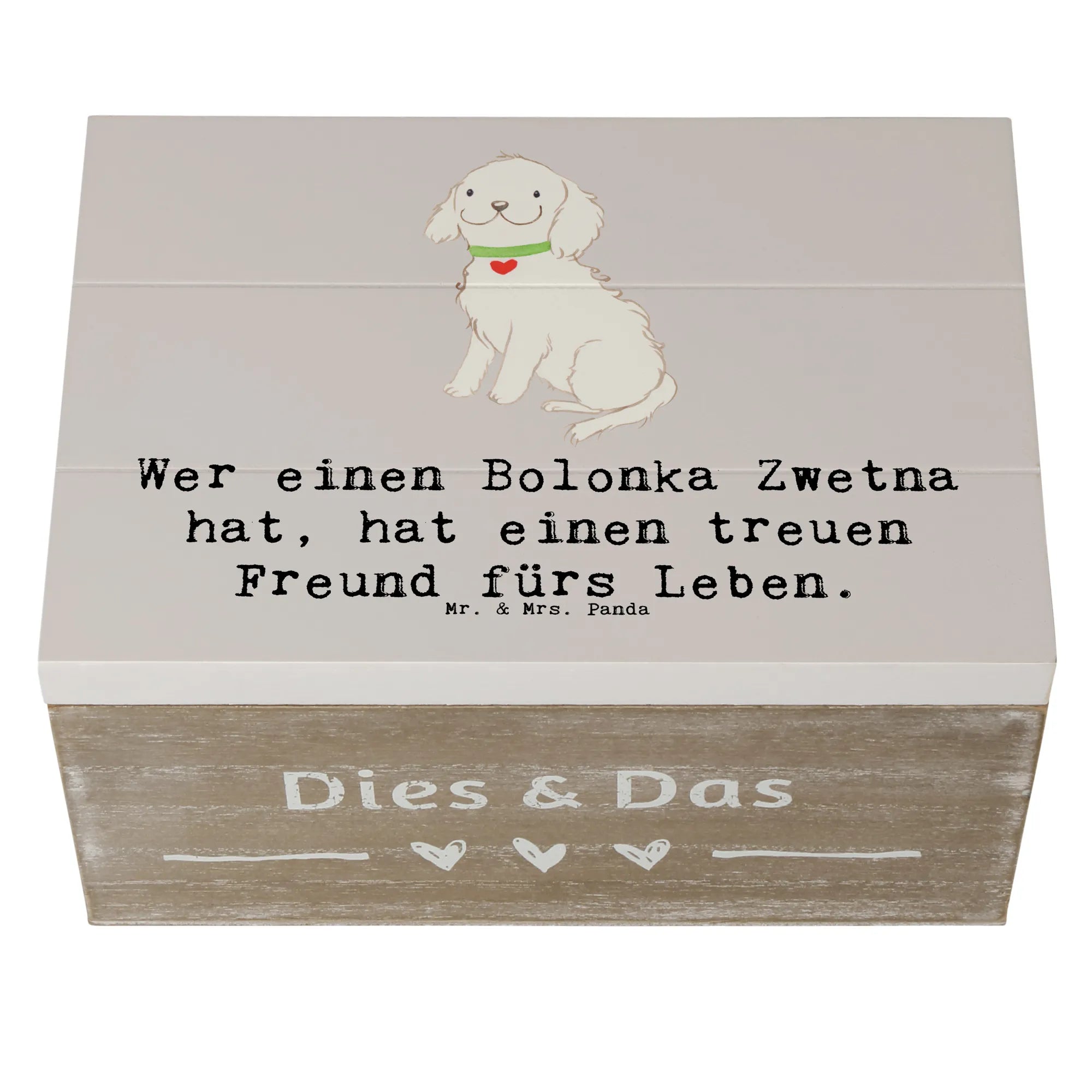 Die wunderschöne Holzkiste mit dem liebevollen Motiv des Bolonka Zwetna von Mr. & Mrs. Panda ist der perfekte Begleiter für alle Hundefreunde!